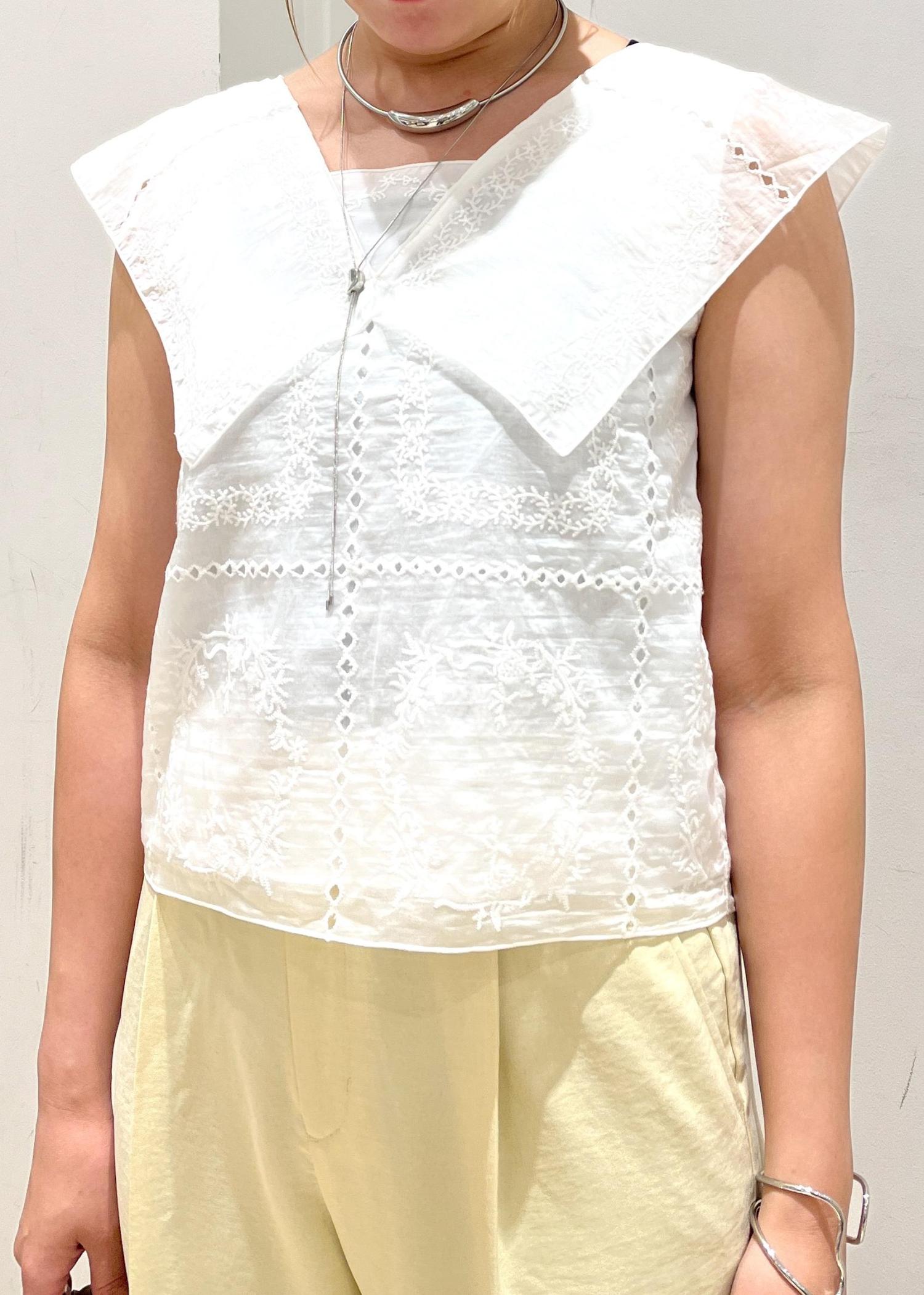 白が映えるビックカラーブラウスは可愛さもありつつ大人でも着やすいデザインで◎!