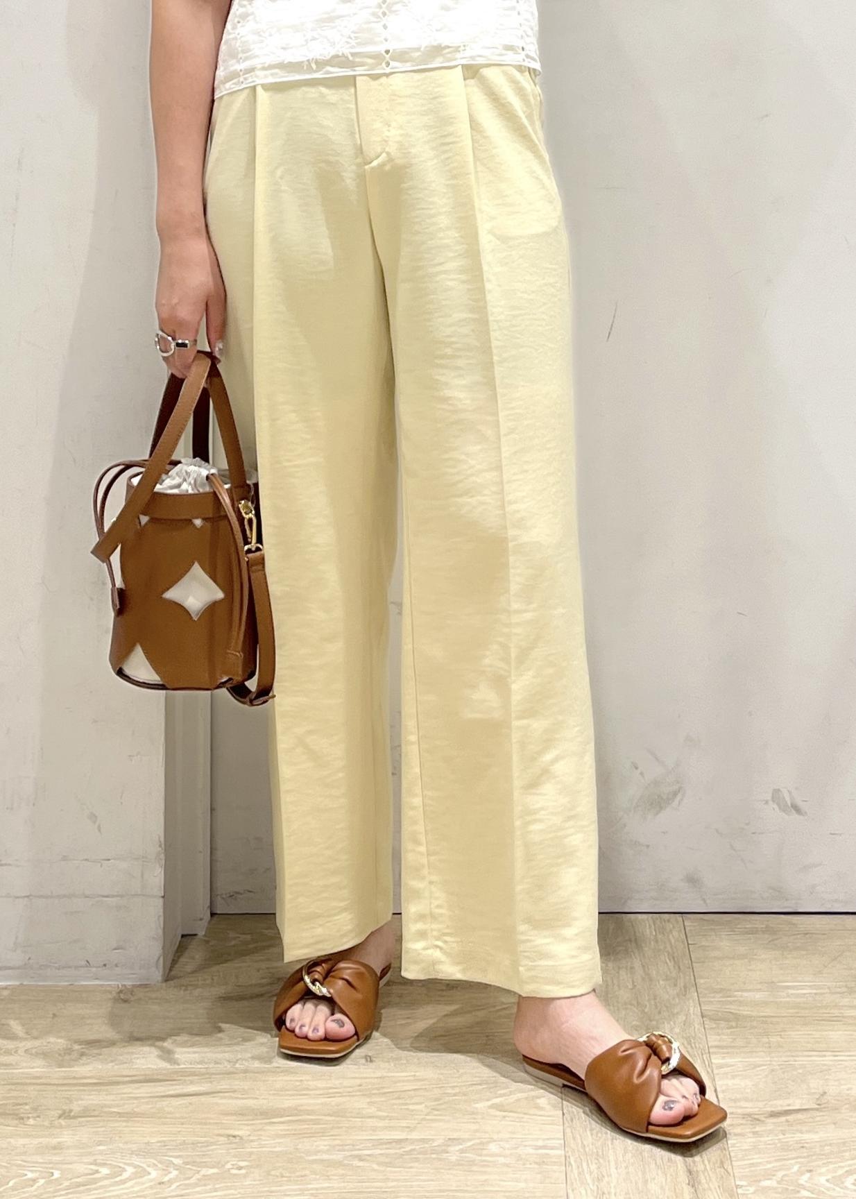 さらっとした着心地でシワにもなりにくくイージーケアの優れもの♪171cm/Lサイズ着用で足首がすこし見える丈感で、太もも周りなどはゆったり着れます。