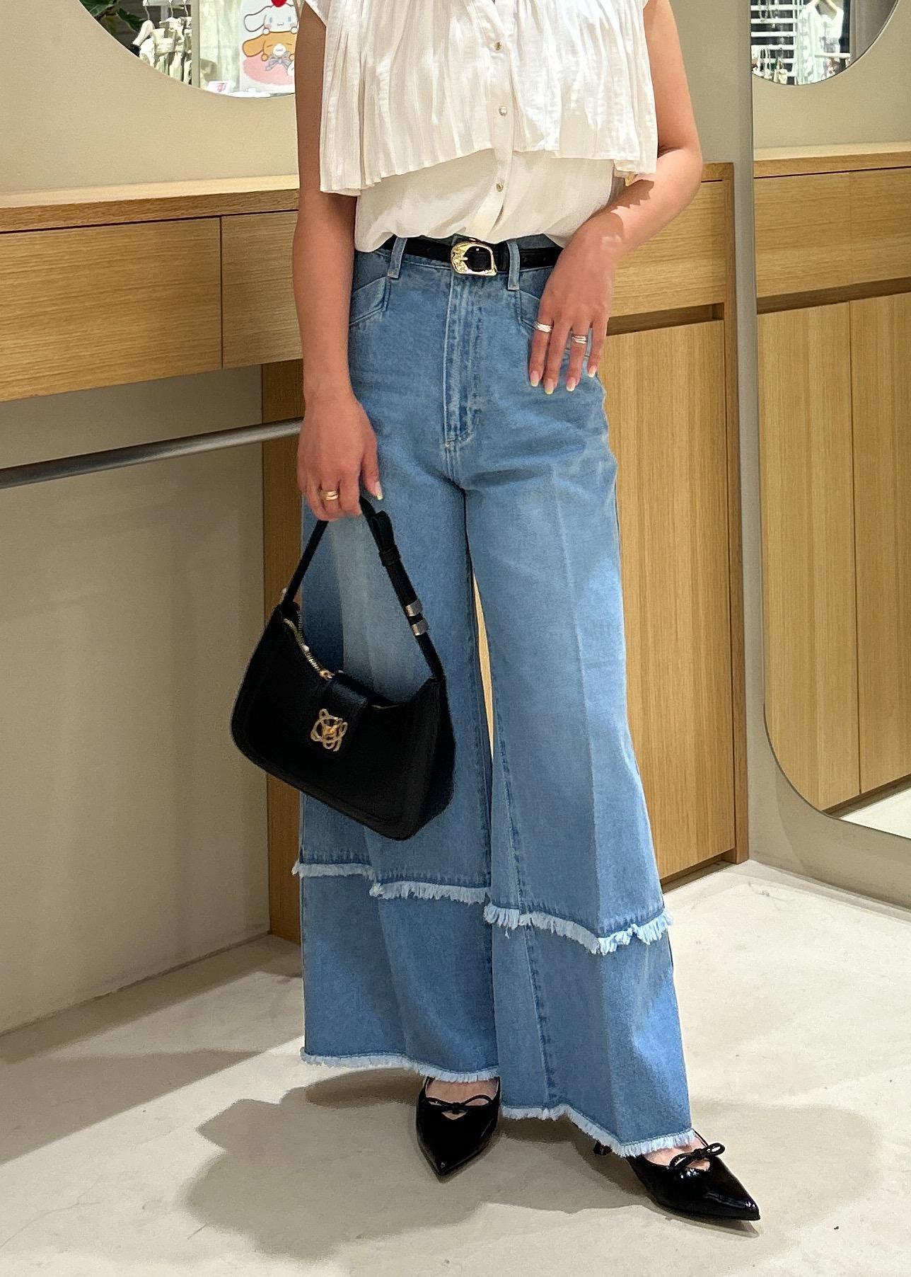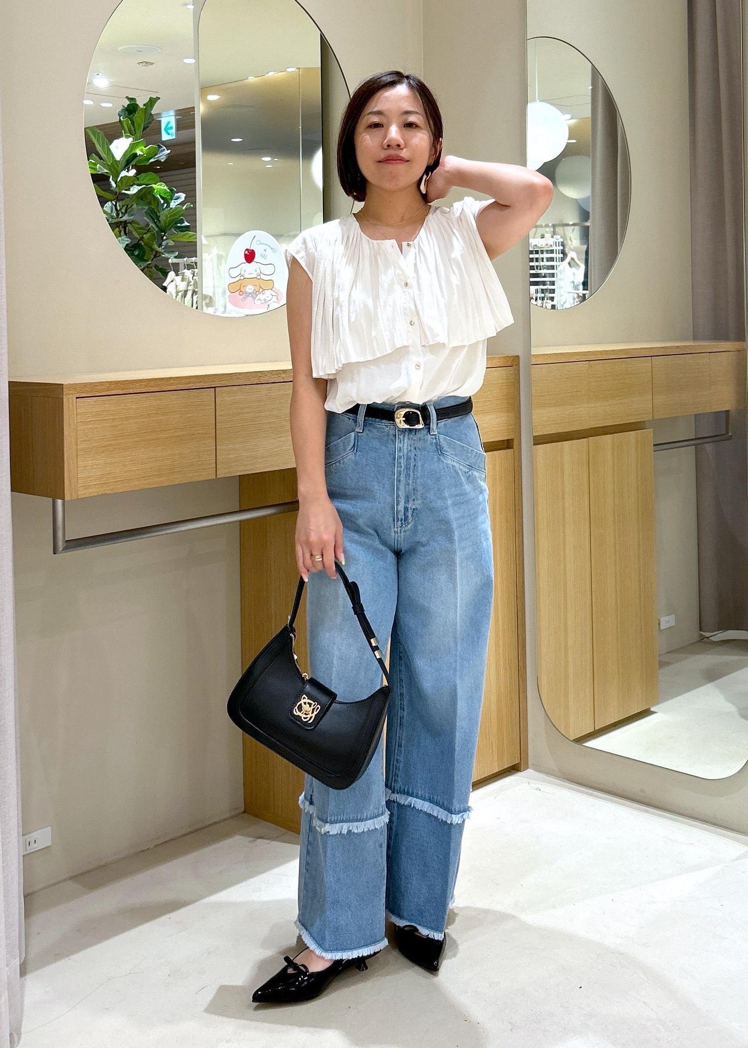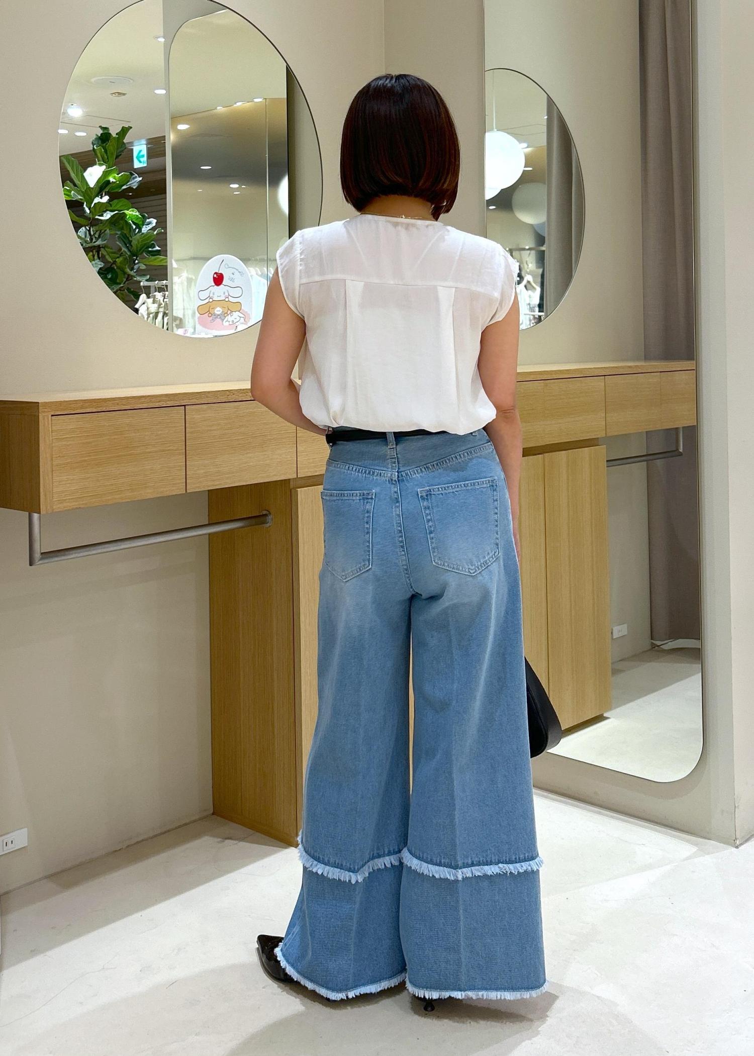 デニムはフレアデザインを合わせて脚長効果と全体がスッキリ綺麗見えするようにしています。