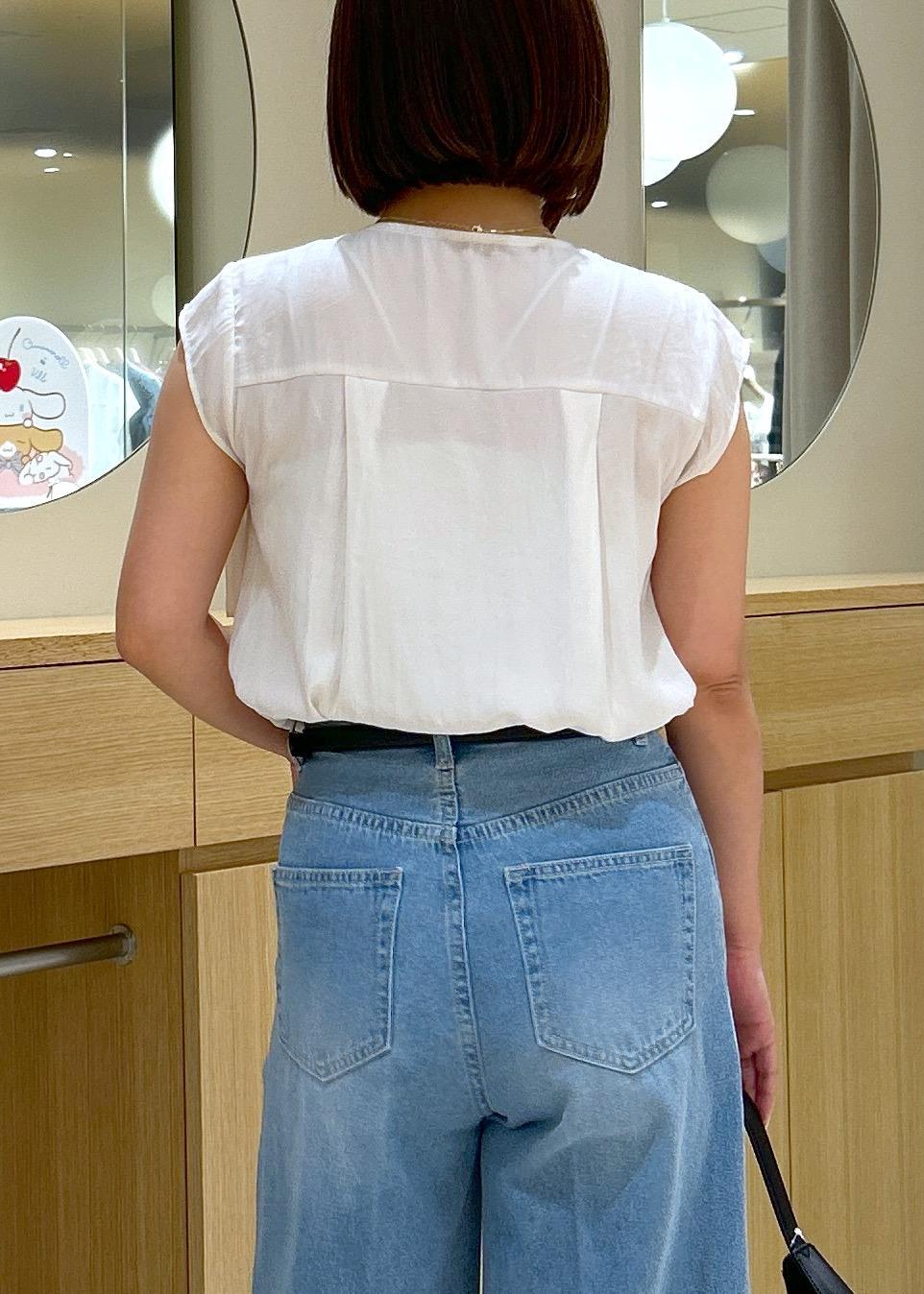 袖丈はやや短めですが、肩はしっかり隠れる長さです。 -
