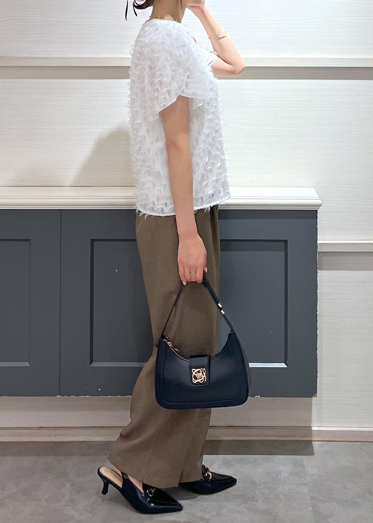 VIS【新色追加】【180℃美人見え】ハンドルリボンワンショルダーバッグブラック / F¥5,929レビューマチがあるのでお出かけのお荷物はしっかりと入ります♪