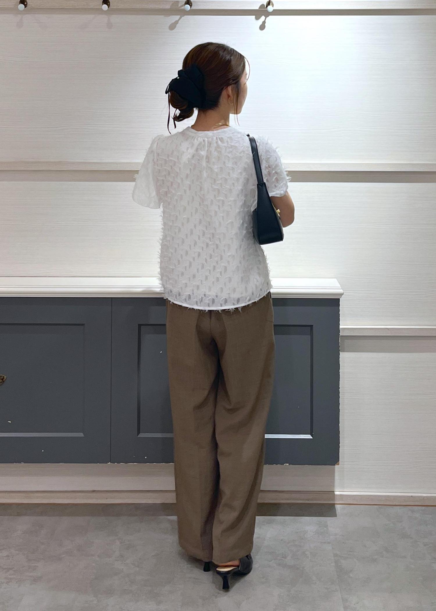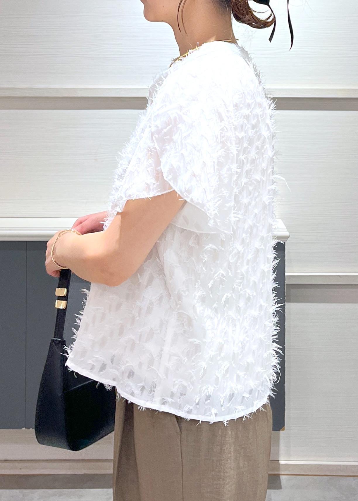VISチューリップスリーブジャガードスキッパーブラウスホワイト / F¥2,963レビュー156cmで腰がしっかり隠れる丈感です!
