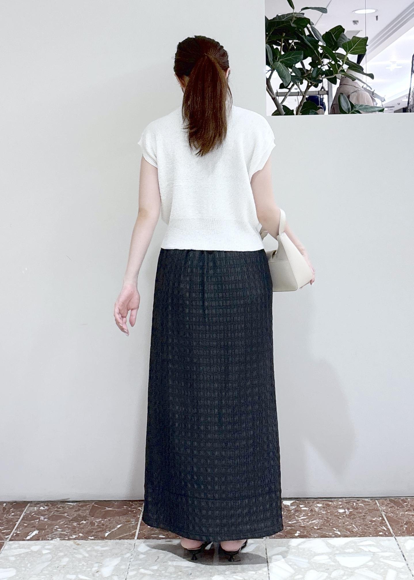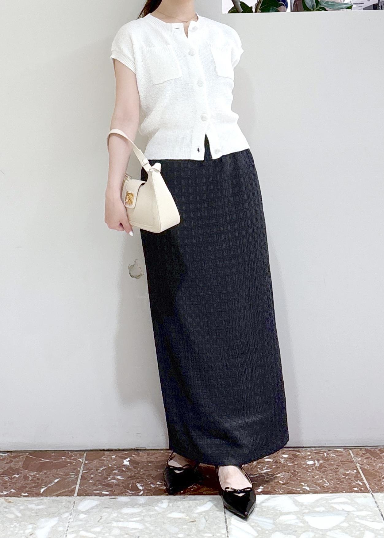 アウトレットVIS【新色追加】【接触冷感】膨れジャガードナロースカートチャコール / F¥3,293レビュー158cmでちょうど足首位の丈感。ウエストはゴムが入っているので動きやすく締め付け感ないです◎