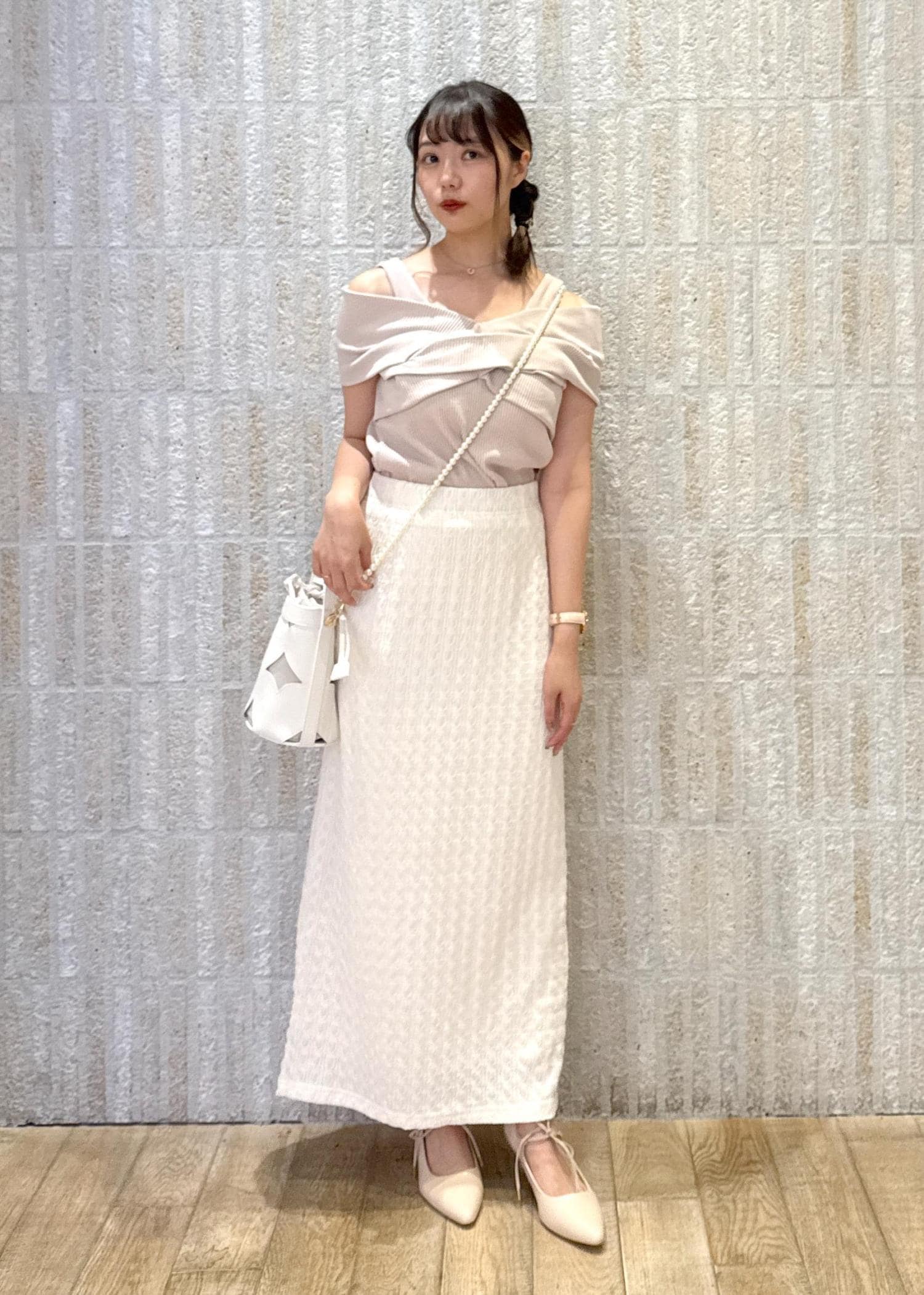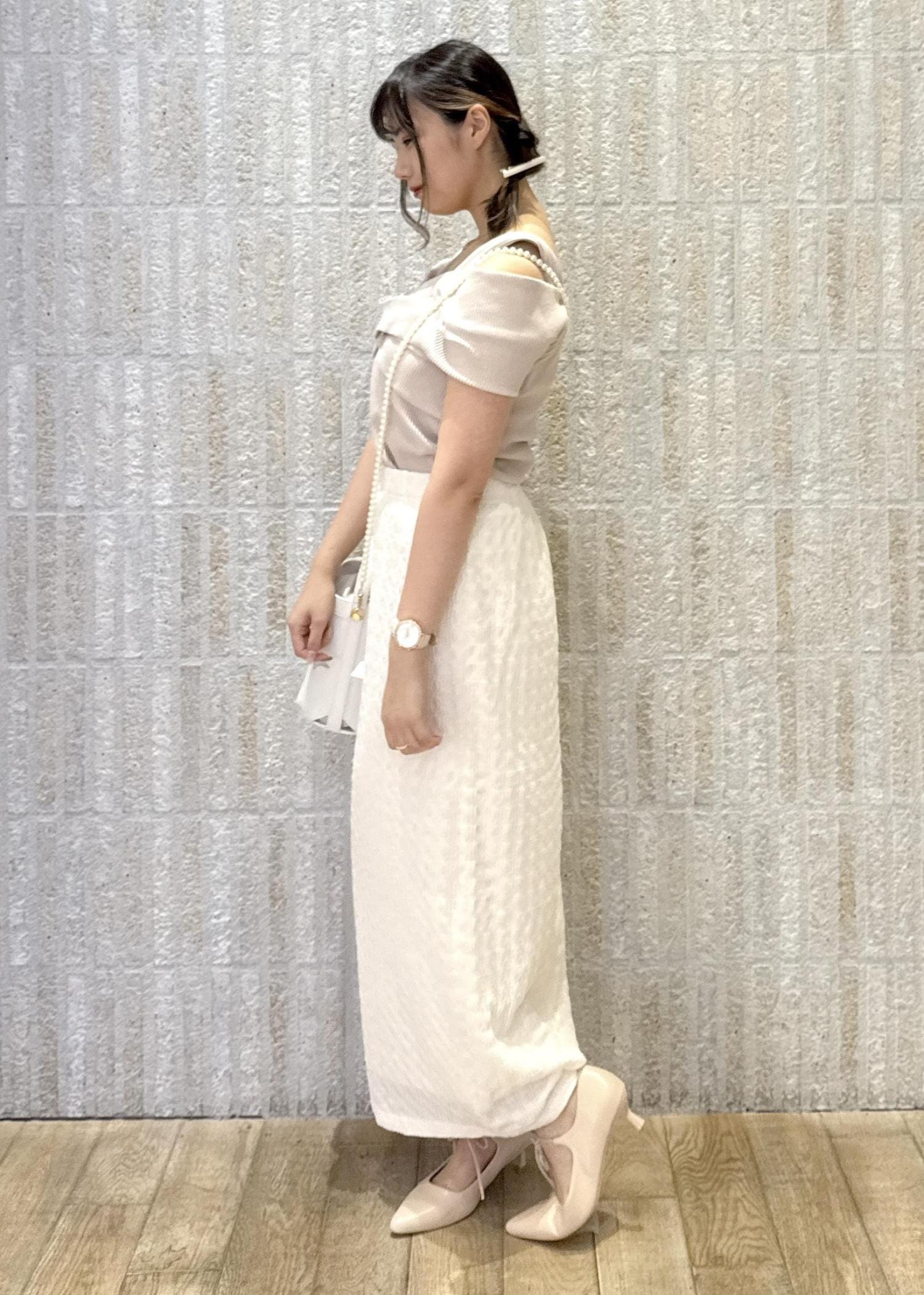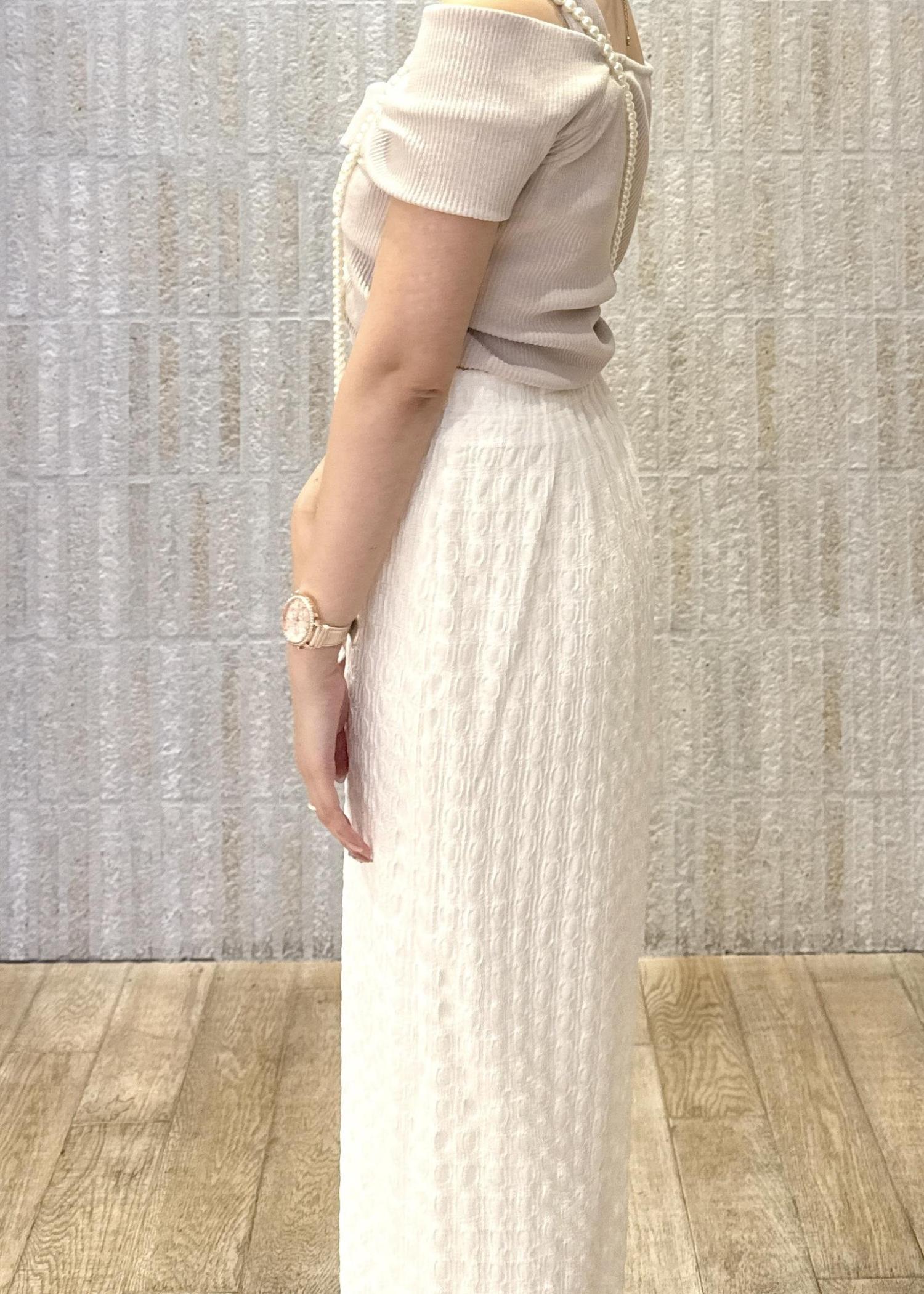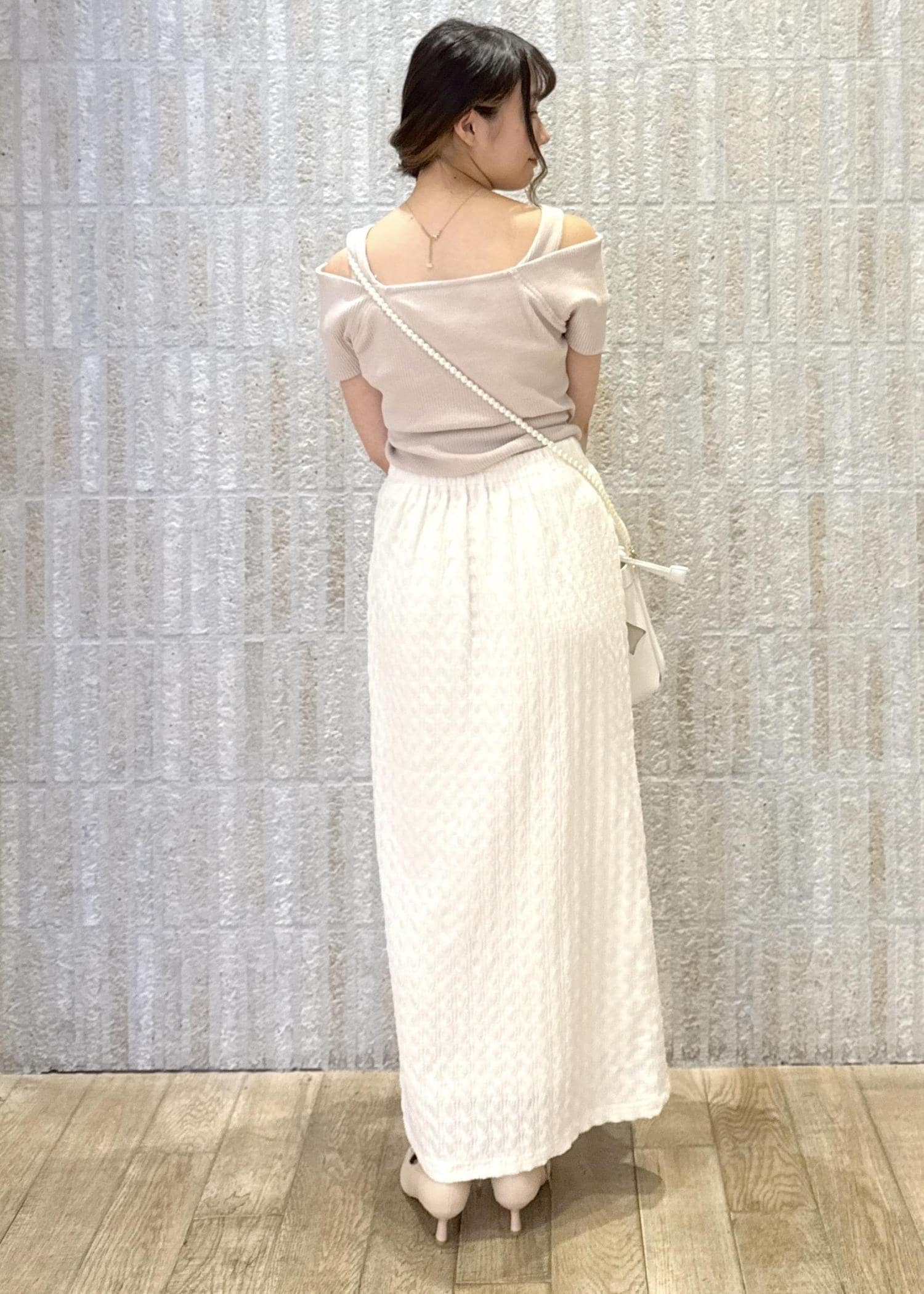 アウトレットVIS【新色追加】【接触冷感】膨れジャガードナロースカートオフホワイト / F¥3,293レビュー接触冷感がついているさらっとしたタイトスカート。