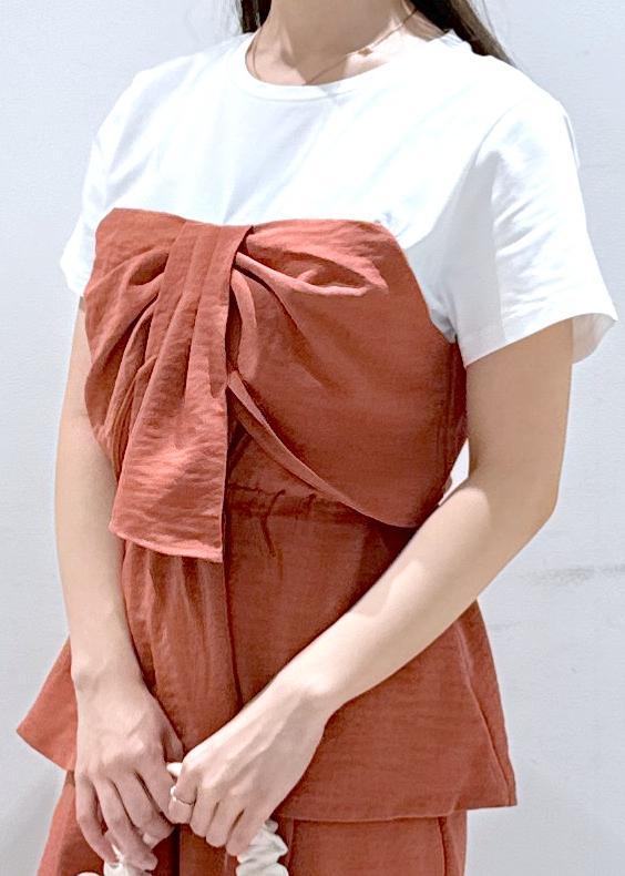 VIS【新色追加】【美easy】ねじりリボンTシャツドッキングプルオーバー【接触冷感/洗える】オレンジ系 / F¥5,489レビュー普段のTシャツを着る感覚で簡単におしゃれ見えします♪