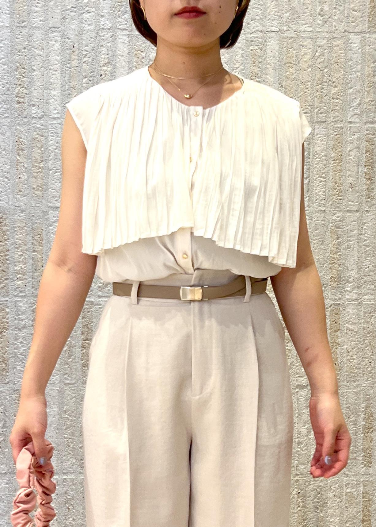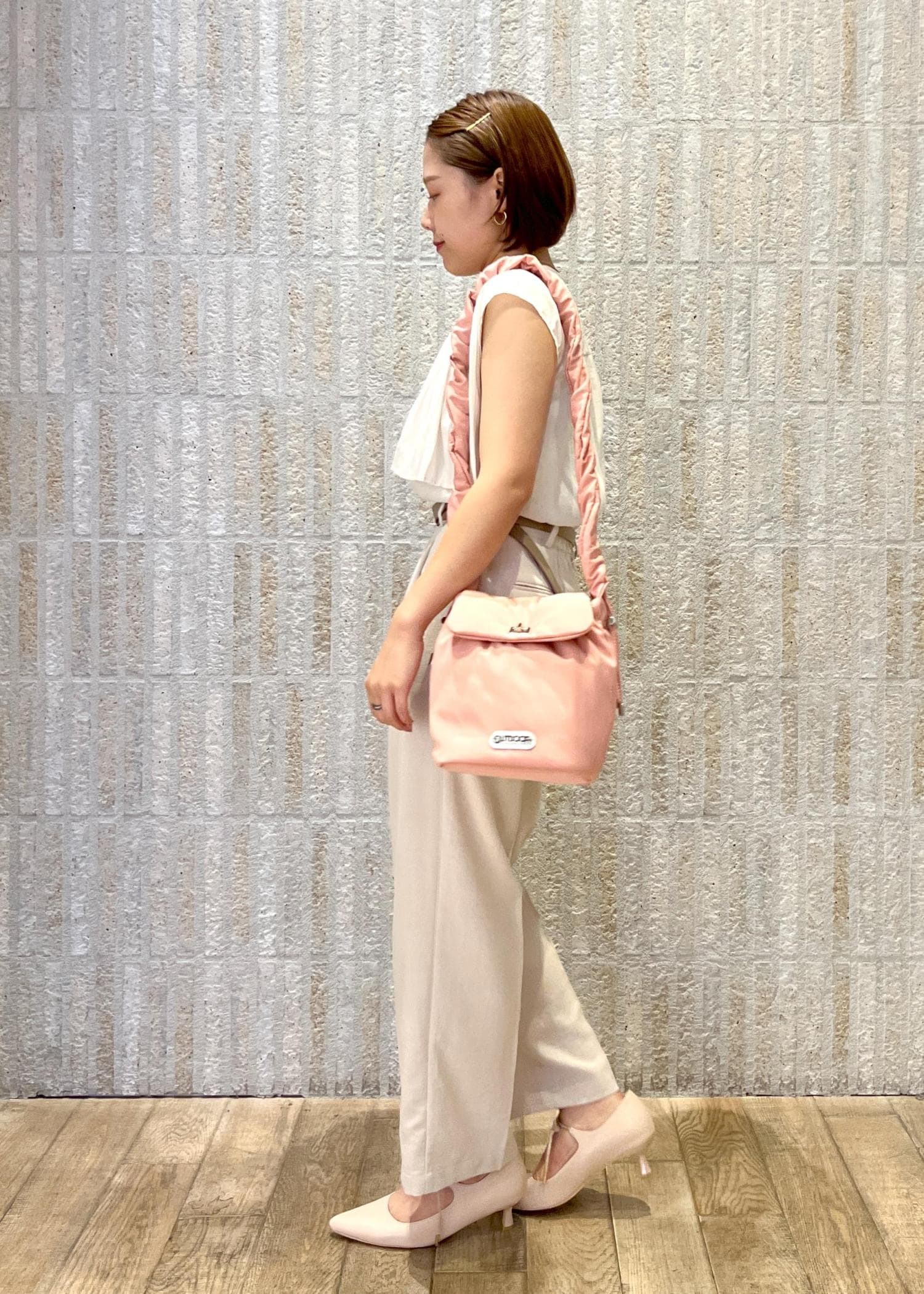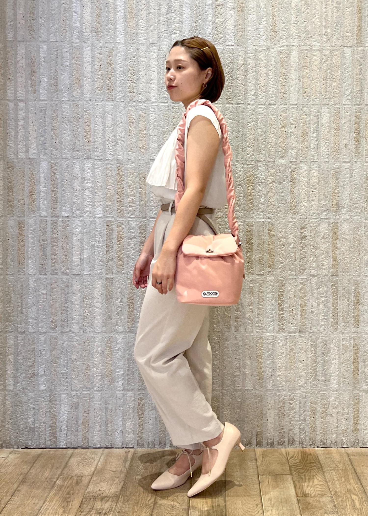 明るいお色味ですので、トップスはシンプルなものでも、コーデ全体を華やかにしてくれます。