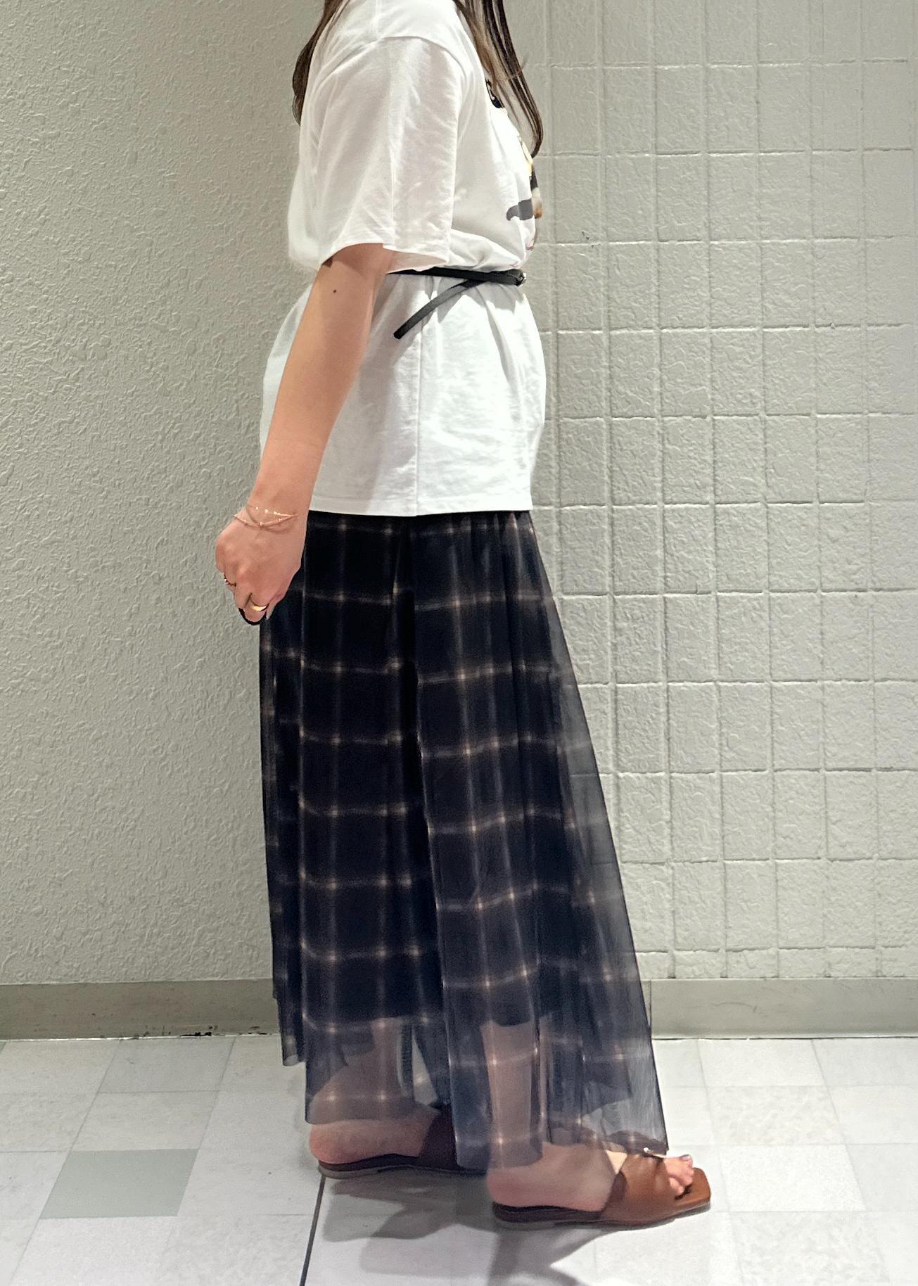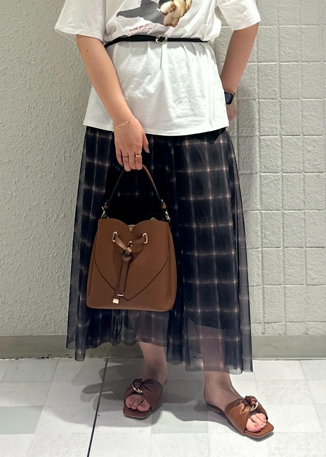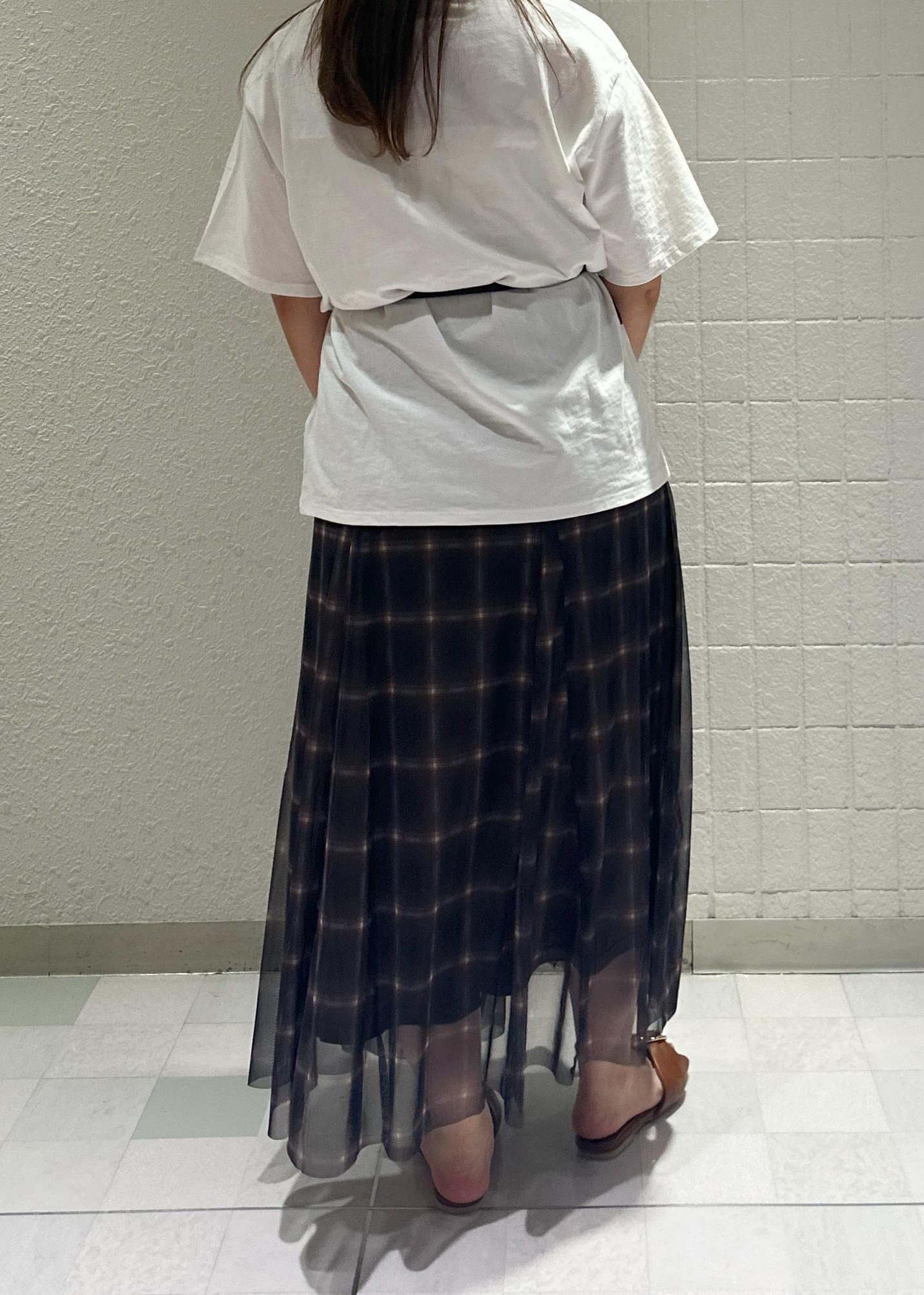 VIS【洗える】チュールプリントチェックスカートダークブラウン系 / F¥4,612レビューウエストがまだゆったり着用いただけます。柔らかいチュール生地で肌あたりもいいです。