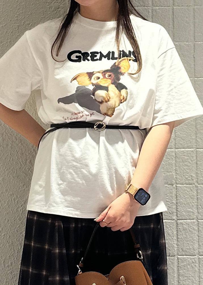 グレムリンコラボTシャツにチェックスカートで大人でも着れるカジュアルコーデにしてみました♪