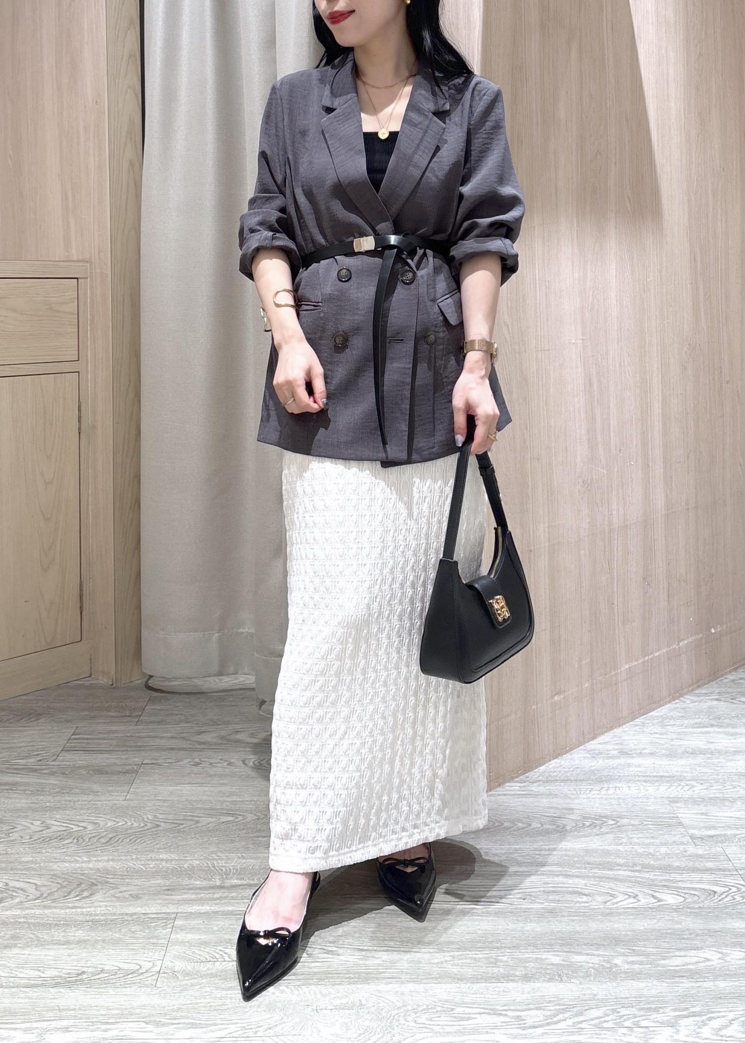 タイトシルエットですがピッタリしにくいので、骨格ウェーブでも綺麗に着られました!