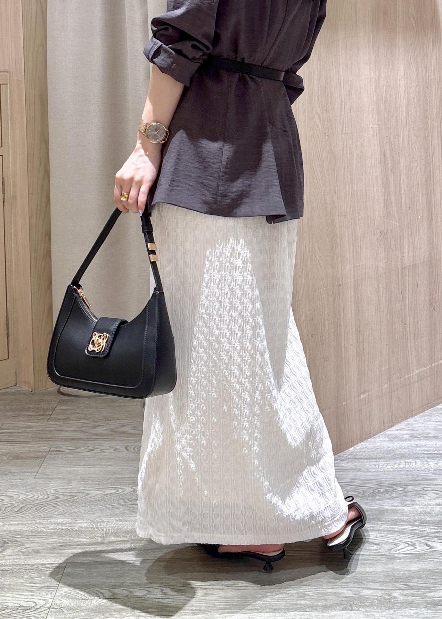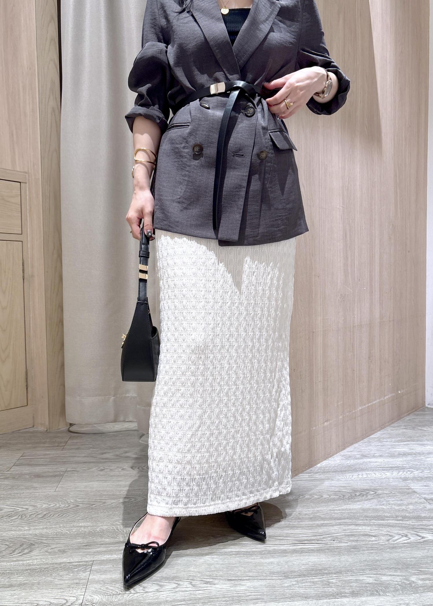 アウトレットVIS【新色追加】【接触冷感】膨れジャガードナロースカートオフホワイト / F¥3,293レビュー伸縮性がありウエストがゴムなので楽にストレスなく履けました☺︎