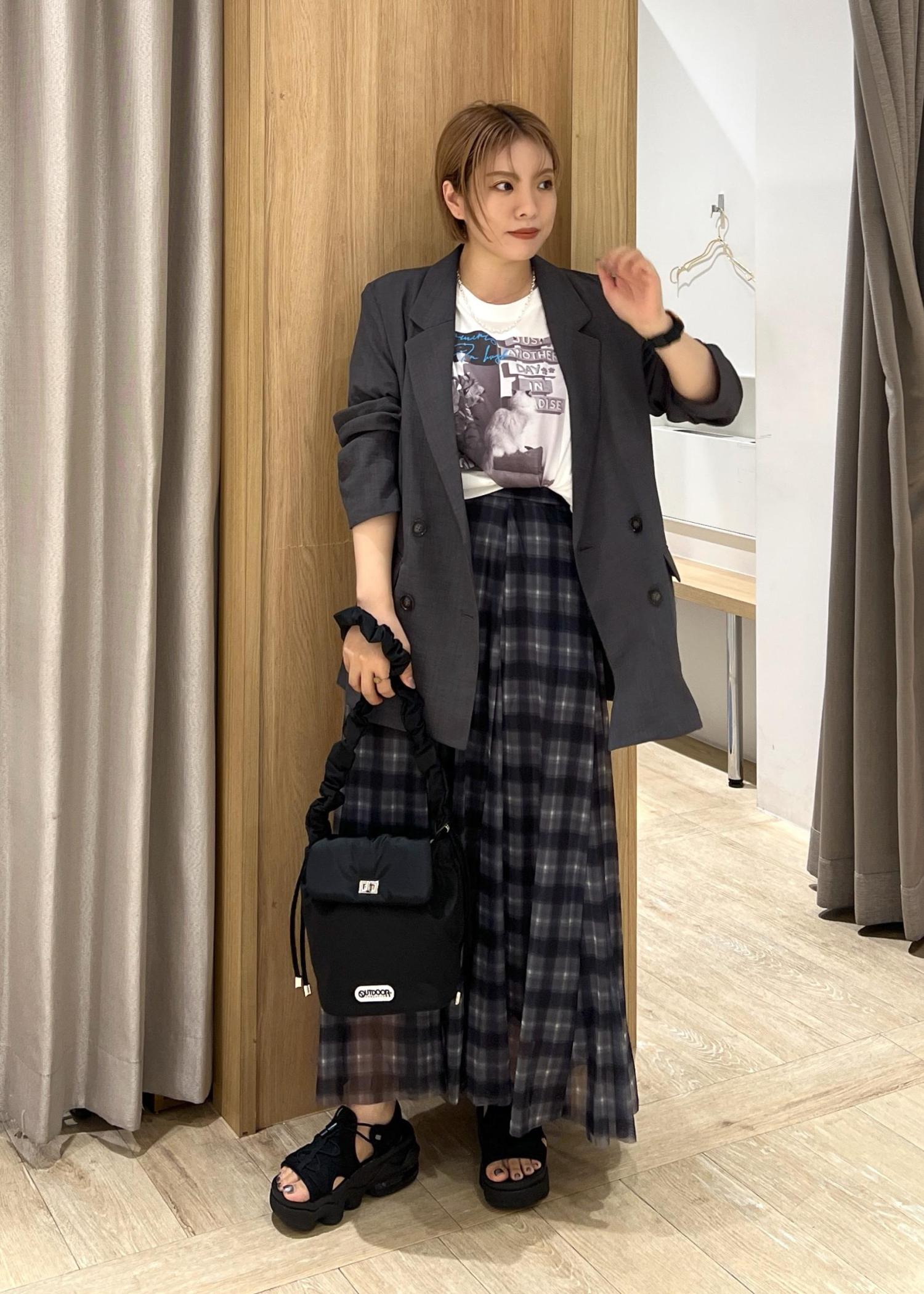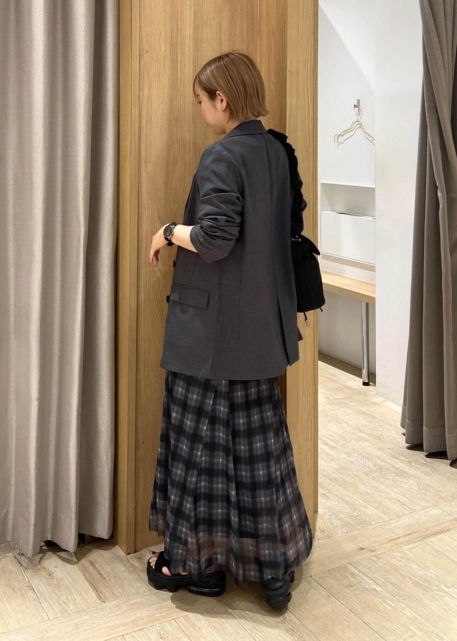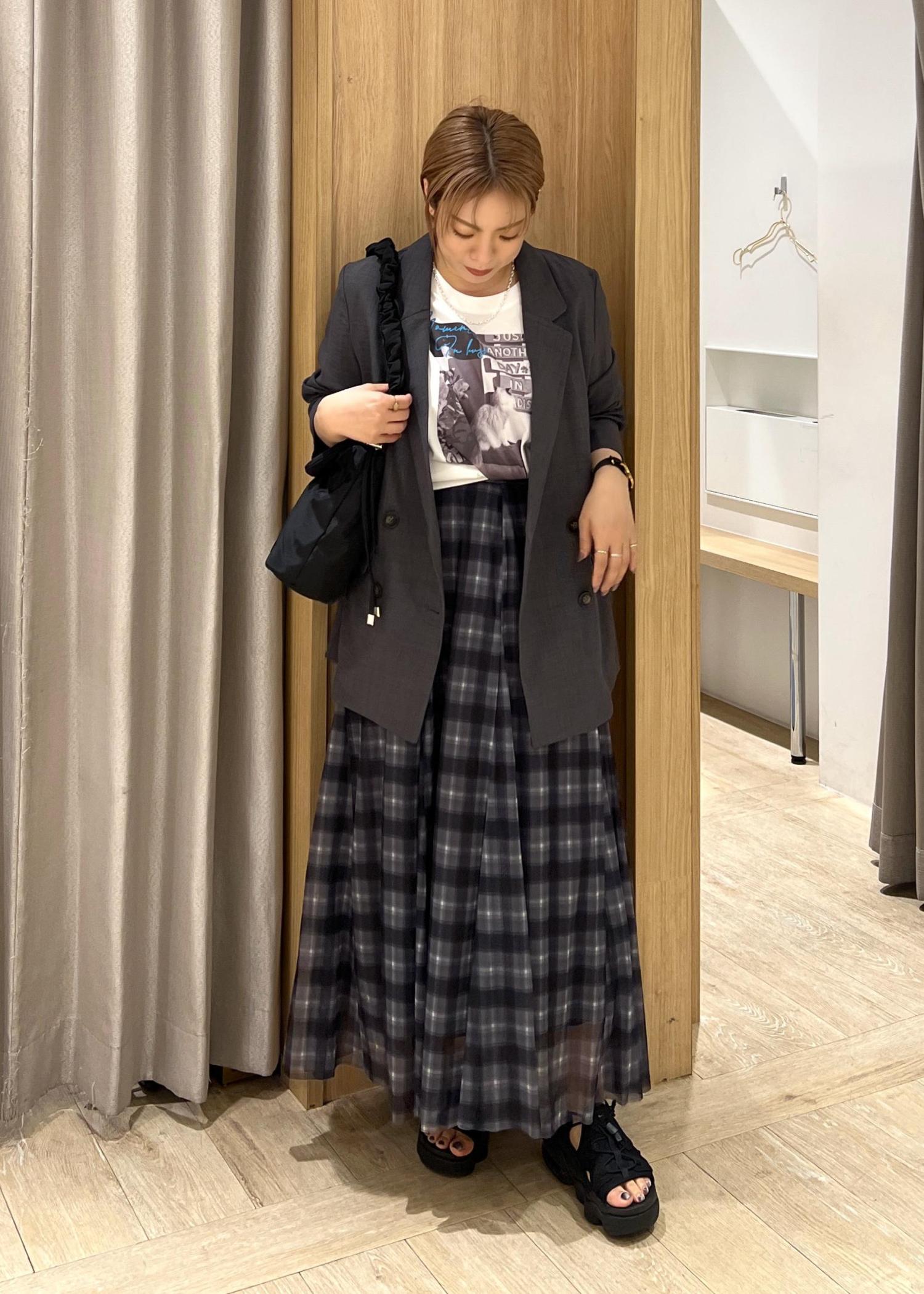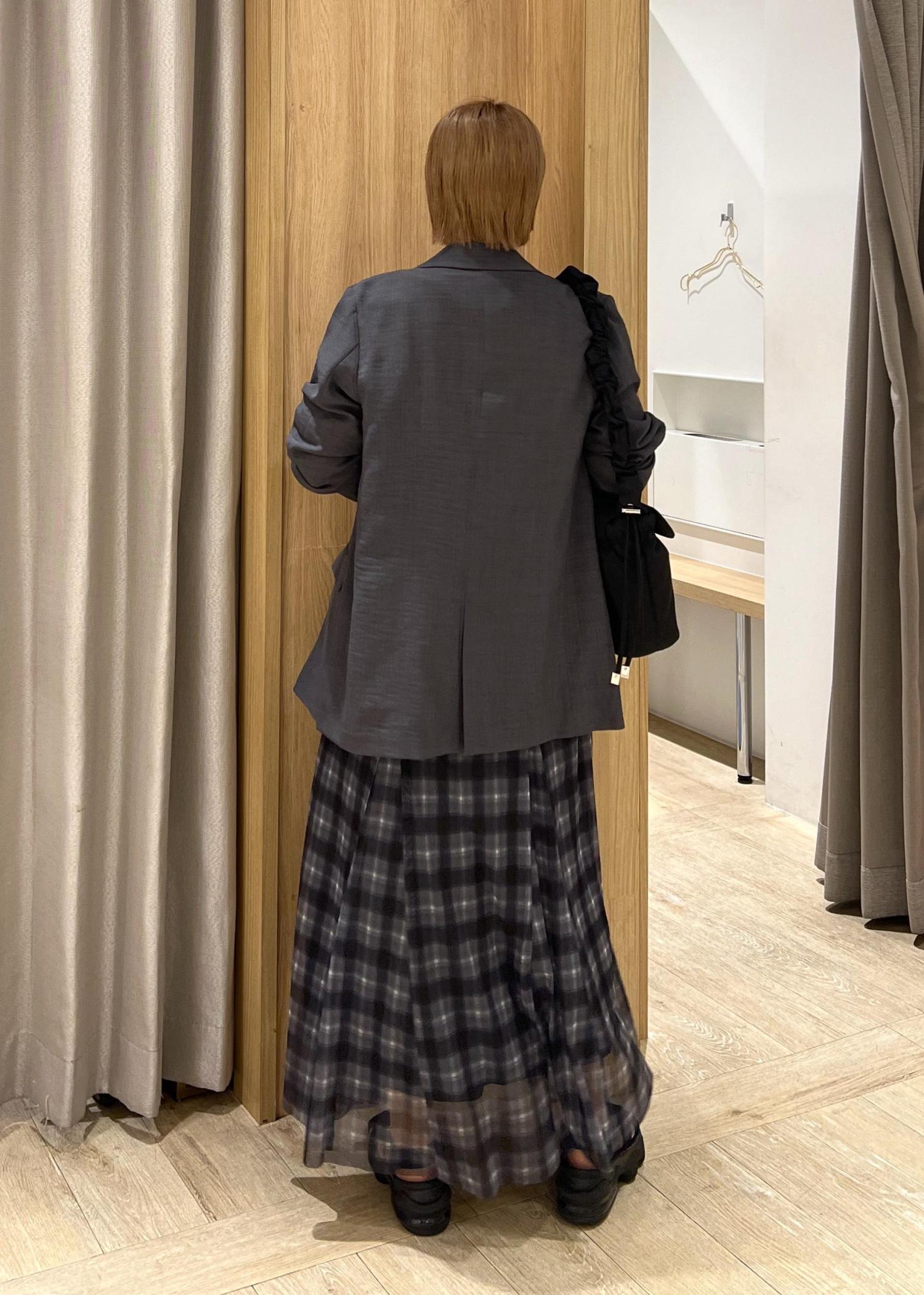 大人気!美easyジャケットにトレンドのチェックスカートを合わせた大人の綺麗めカジュアルスタイルです!