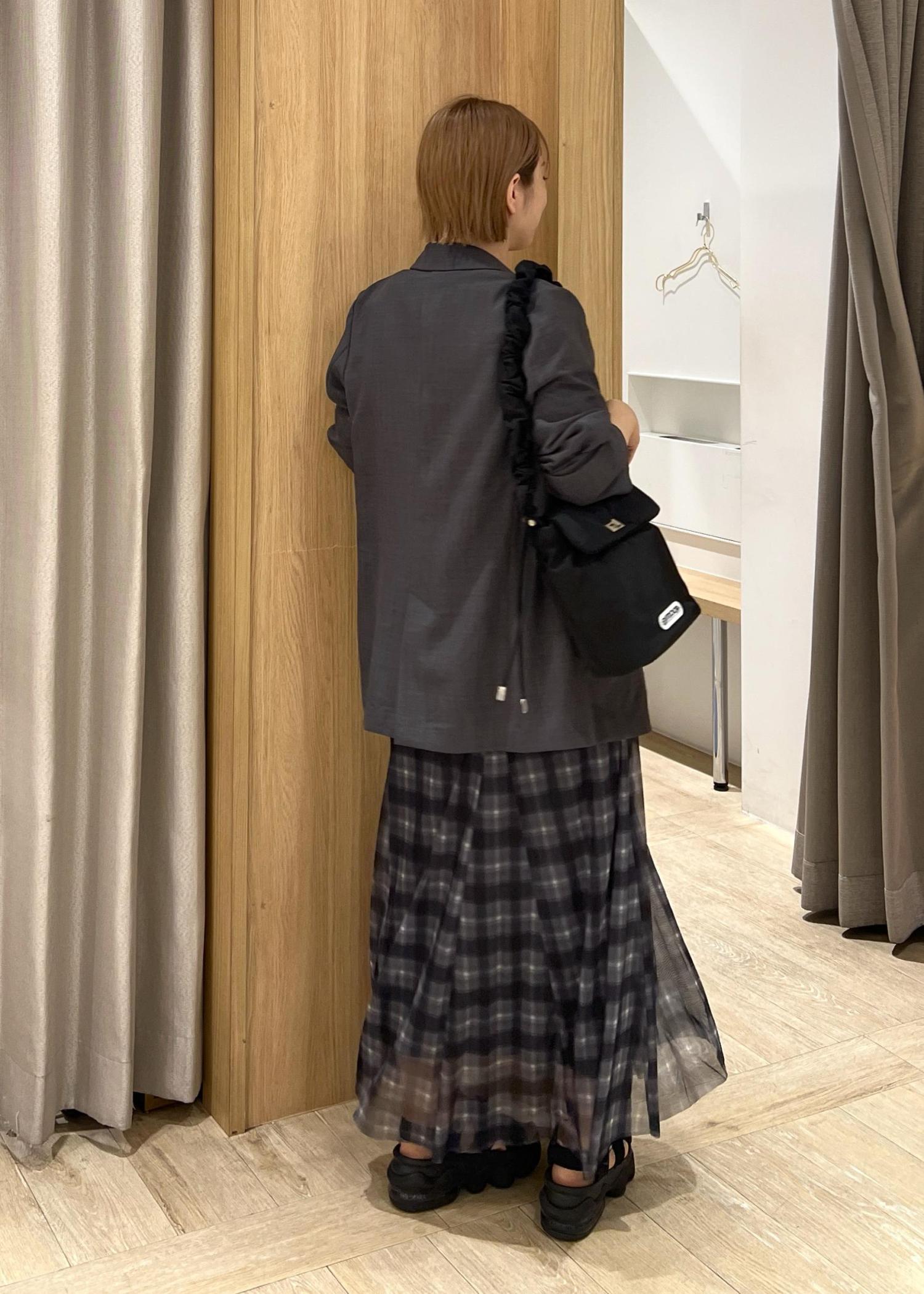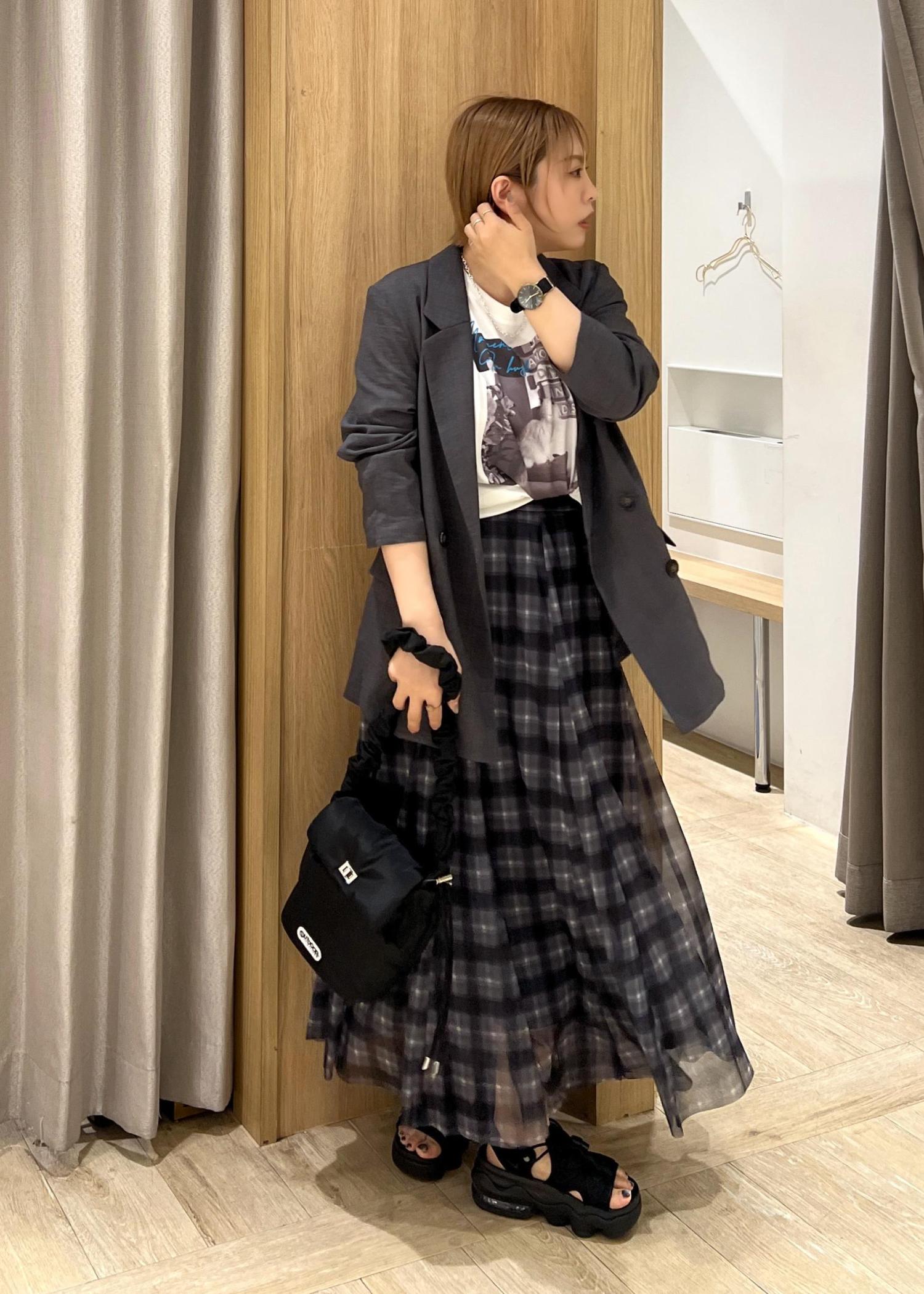スカートの透け感が重めカラーも軽やかに見せてくれます!