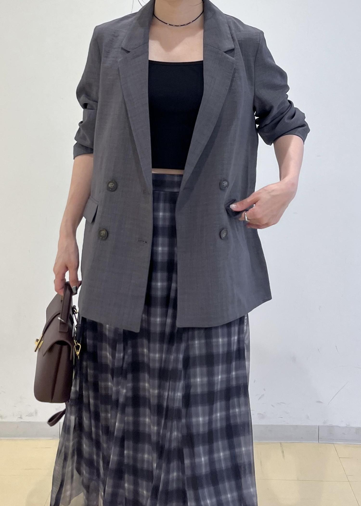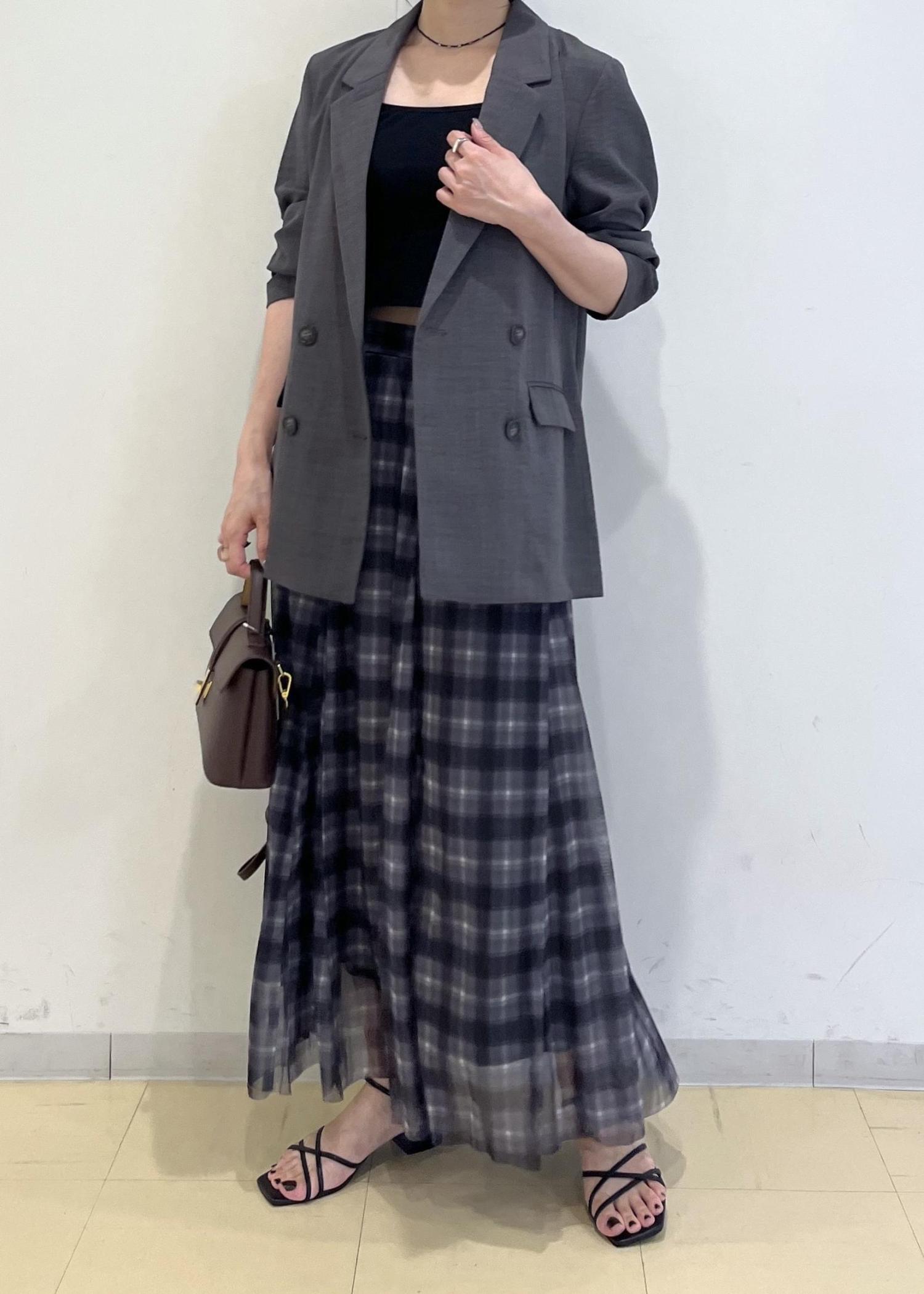 スカートの色味に合わせて他はモノトーンでまとめました。