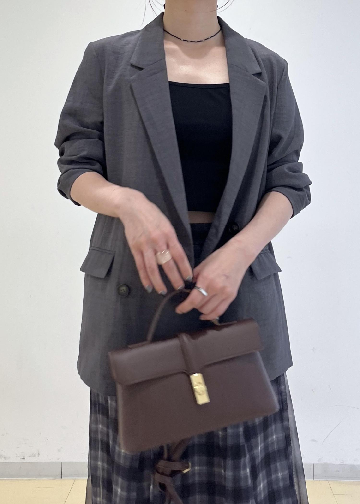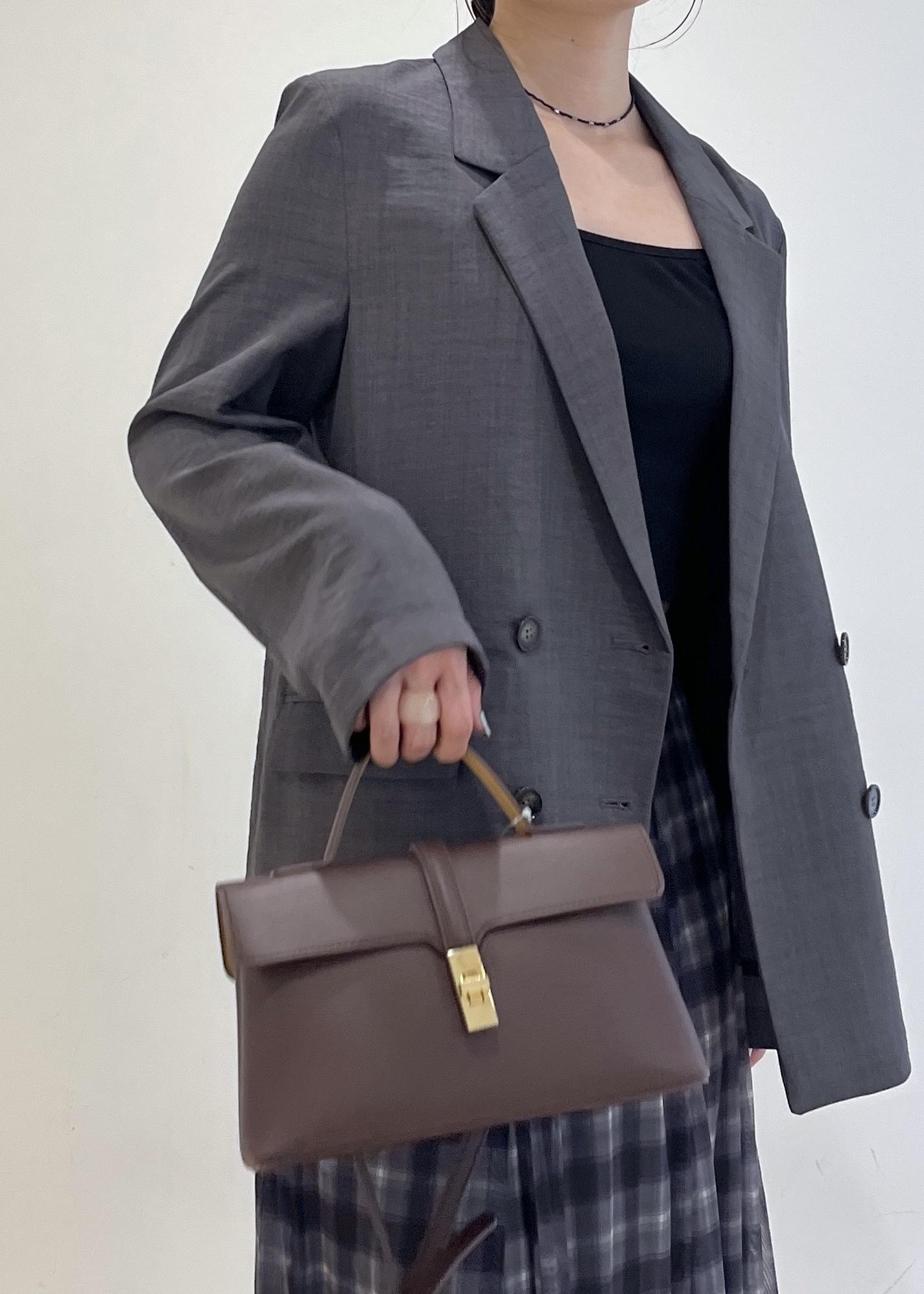 バッグは秋を感じさせるブラウンカラーで。
