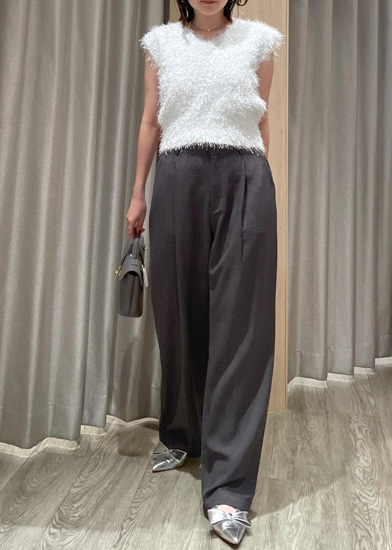VIS【美easy】ワンタックワイドスラックスパンツ/洗えるチャコール / L¥5,489レビュー身長159cm/Mサイズ着用/ジャストサイズでした!ワイドパンツでリラックス感もありながら、太すぎないシルエットとセンターラインでスッキリ見えも叶います◎