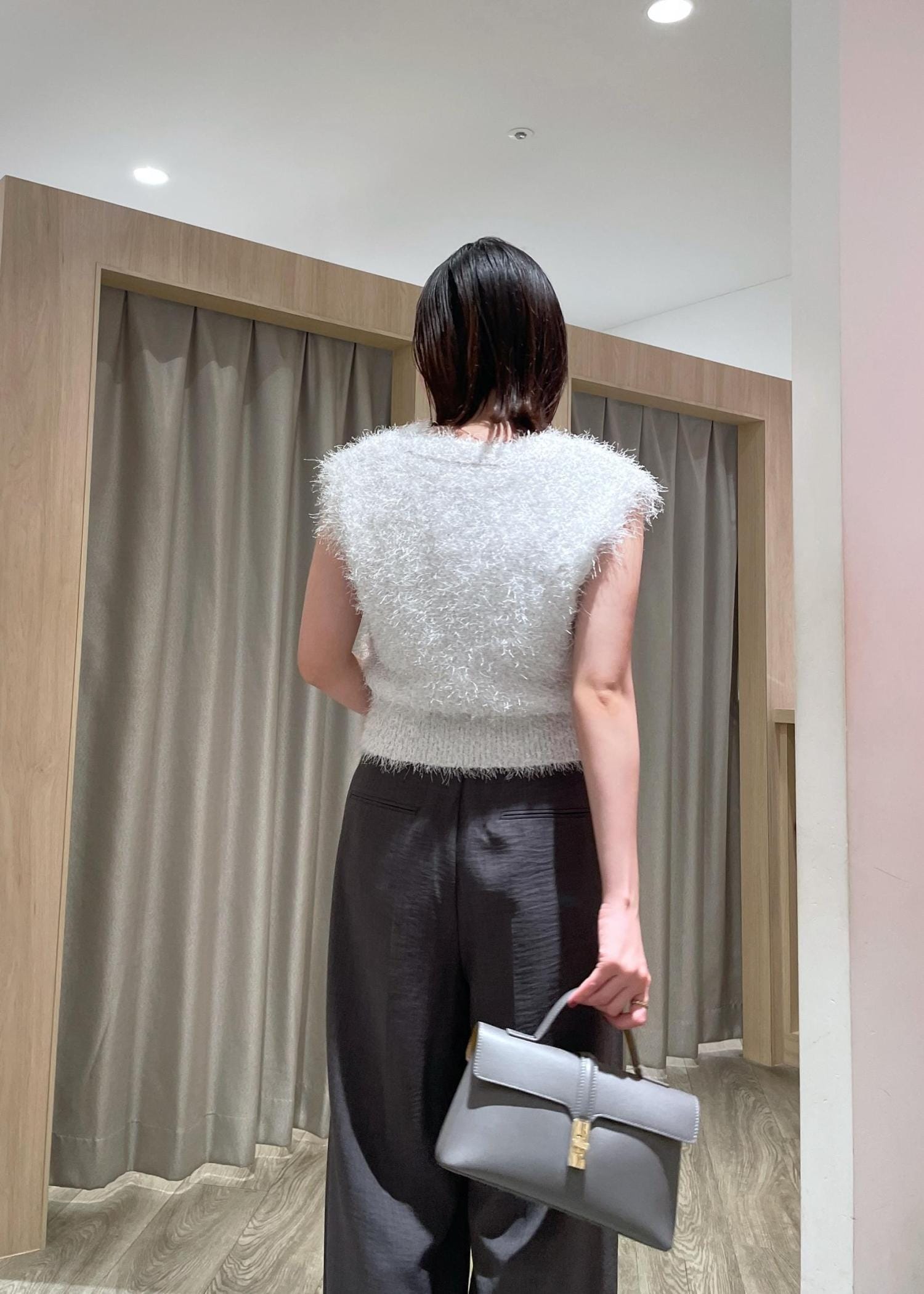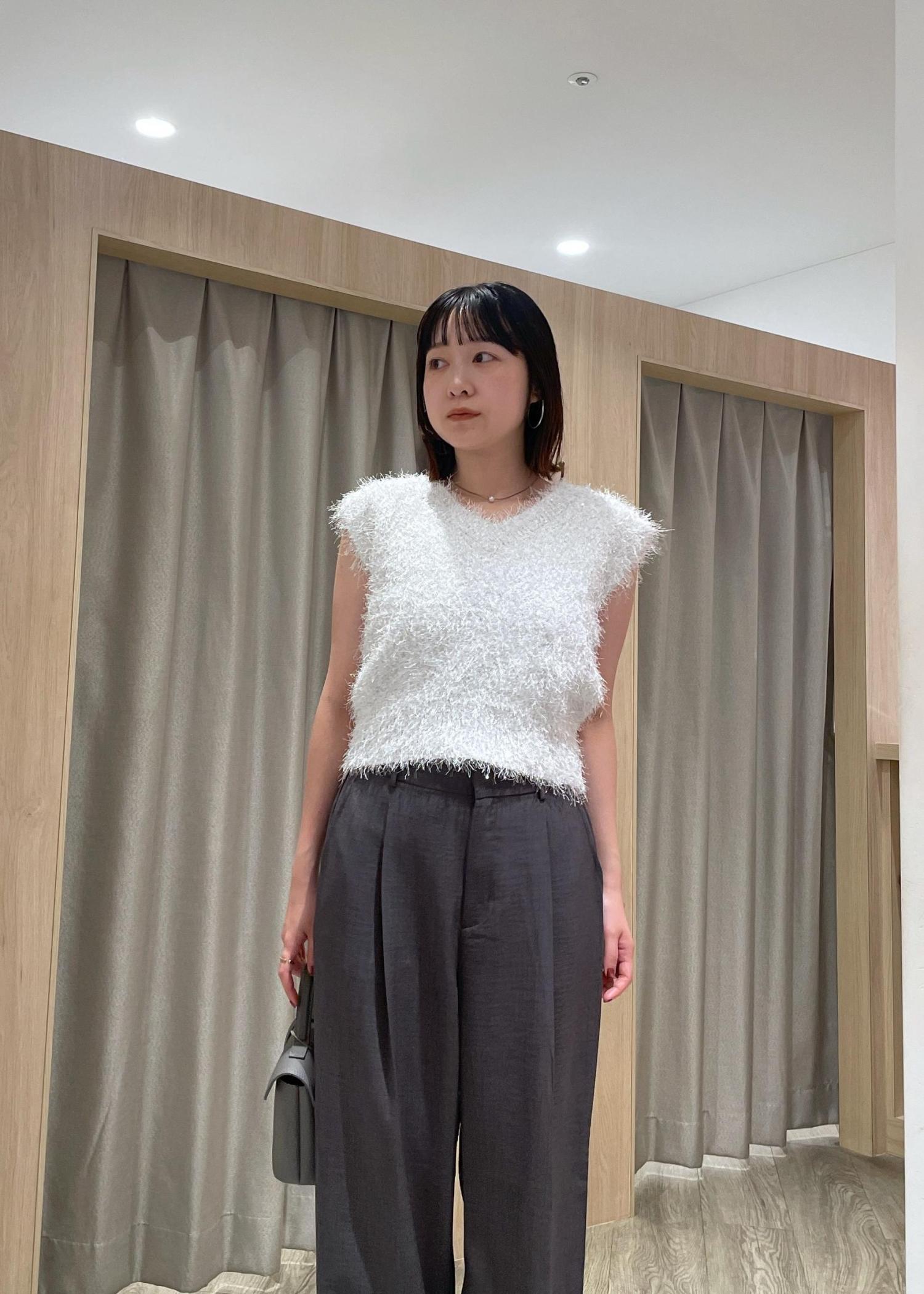 VIS【WEB限定サイズ:MT/着丈が選べる】【洗える】フェザーヤーンニットベストホワイト系 / M¥2,745