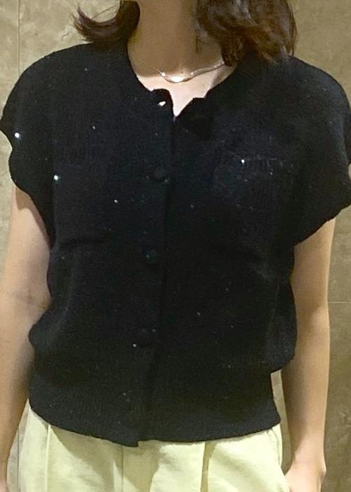 VISくるみ釦ニットトップスカーデ/洗えるブラック系 / F¥4,939レビュー150cmで腰にかかる丈感でした!袖が結構短いと思ったのですが二の腕カバー出来るぐらいの袖感でした!安心して着用できます◎