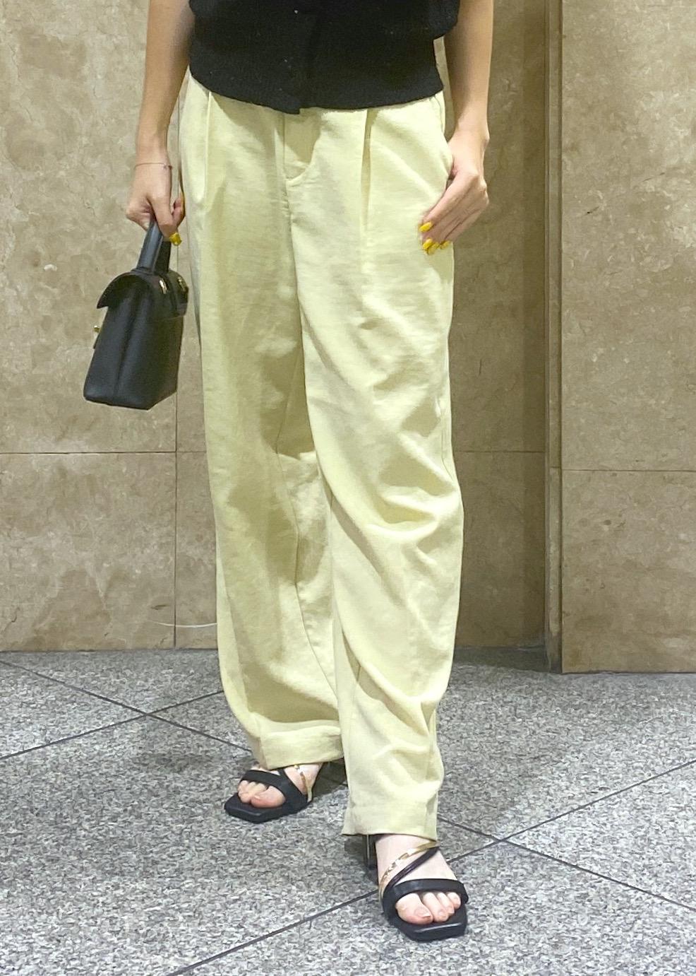 VIS【美easy】ワンタックワイドスラックスパンツ/洗えるイエロー系 / SS¥5,489レビュー150センチでSSサイズを着用し、くるぶしにかかる丈感でした!