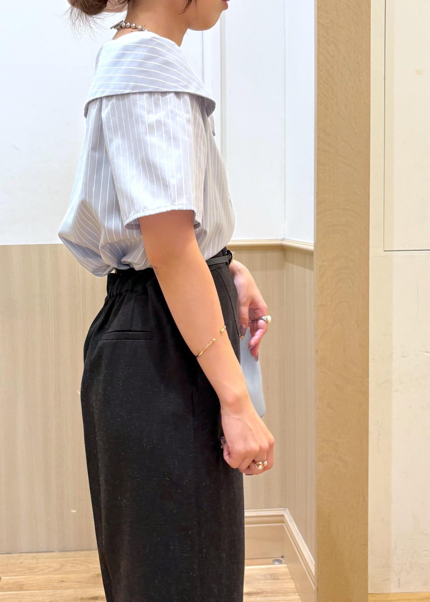 肘上くらいまでの袖の長さなので、脇なども見えずにインナーも気にしなくてよくて便利なサイズ感でした。 -