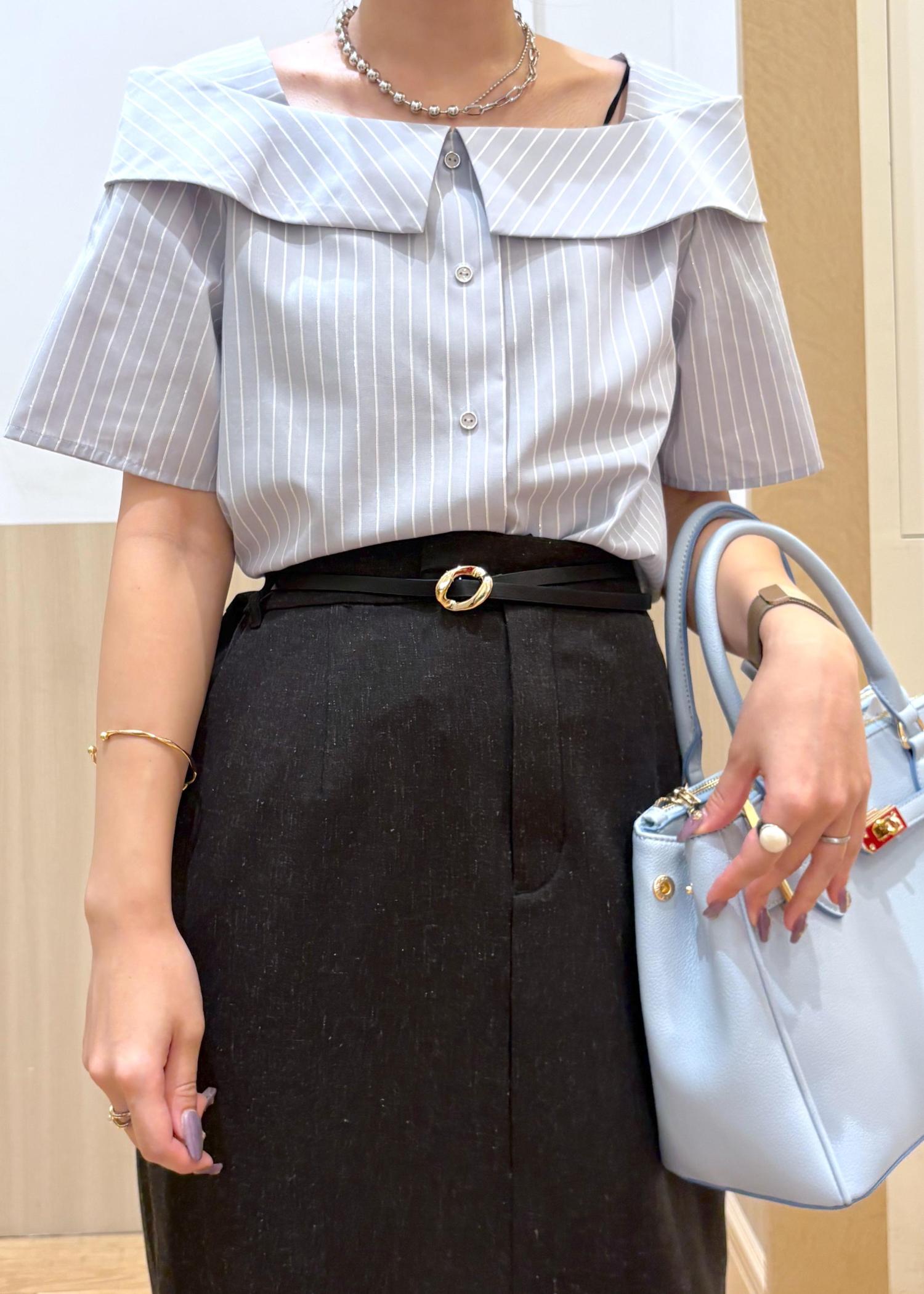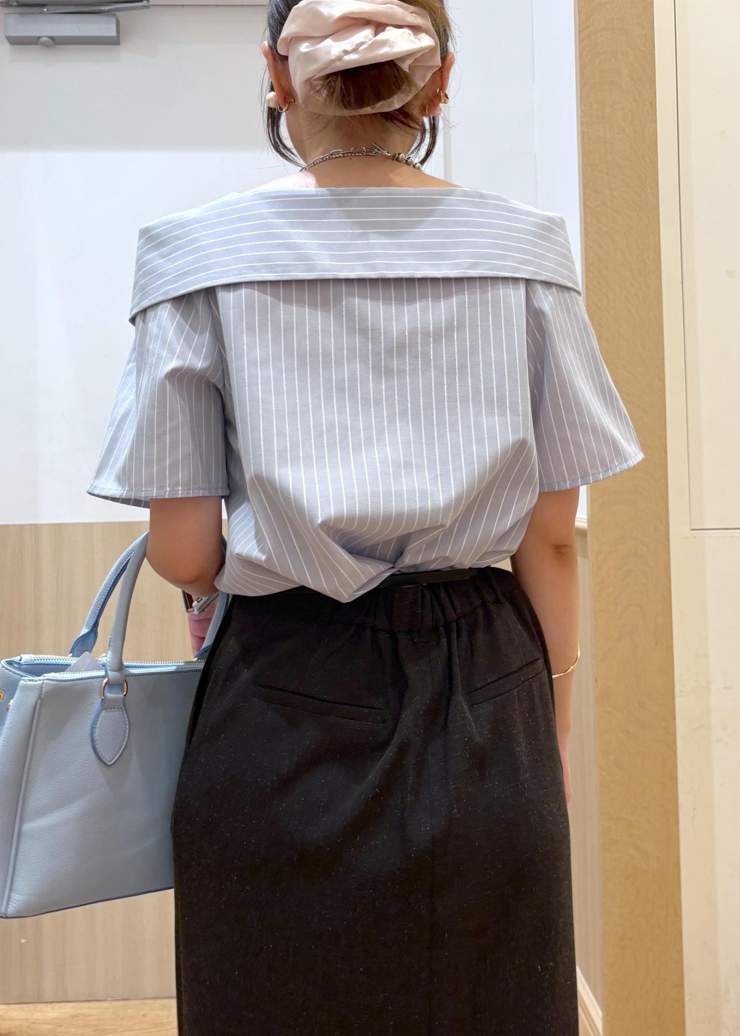 VIS【新色追加】【防シワ】ラメミックスオフショルダー風ストライプシャツライトグレー / F¥5,489レビュー肩紐が見えないような工夫がされている便利なシャツです。
