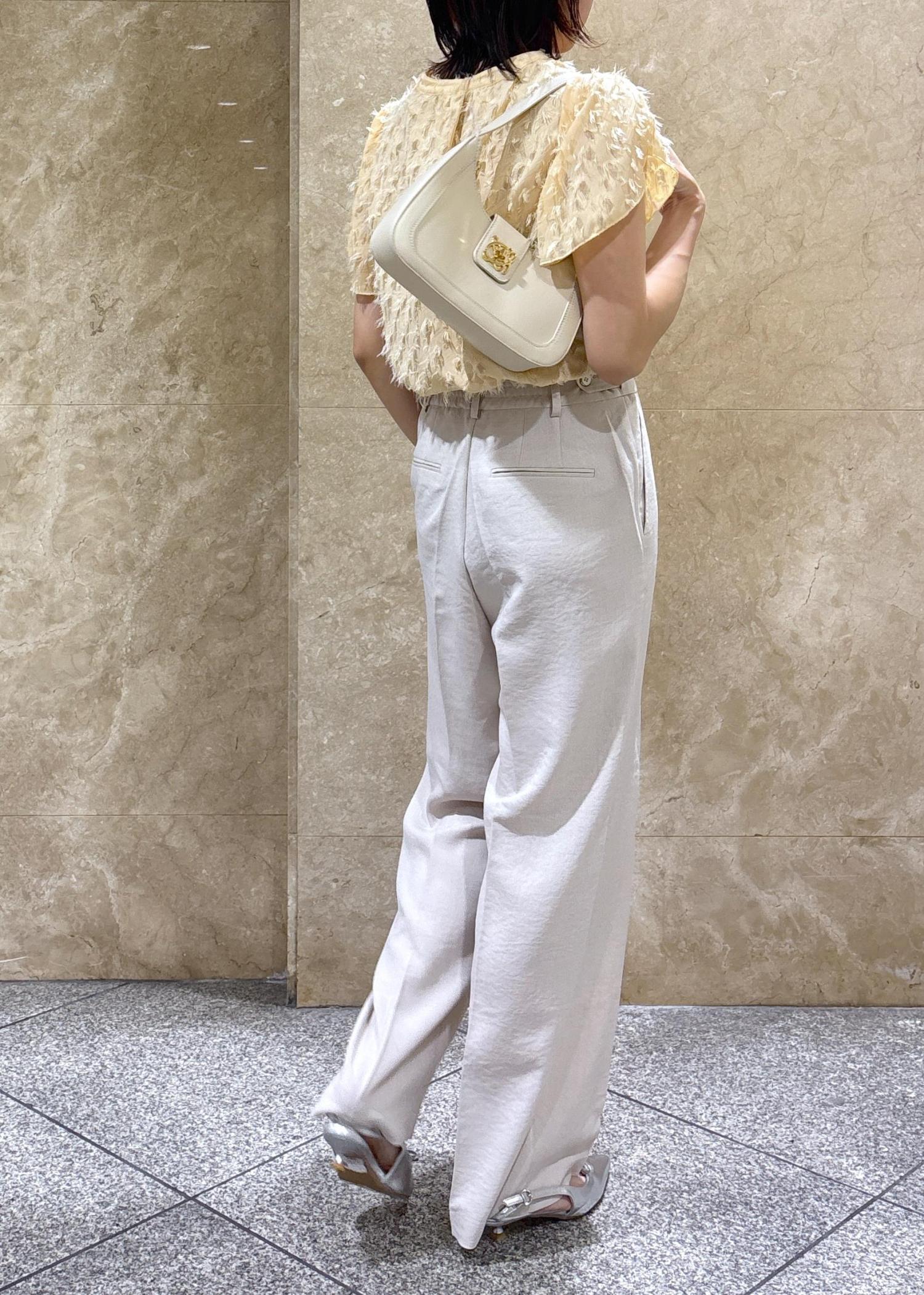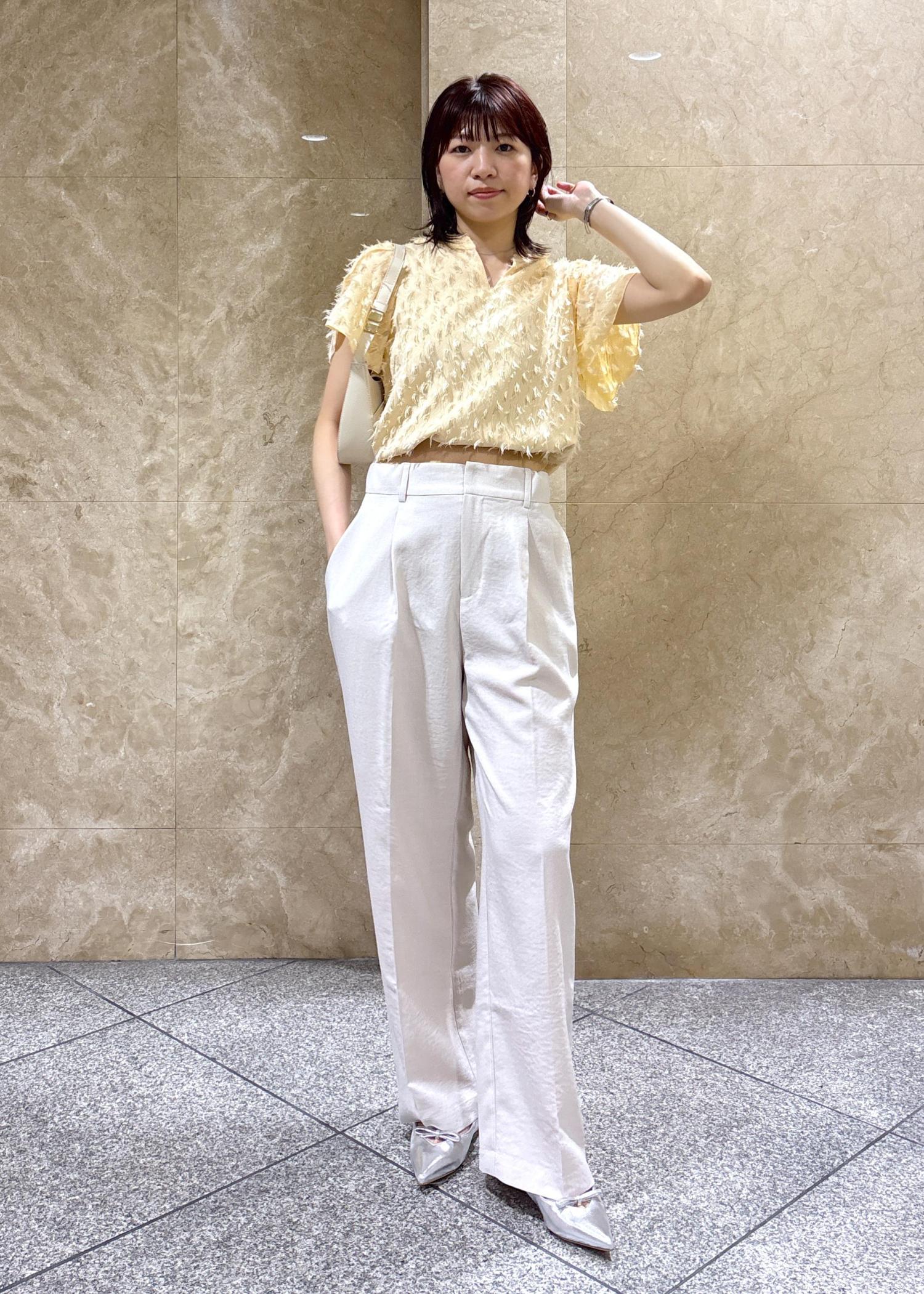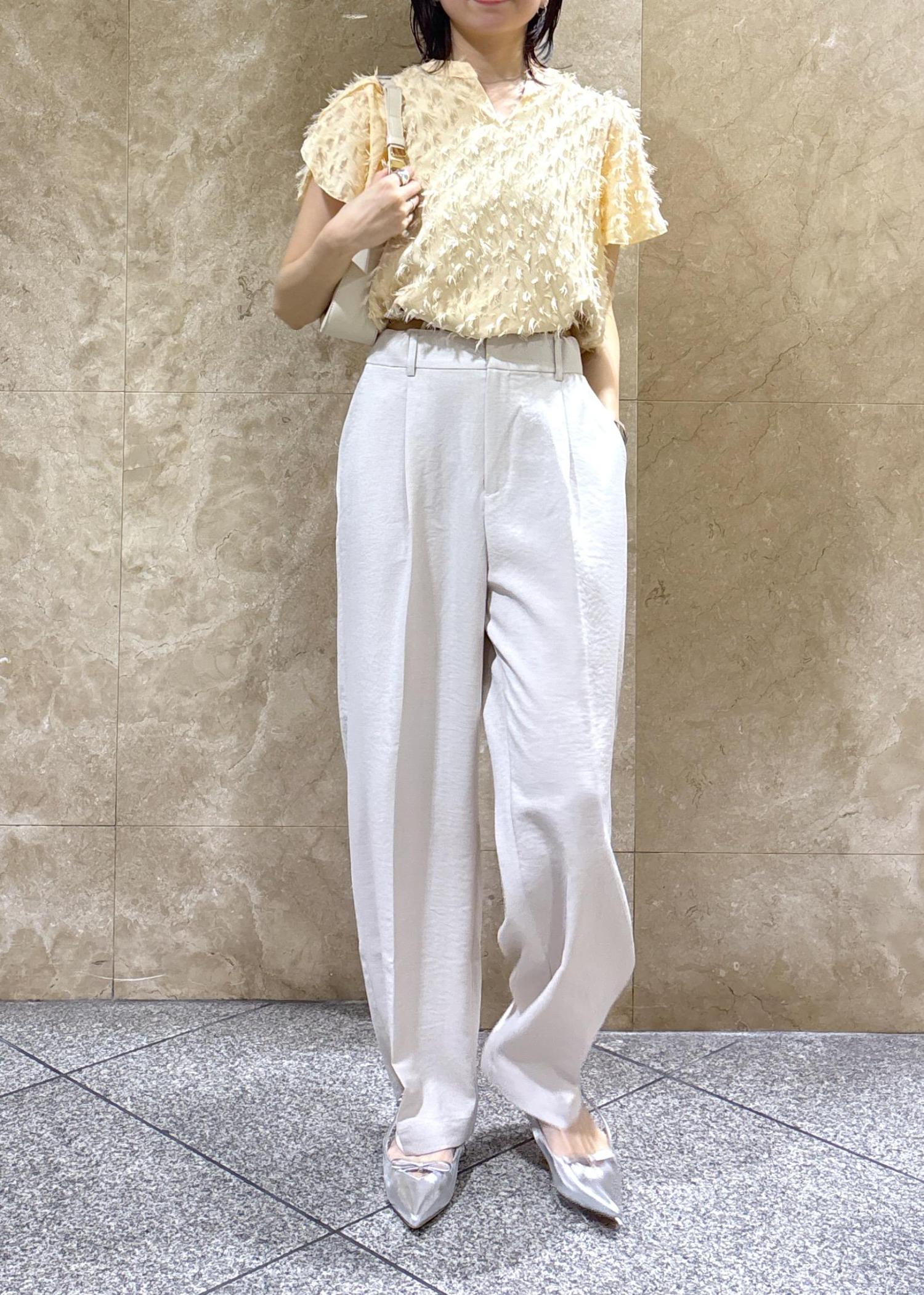 淡いカラー合わせで、通勤にも使えそうな爽やかアイテムでまとめました。