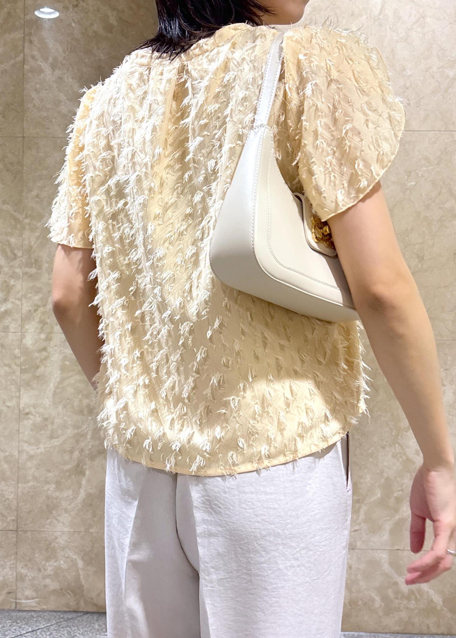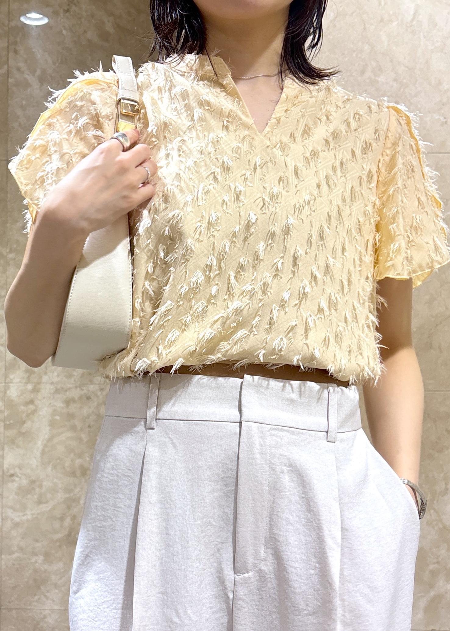 オレンジとイエローの間のような柔らかいパステルカラーで、イエベ春が大優勝する垢抜けカラーのブラウス♡