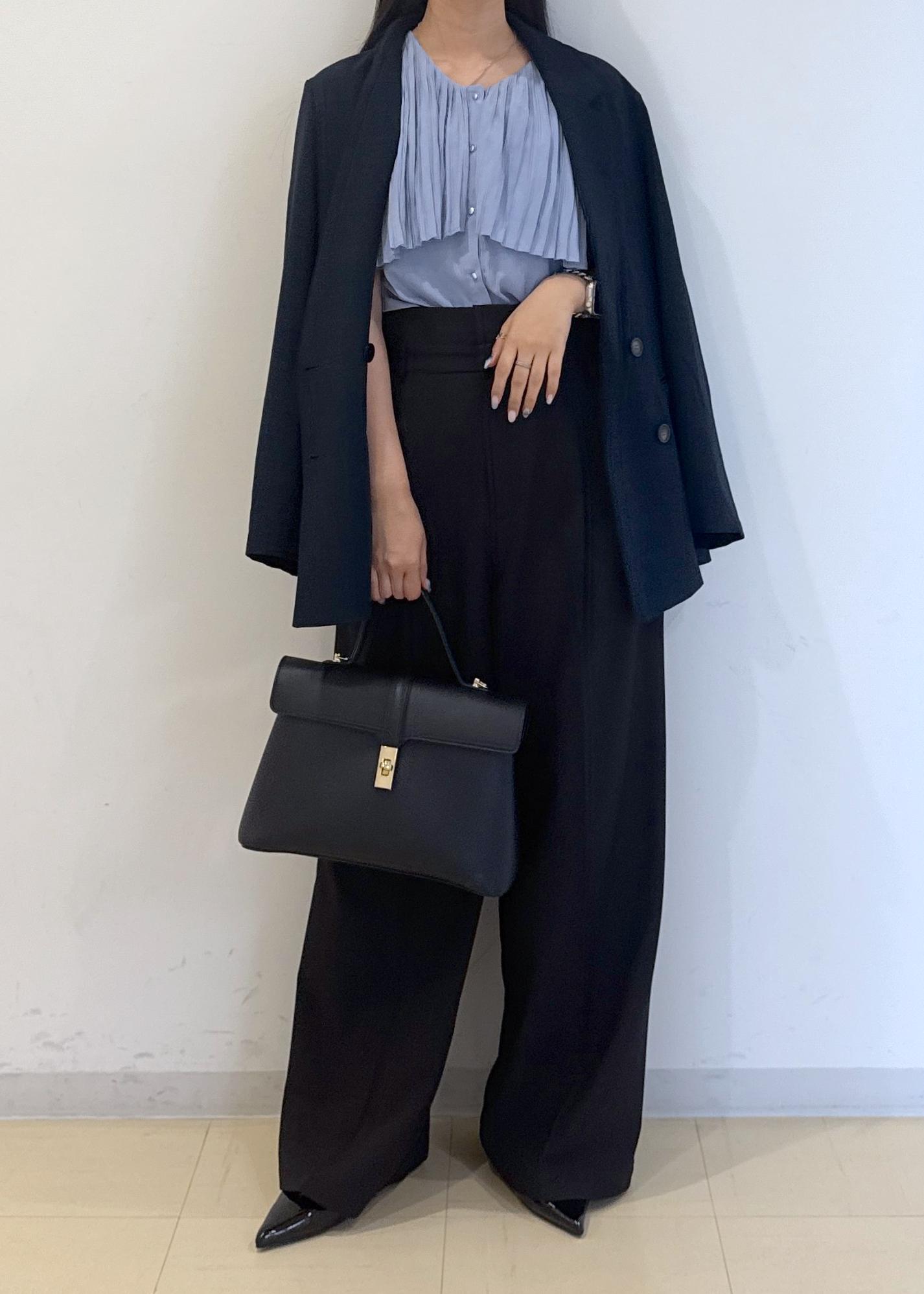 ブルーカラーで統一したオフィスカジュアルコーデです
