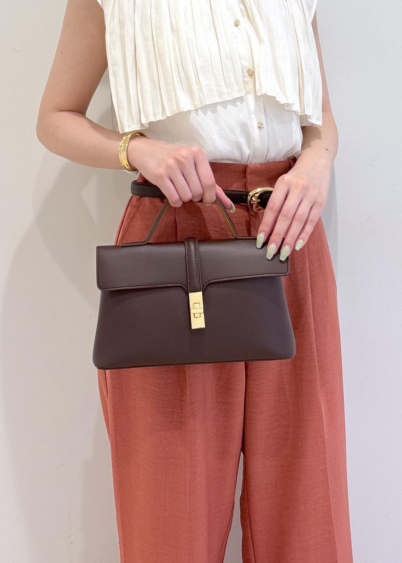 キラッとするチェーンも華奢見えします。