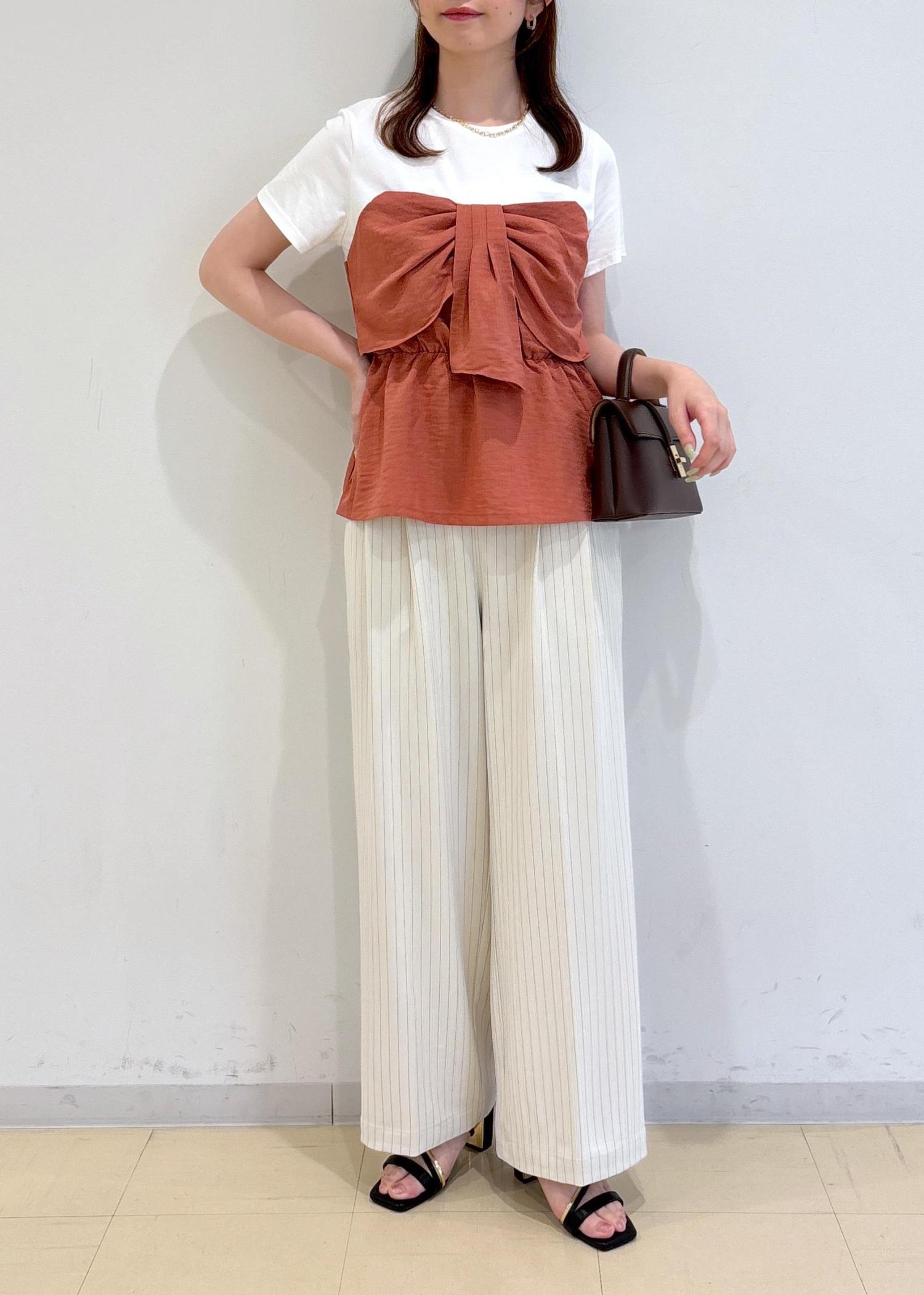 トップスのリボンデザインは大人可愛く1枚で着映えし、接触冷感付きで涼しく着用できます。