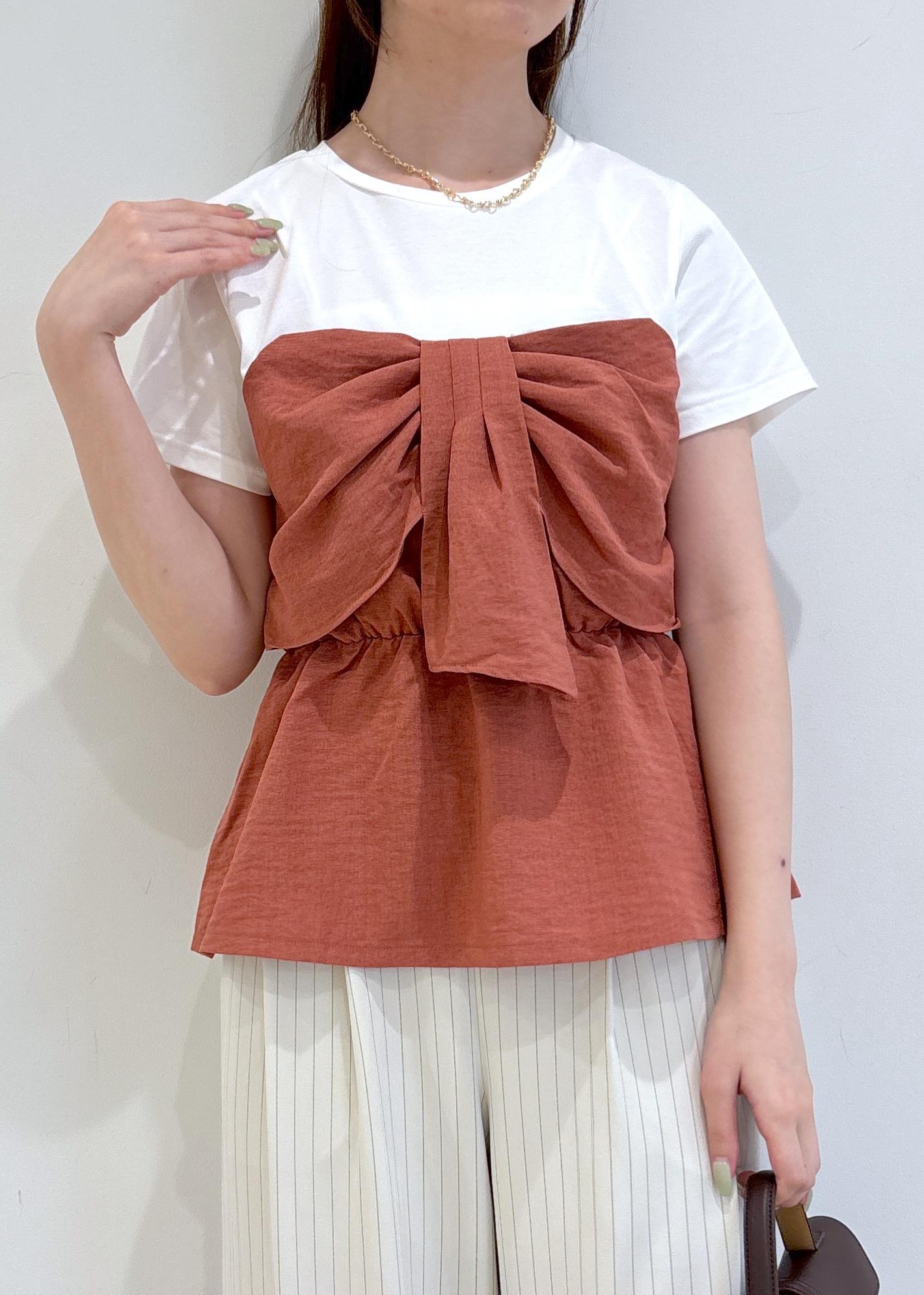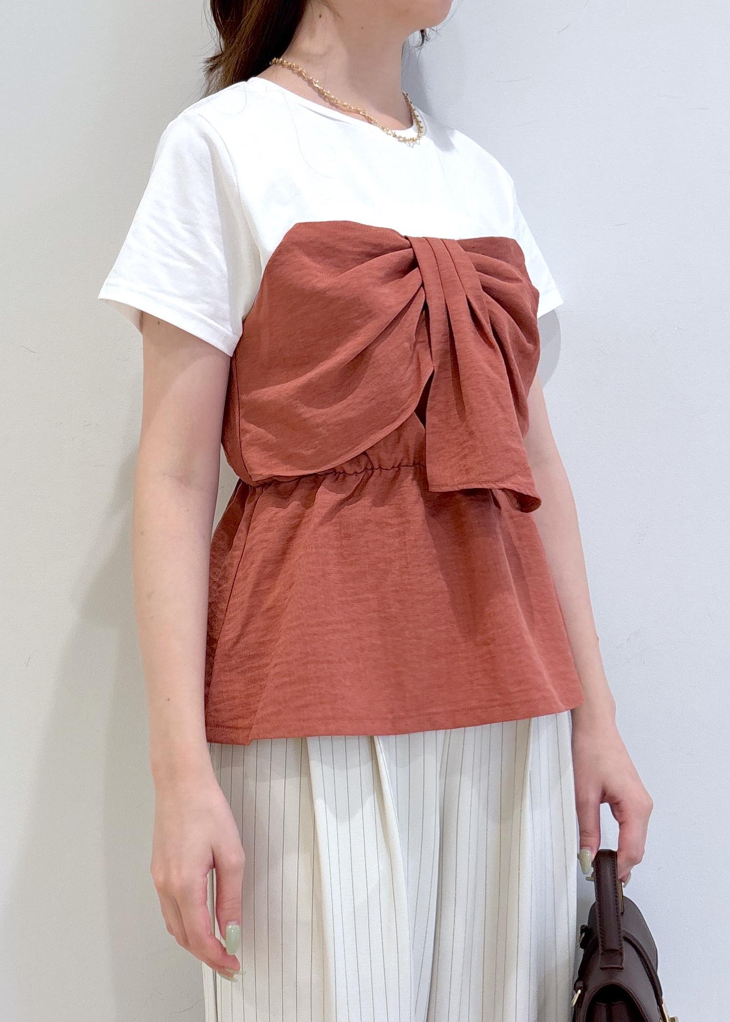 VIS【新色追加】【美easy】ねじりリボンTシャツドッキングプルオーバー【接触冷感/洗える】オレンジ系 / F¥5,489レビューリボンデザインが大人可愛いです。