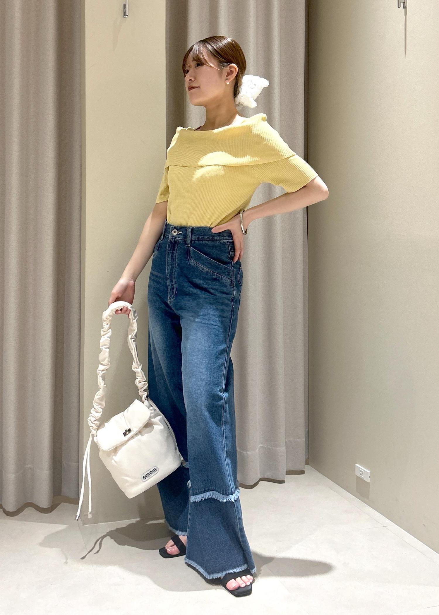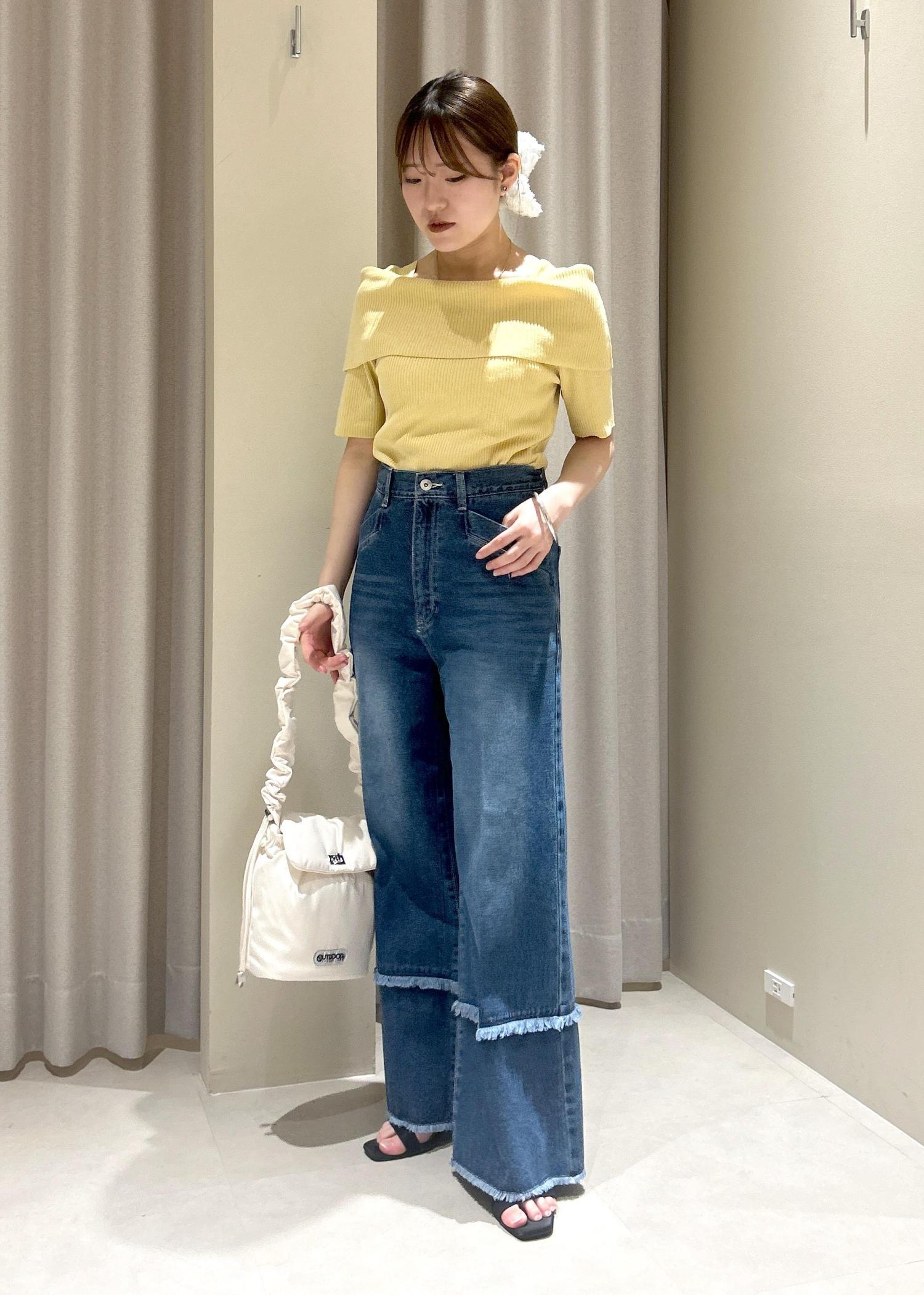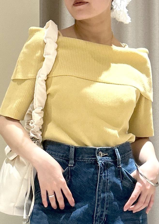 VIS【アンチピリング/UVケア/洗える】オフショルハーフスリーブニットイエロー系 / F¥4,939レビューオフショル風ニットで方を出したくないけどデコルテ部分綺麗に見せたい方にオススメです。普通のオフショルを着た時に腕を上げたりしたら上がってくるという悩みも同時に解決してくれます。