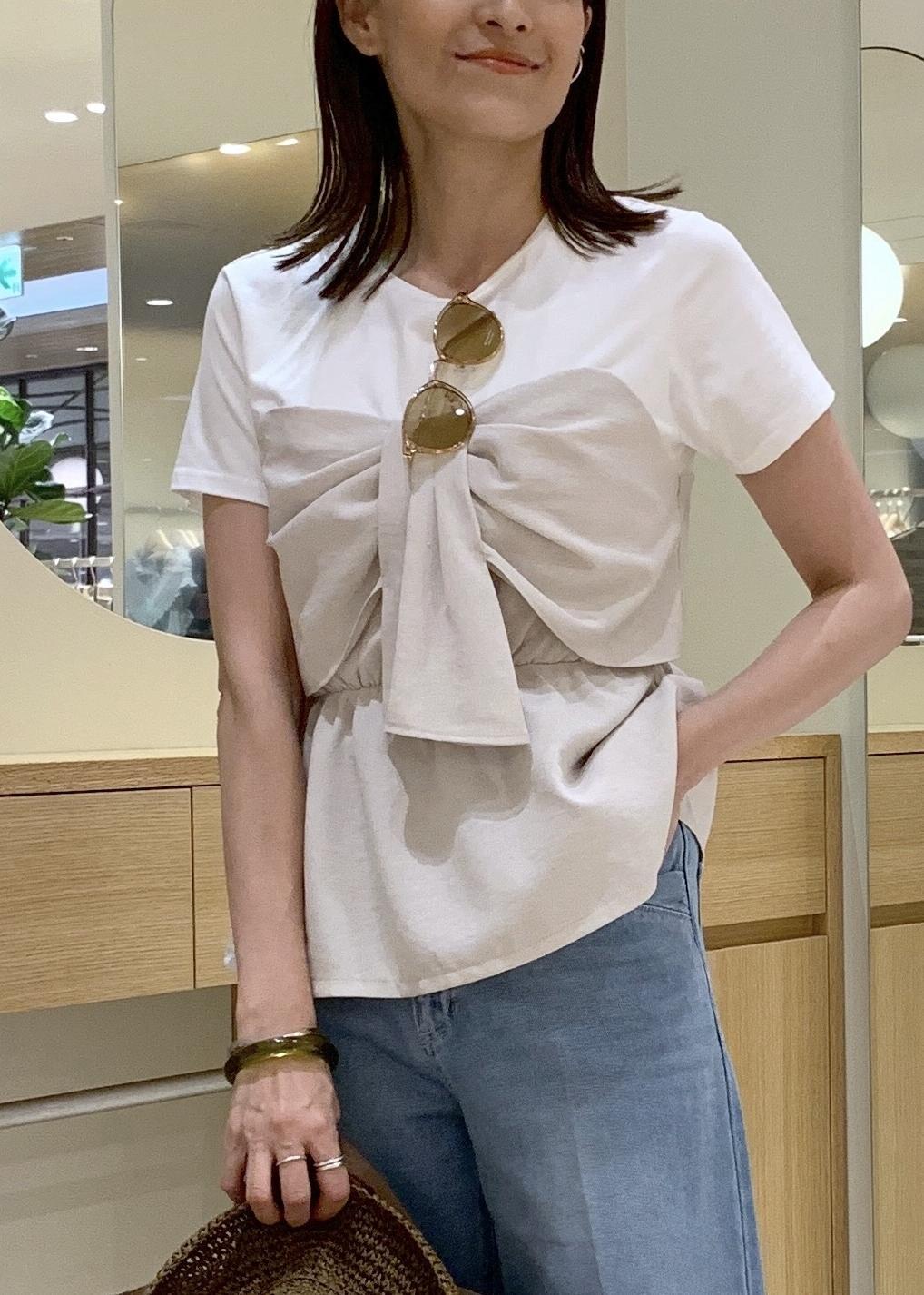 VIS【新色追加】【美easy】ねじりリボンTシャツドッキングプルオーバー【接触冷感/洗える】キナリ / F¥5,489レビュードッキングになっているデザインなので、普通のTシャツじゃ物足りない時リボンデザインがポイントになりますよ。