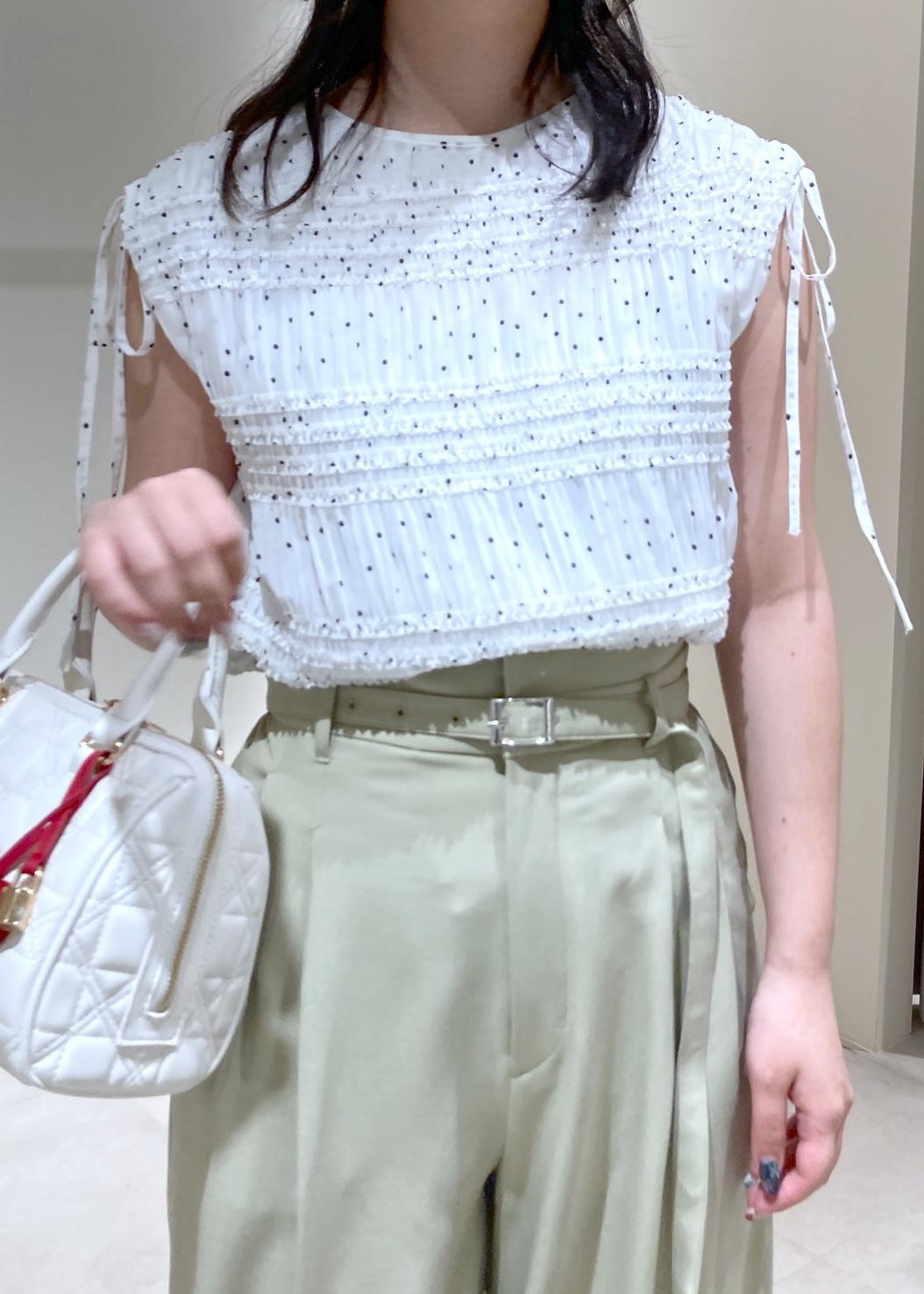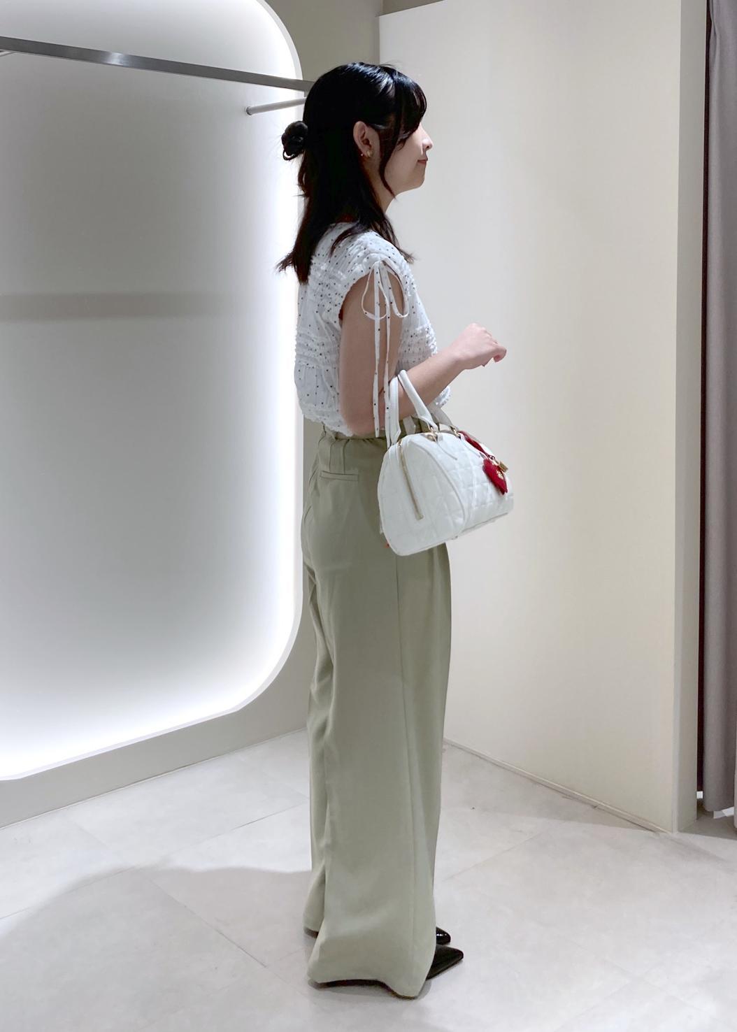 長めのリボンが付いていて目線が散らせるので細見え効果があります! -