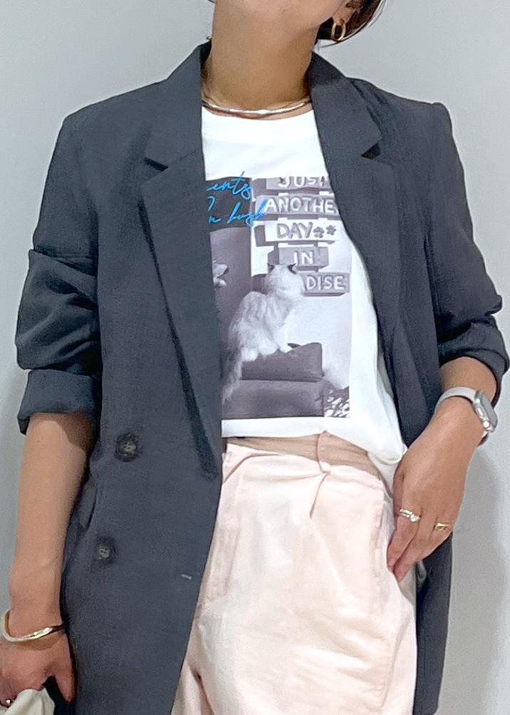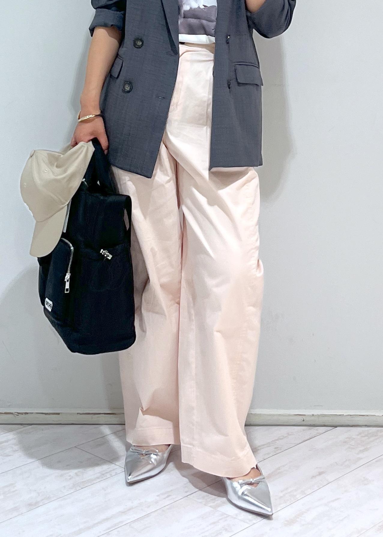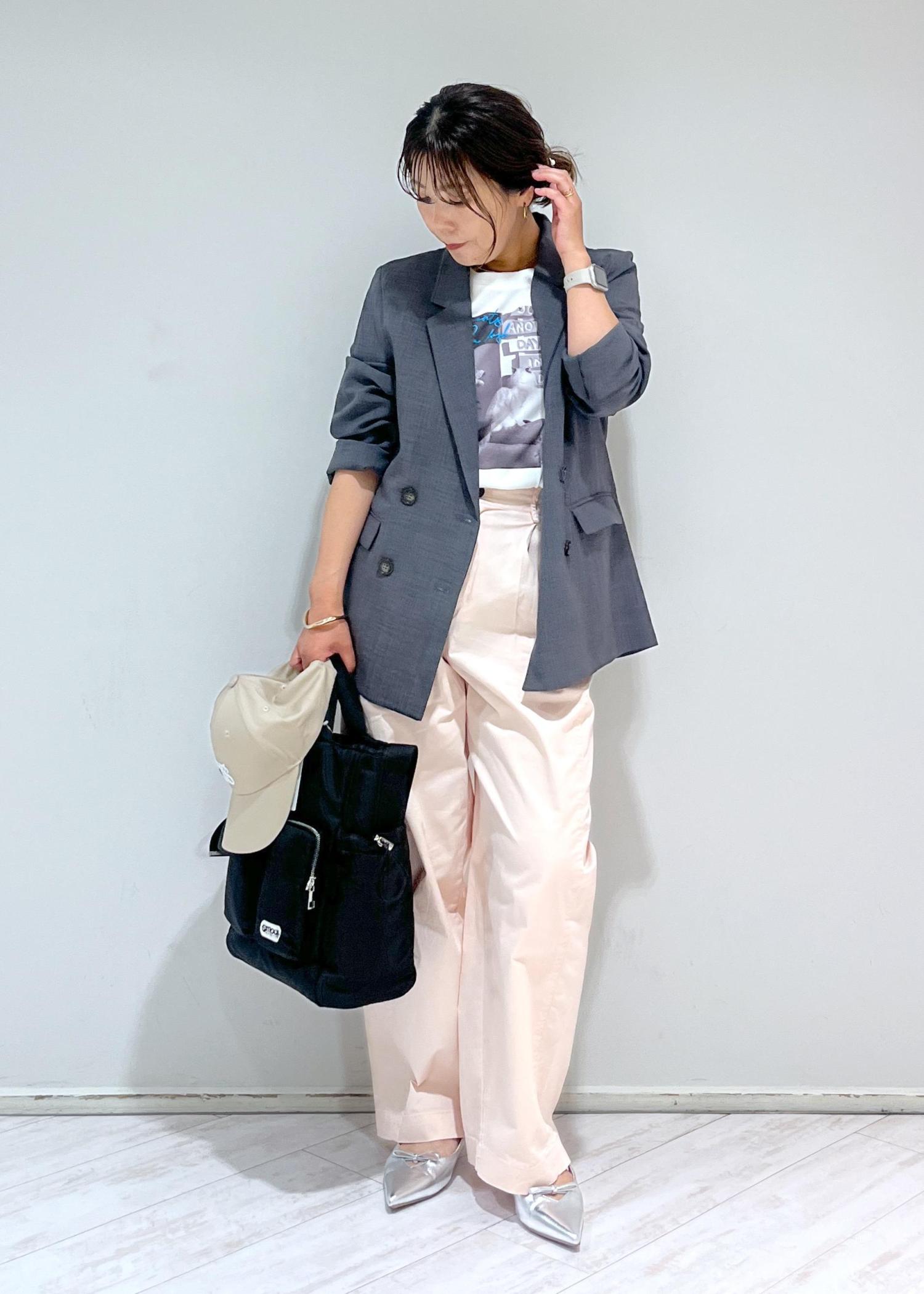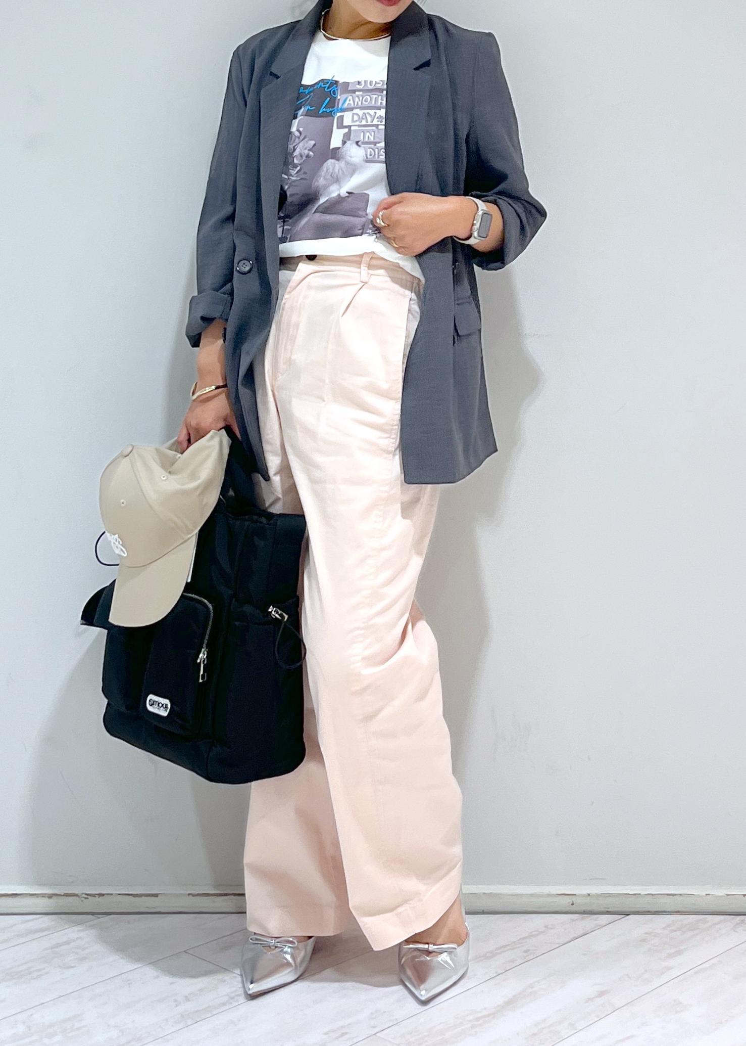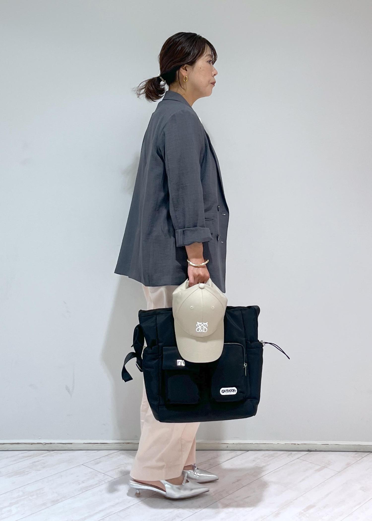 裏地もないので少しゆるっとしたサイズ感で着用できます。