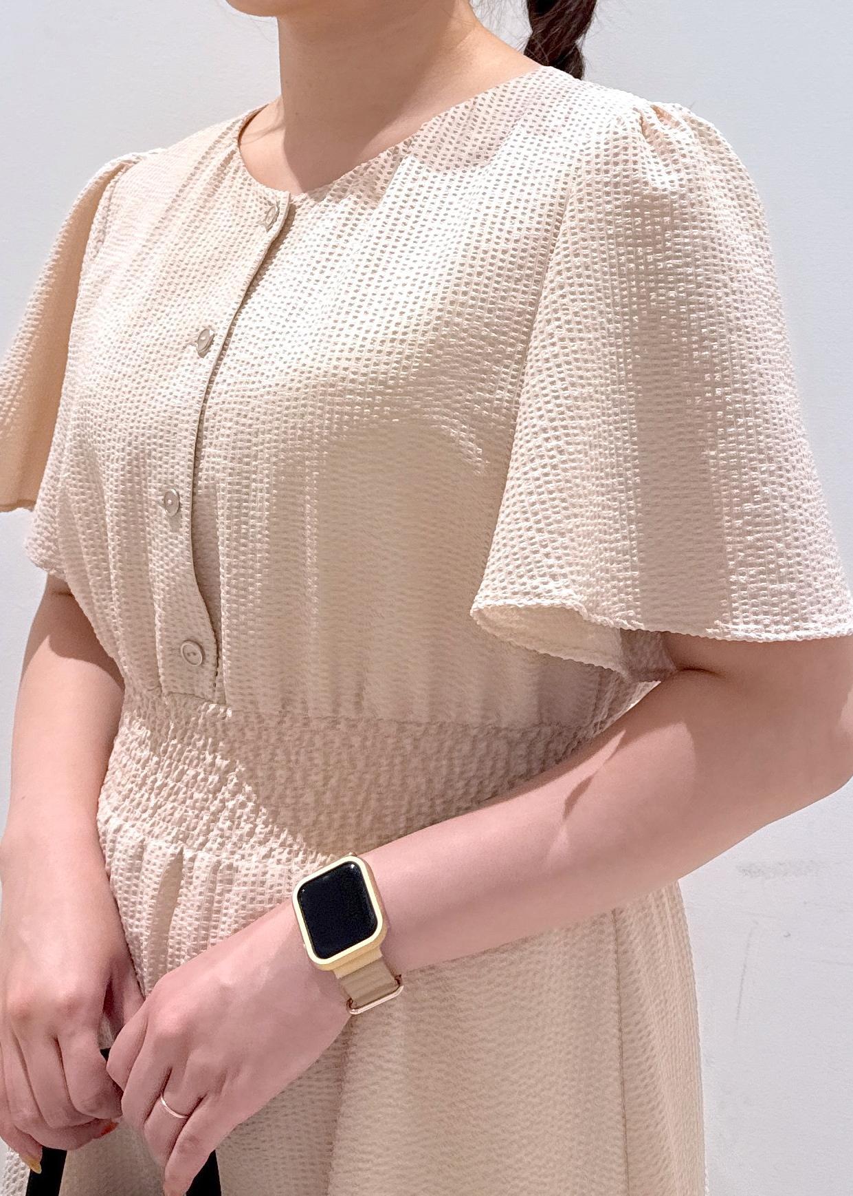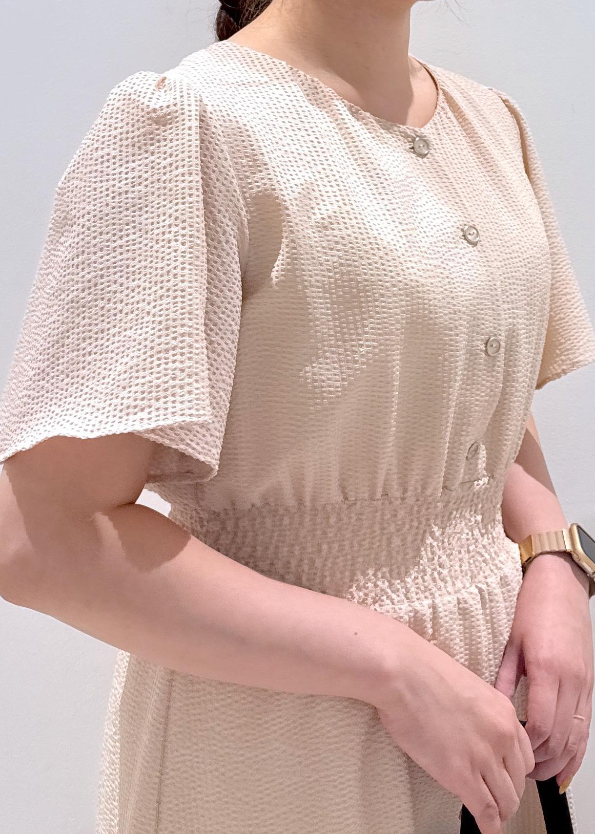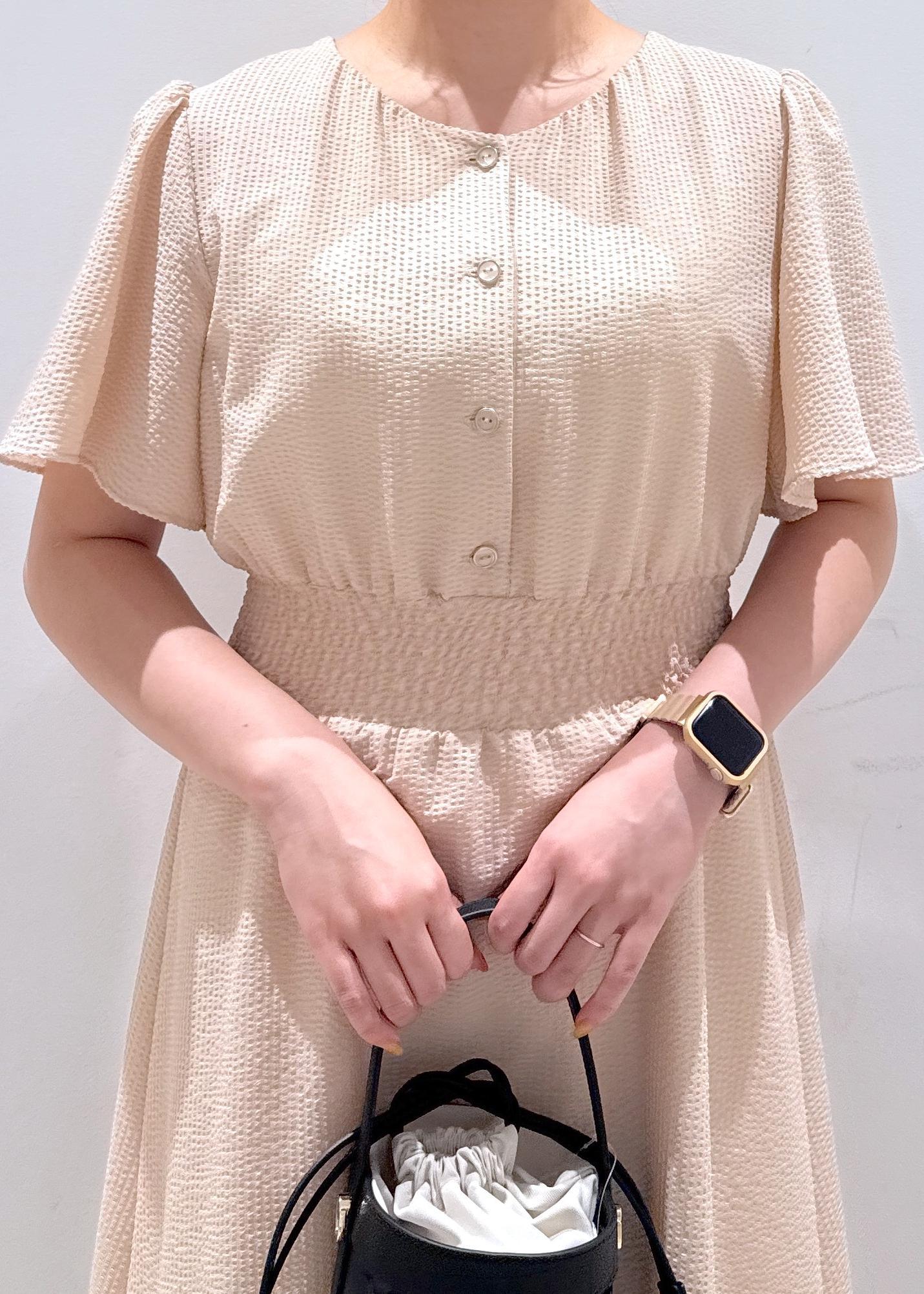 VISフレアスリーブサッカーワンピースベージュ系 / F¥6,919レビューさらさらとした涼しげな素材にウエストにゴムが入っているので、伸び感があり着やすいです!お袖の部分もちょうど二の腕がカバーできるので嬉しかったです。