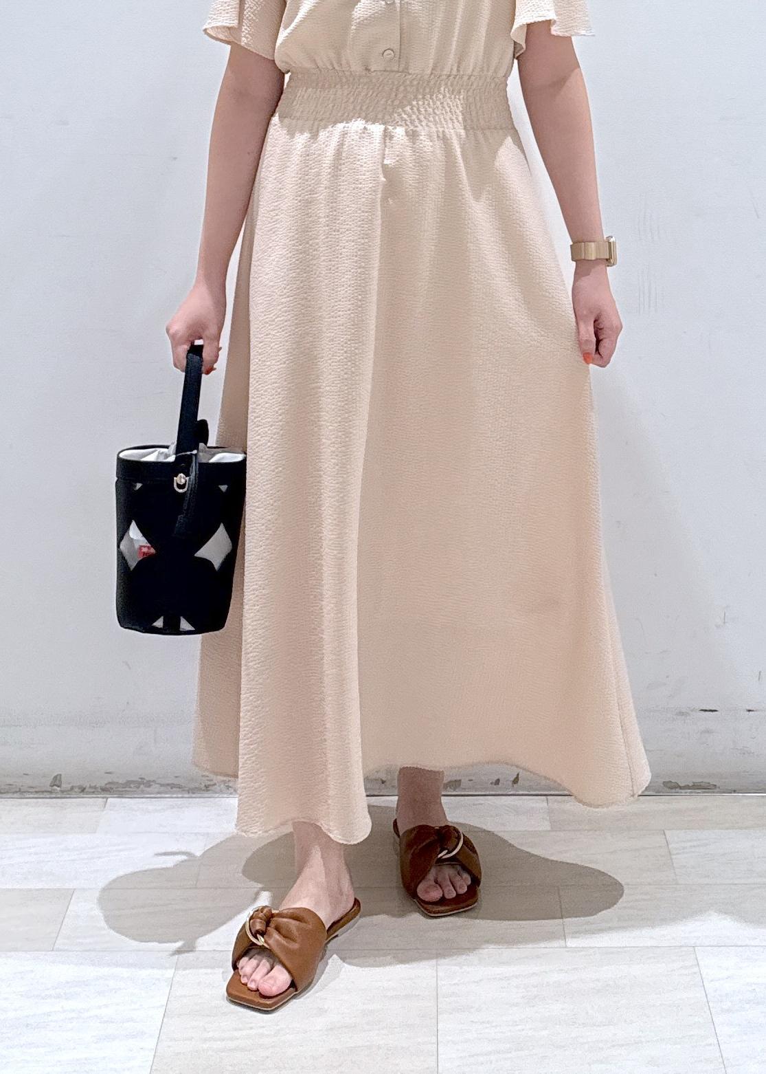 ウエストにシャーリングがついてゴムでつくられているので、お腹周りをカバーしつつ引き締まって見えるのも有り難かったです。