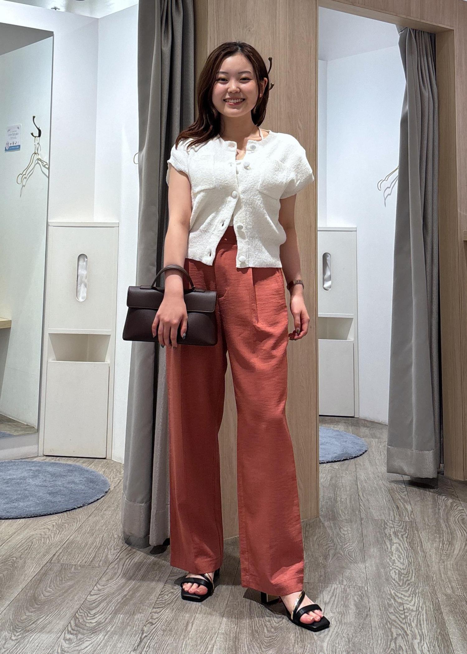 VIS【美easy】ワンタックワイドスラックスパンツ/洗えるオレンジ系 / S¥5,489レビュー身長150センチで、Sサイズだと丁度くるぶしが隠れる丈感です。