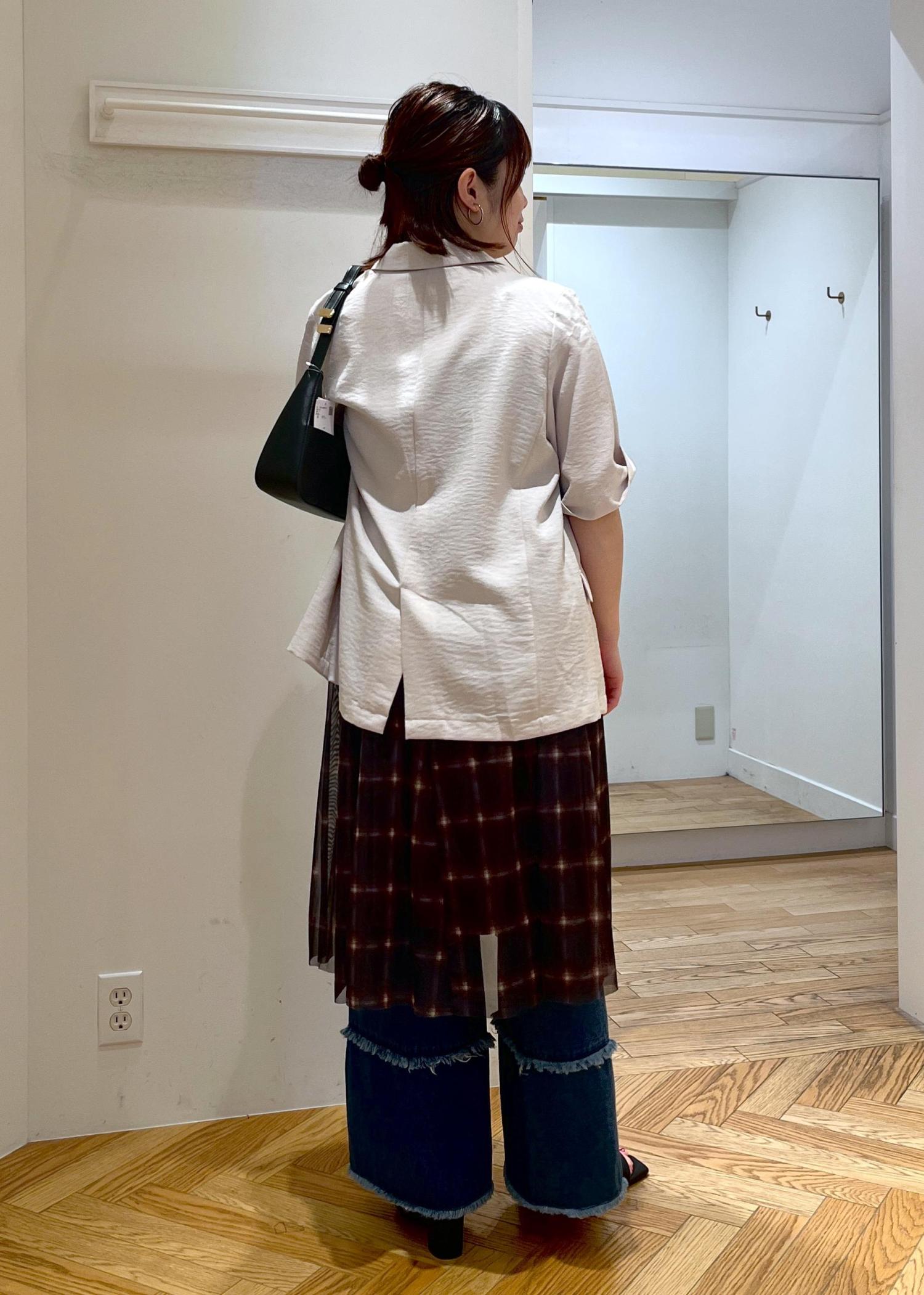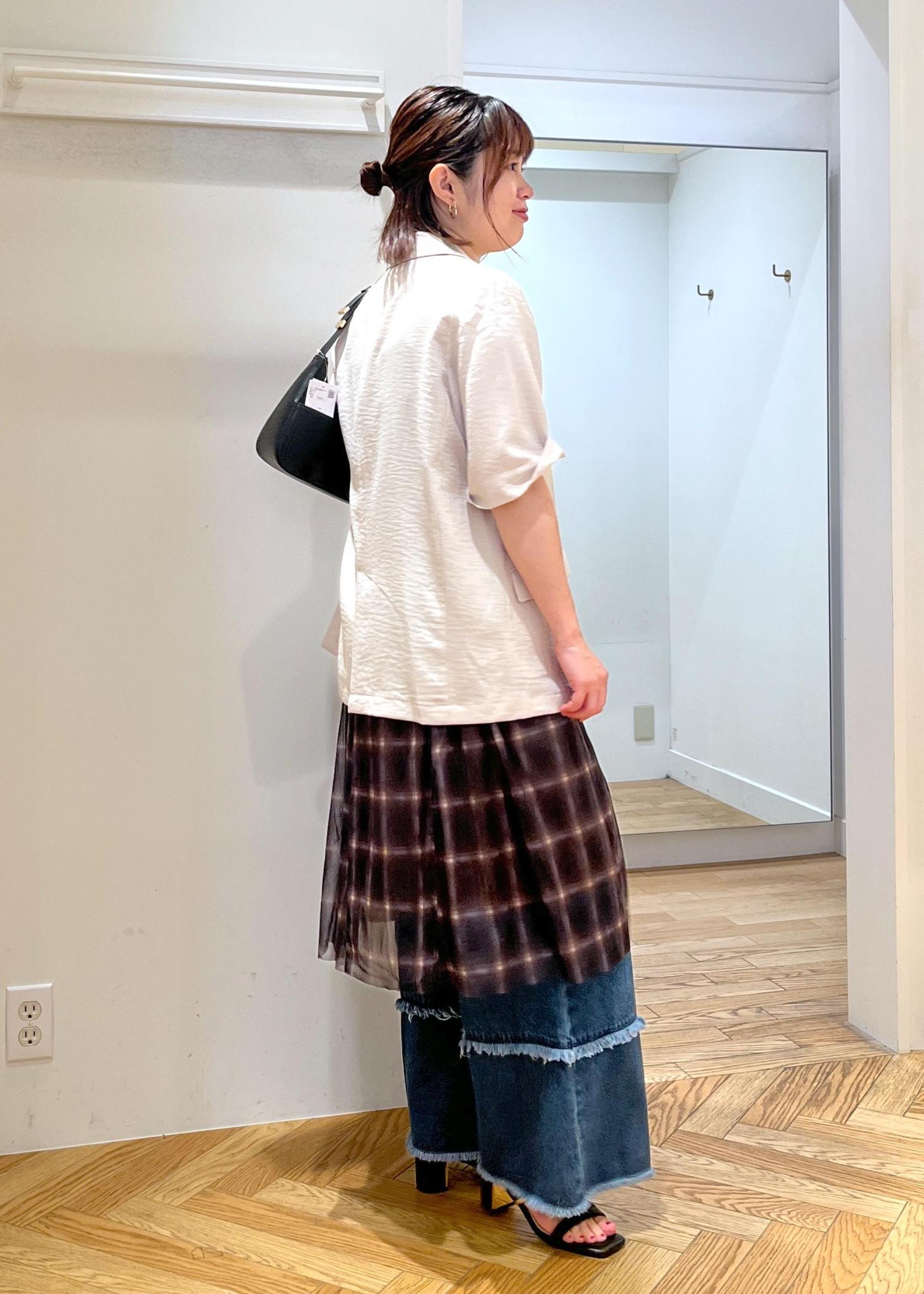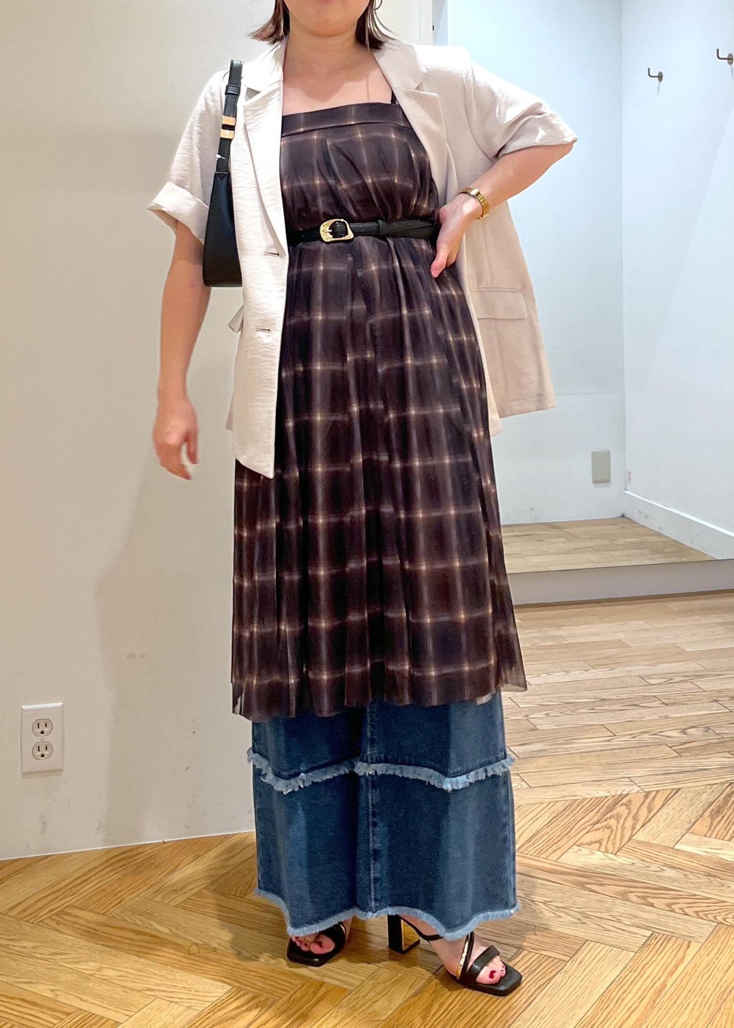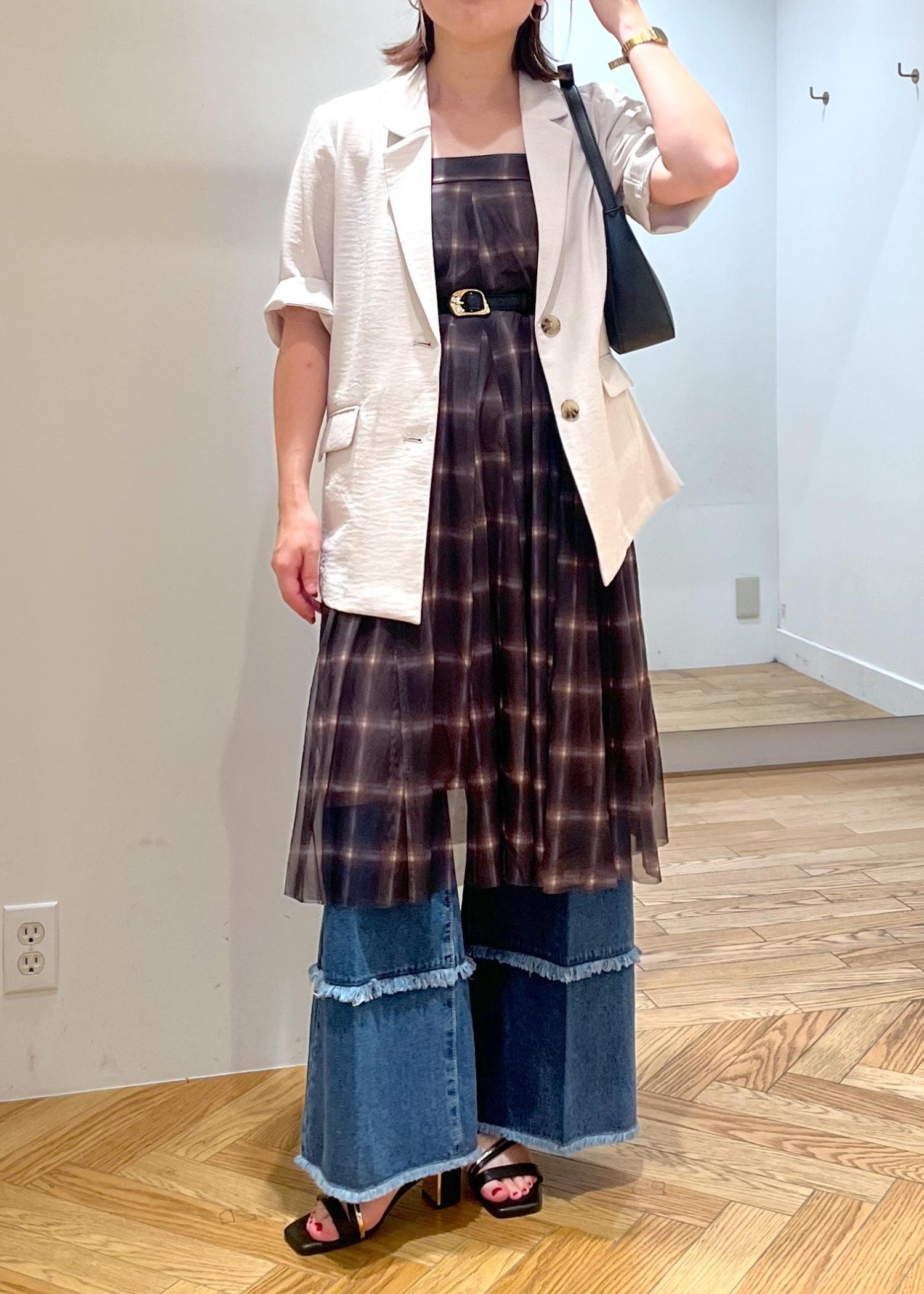 ミニワンピ風にアレンジ&デニム&ジャケットを合わせて、大人カジュアルなスタイルに♡