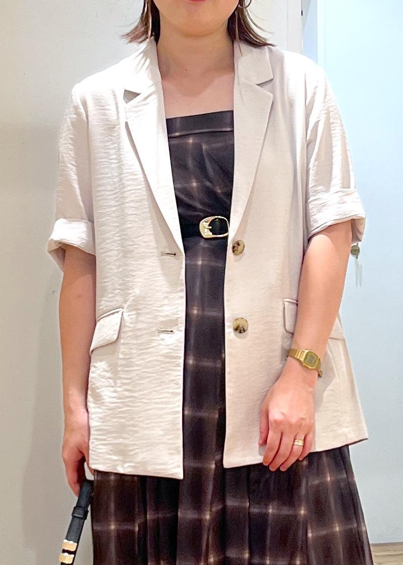 VIS【美easy】ハーフスリーブジャケット/セットアップ対応・洗えるキナリ / S¥7,909レビュー155cm、Sサイズ着用。