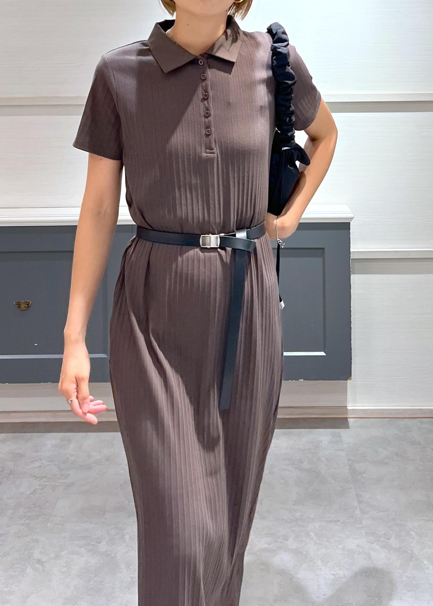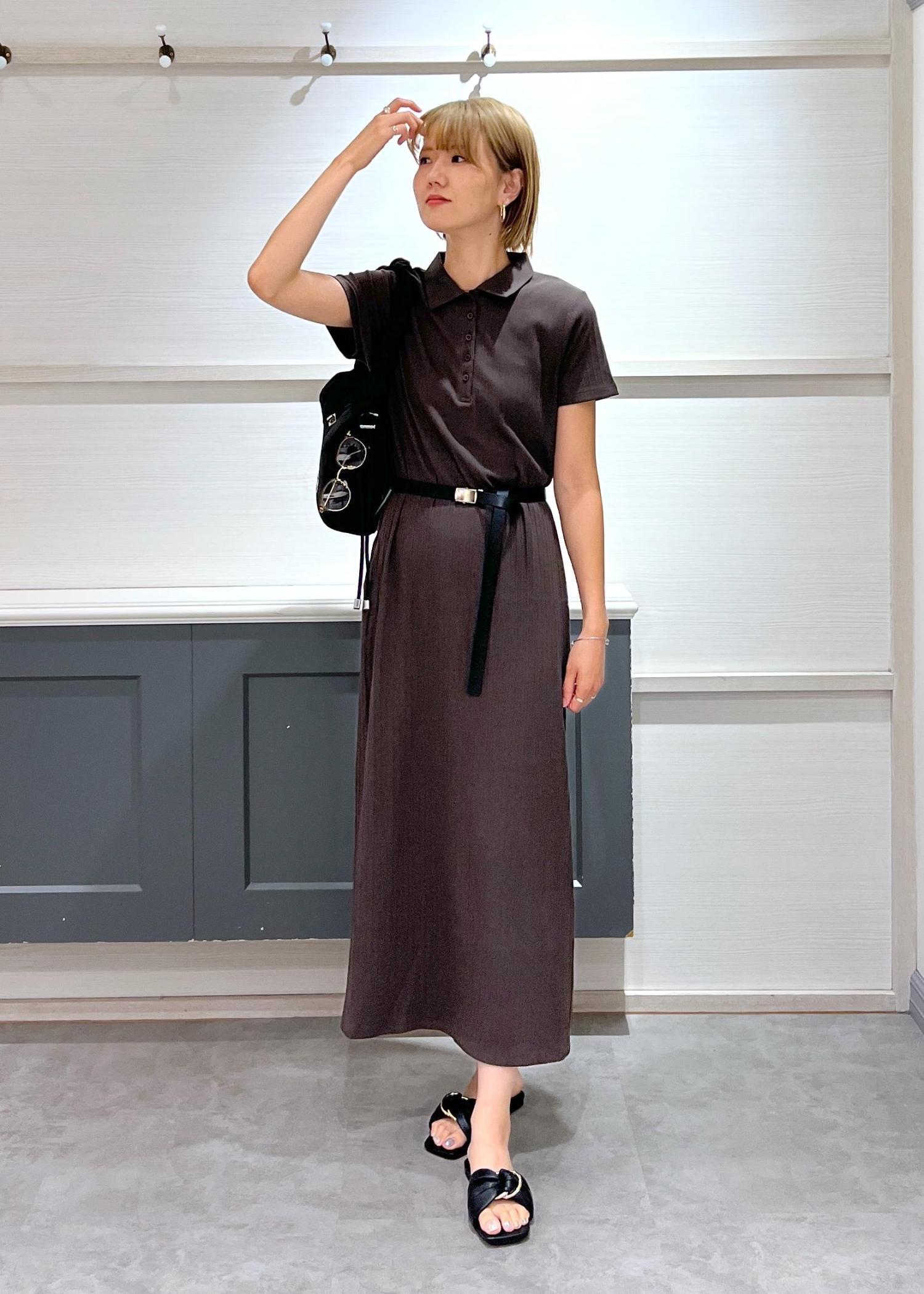 VISポロ衿ランダムリブワンピースダークブラウン / F¥4,612レビュー166cm Fサイズ着用。