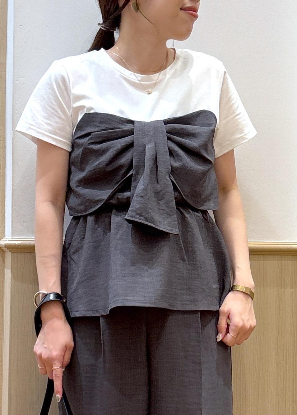 VIS【新色追加】【美easy】ねじりリボンTシャツドッキングプルオーバー【接触冷感/洗える】チャコール / F¥5,489レビューさらっと素材で着心地の良さ◎