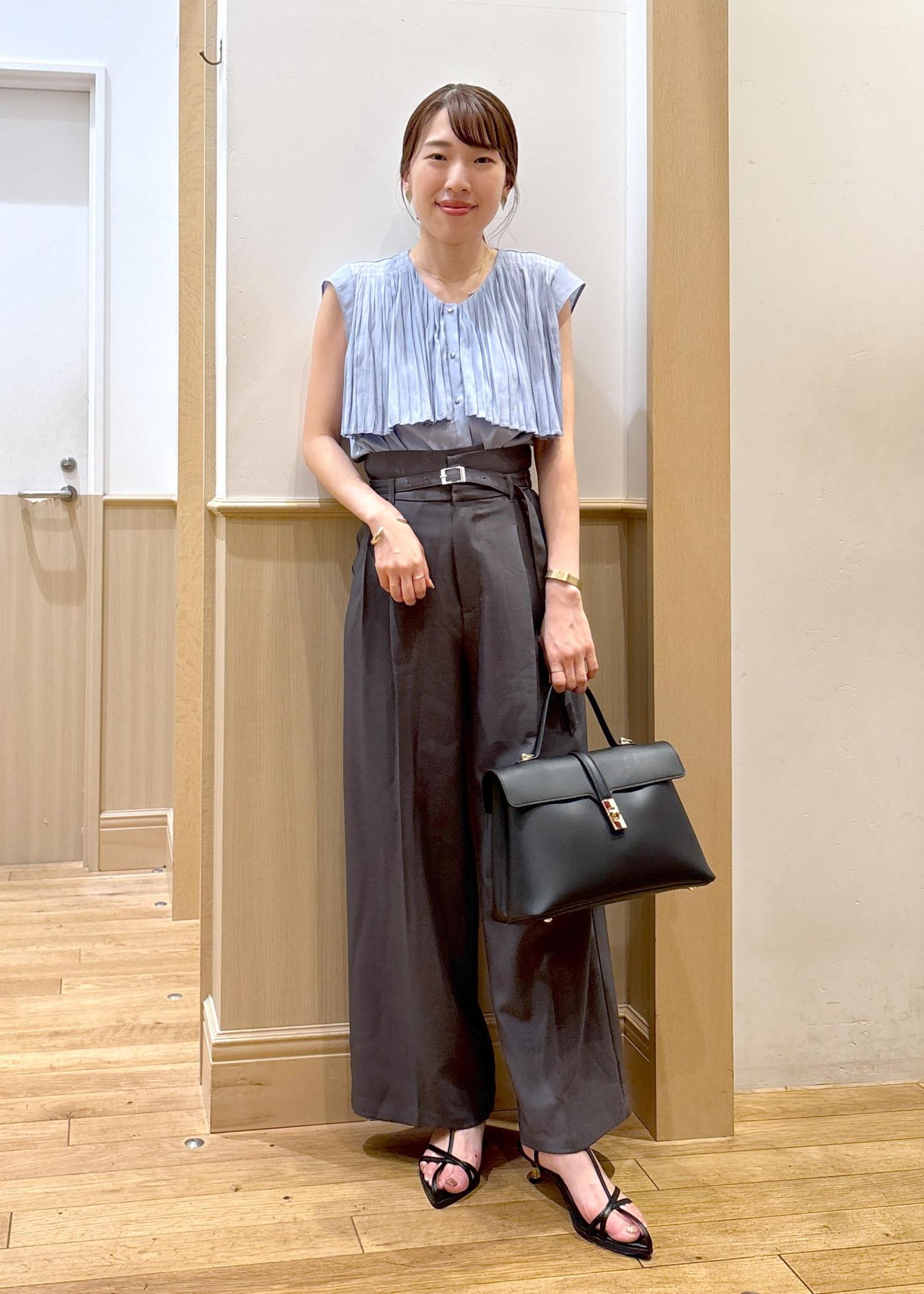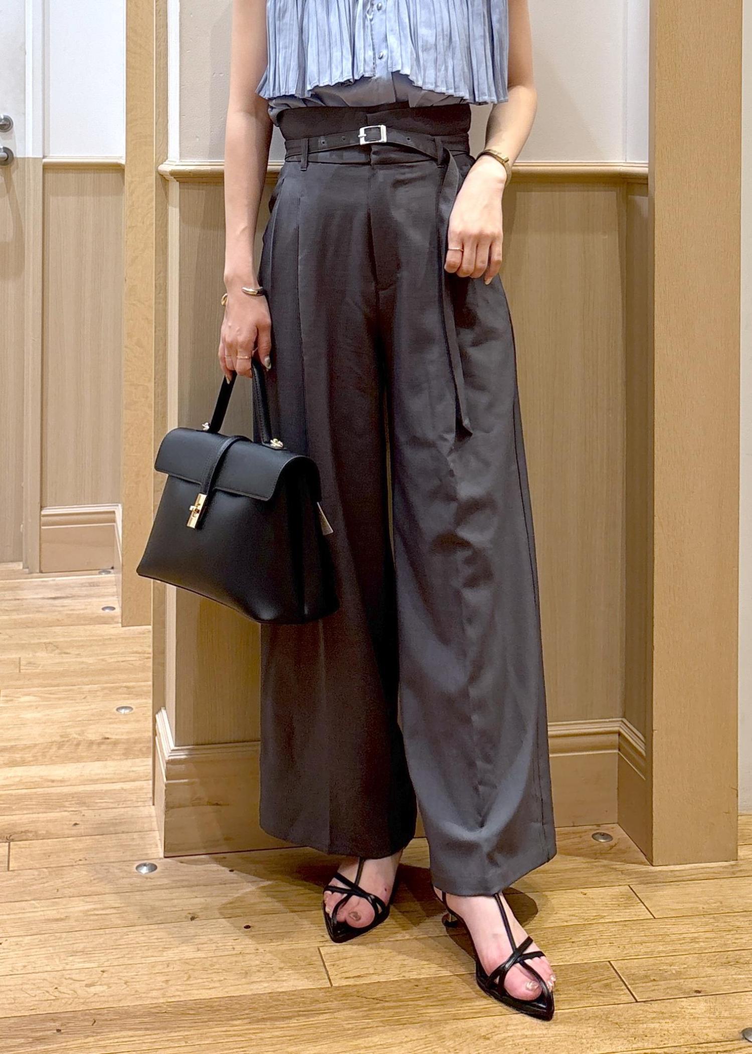 VIS【新色追加】【防シワ/接触冷感】ベルトディテールタックワイドスラックスパンツチャコール / S¥6,589レビューハイウエストデザインで