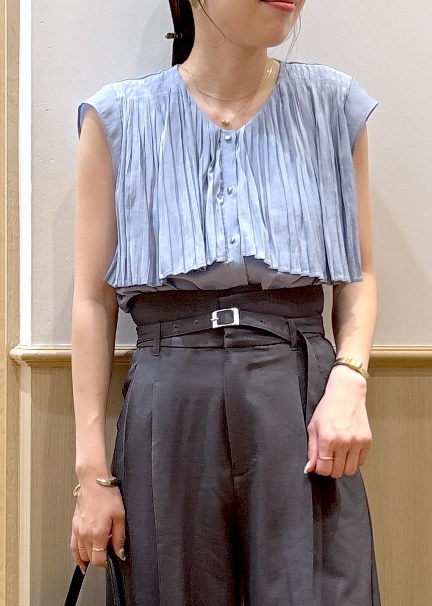アウトレットVISプリーツデザインブラウス/通勤対応サックス / F¥2,745レビュープリーツの動きが涼しげな着映えブラウス!