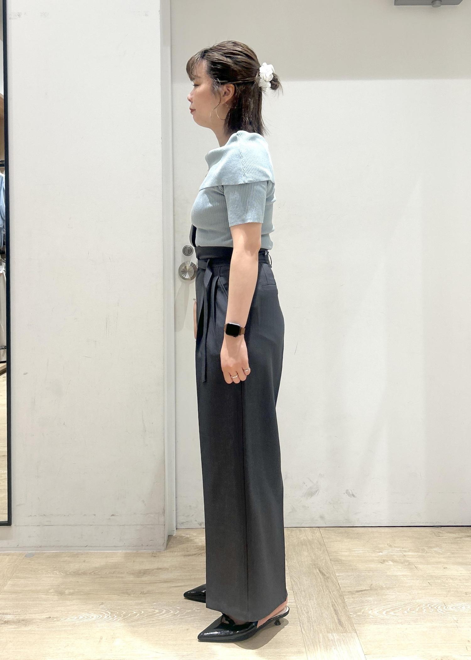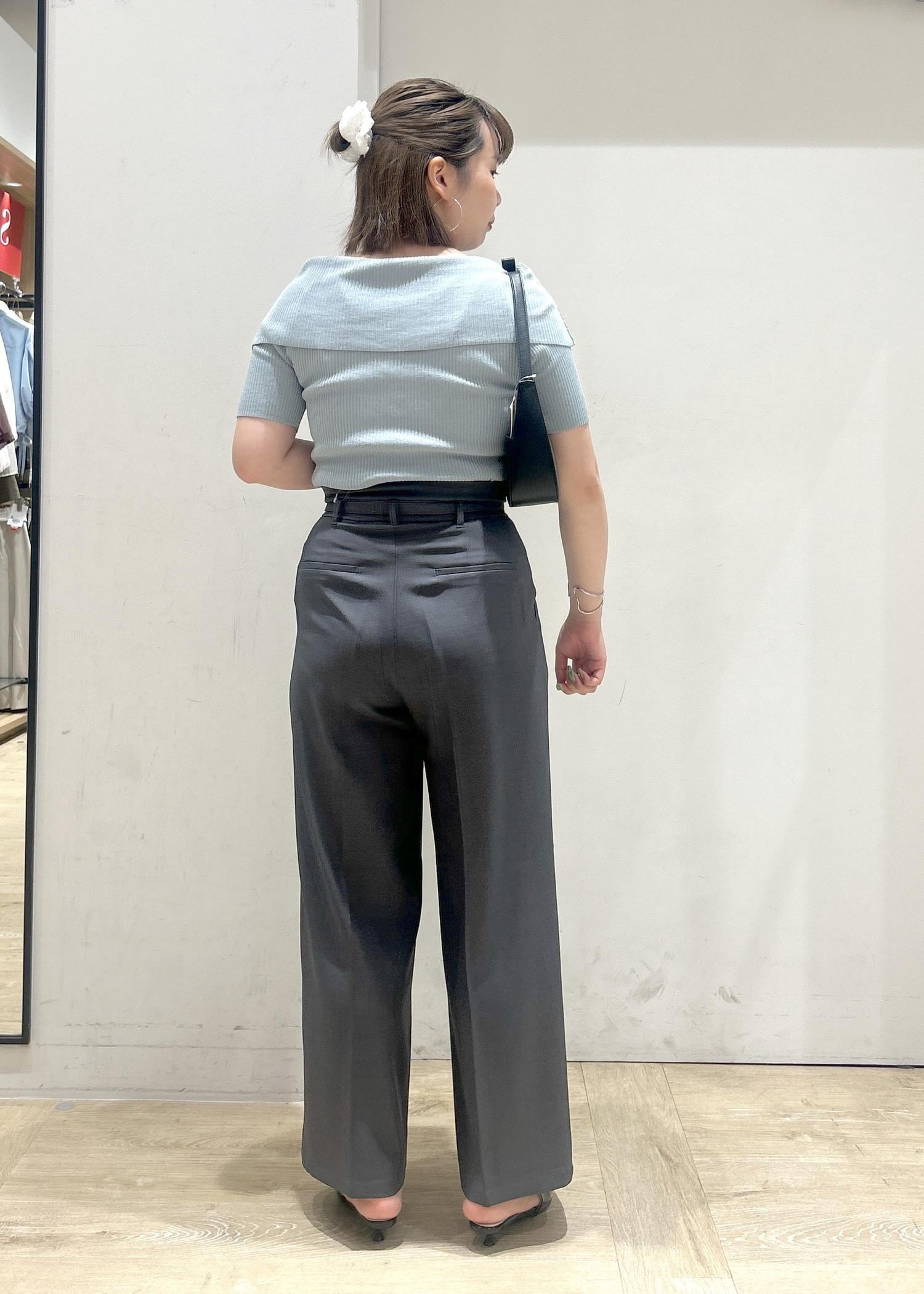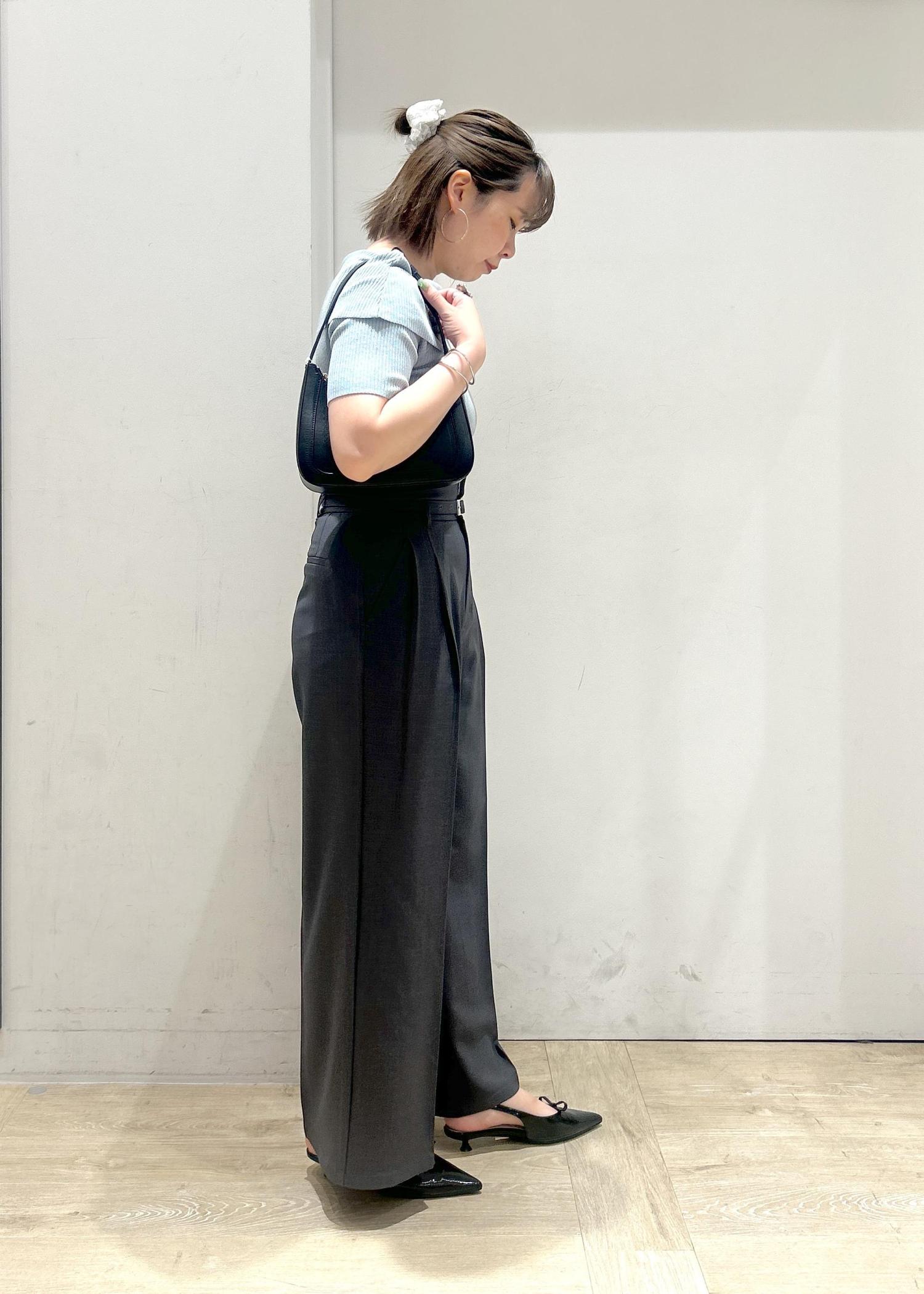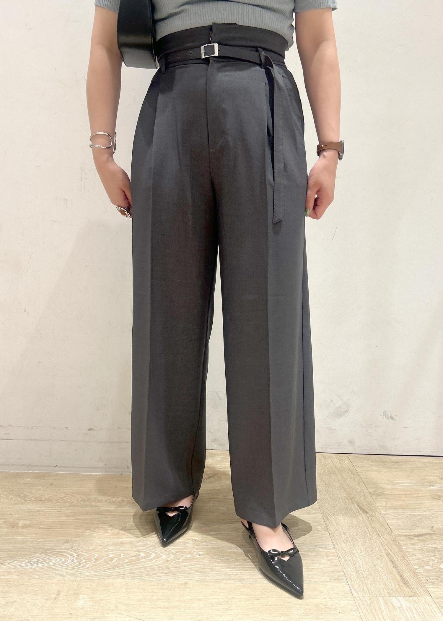 VIS【新色追加】【防シワ/接触冷感】ベルトディテールタックワイドスラックスパンツチャコール / M¥6,589レビュー163cmでMサイズ着用で、足の甲にかかる着丈です。
