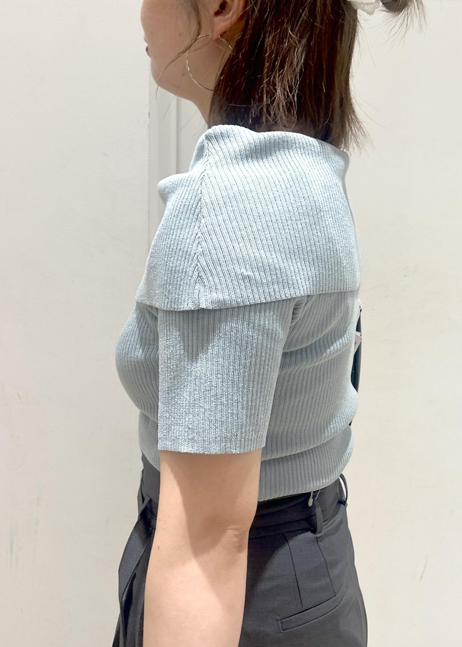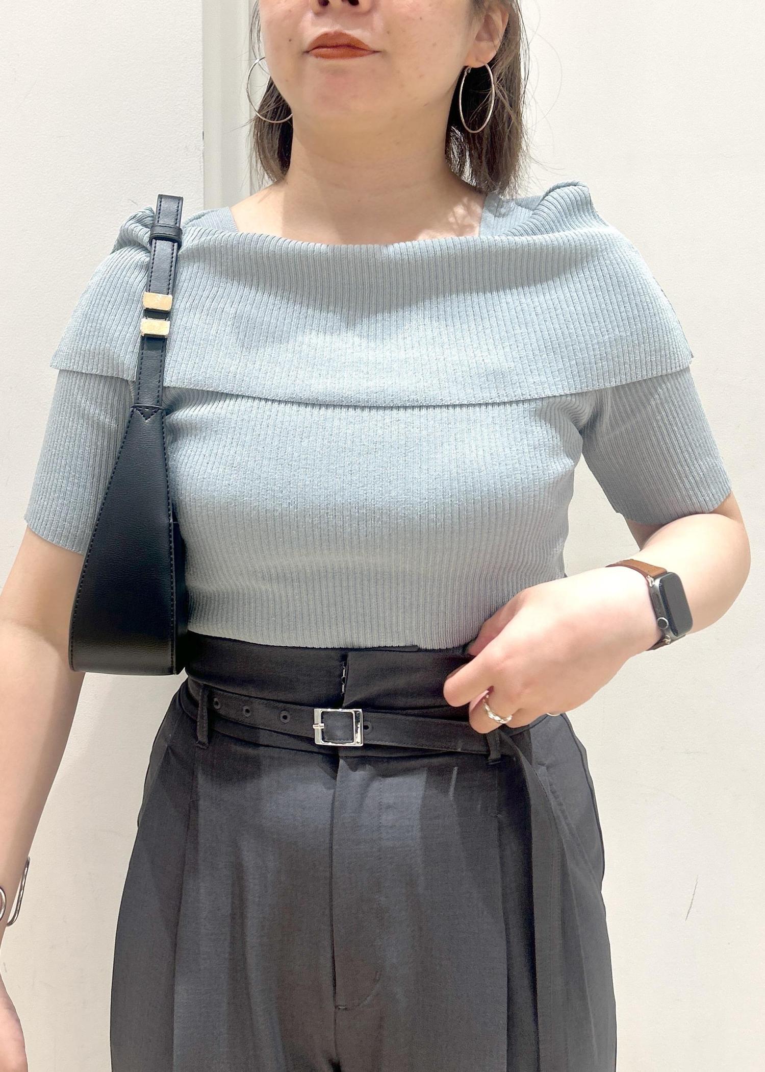 VIS【アンチピリング/UVケア/洗える】オフショルハーフスリーブニットライトグリーン / F¥4,939レビュー肩マチ付きなのでインナーなどが見える心配が