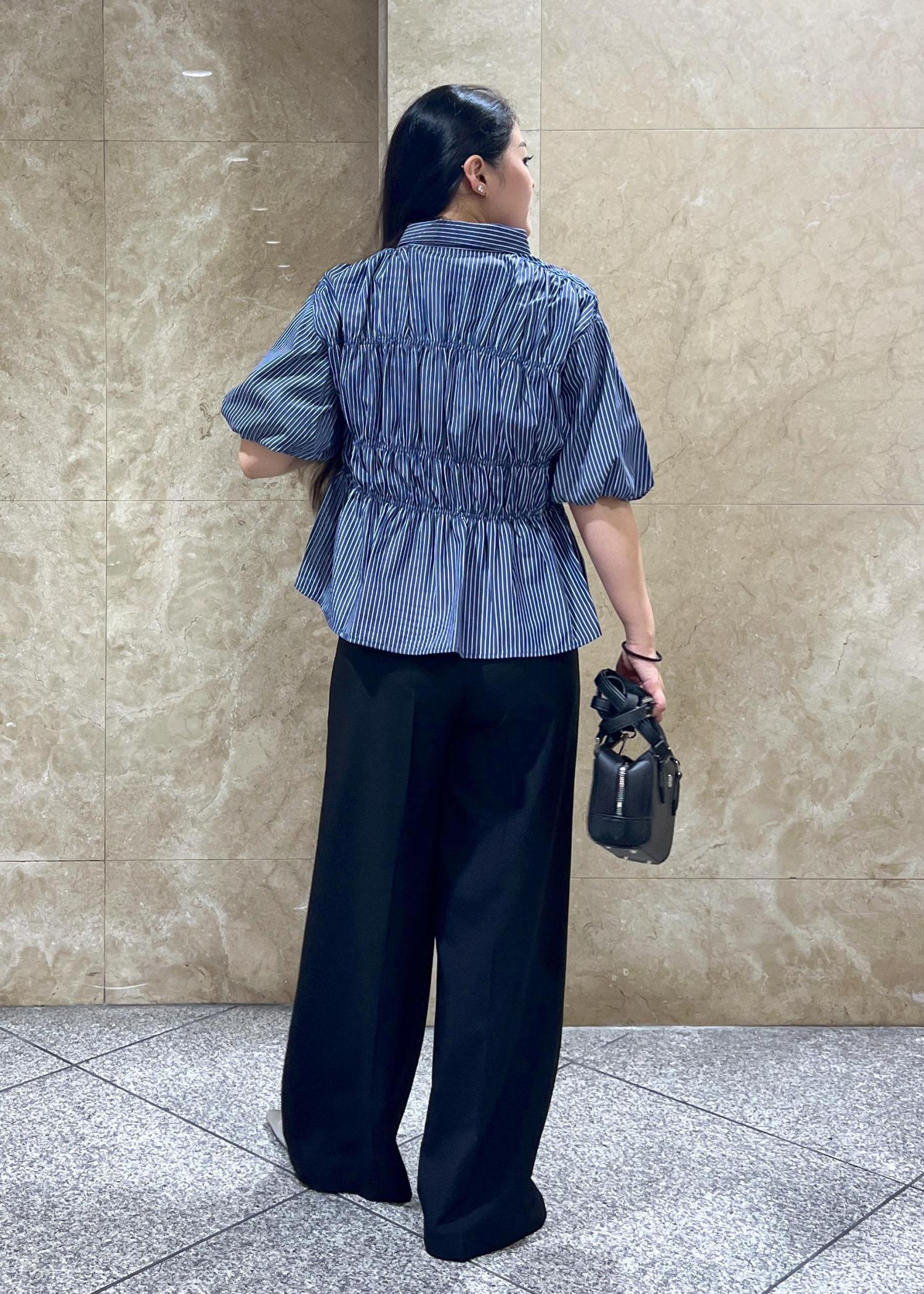 VIS【新色追加】【店頭人気】シャーリングバルーンシャツネイビー系 / F¥5,489レビューボタン部分を全開にしてカーディガンみたいに使えるのもおすすめポイントで、ゴム部分もきつくなく着やすいですჱ̒˶ー̀֊ー́ )