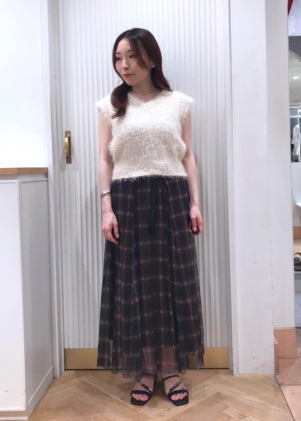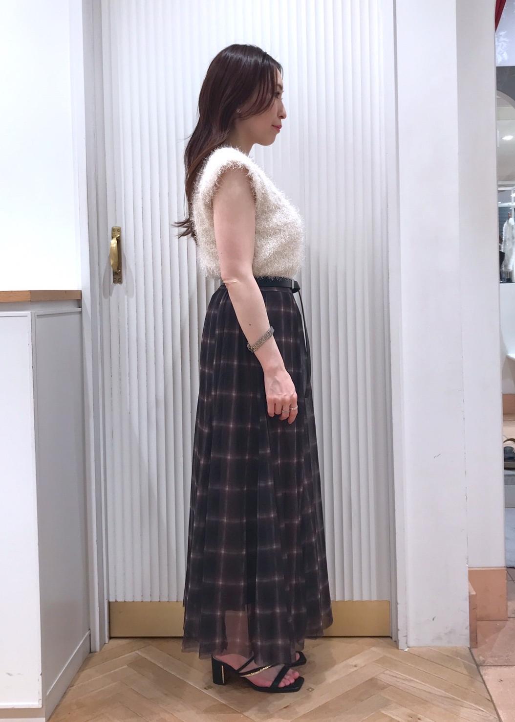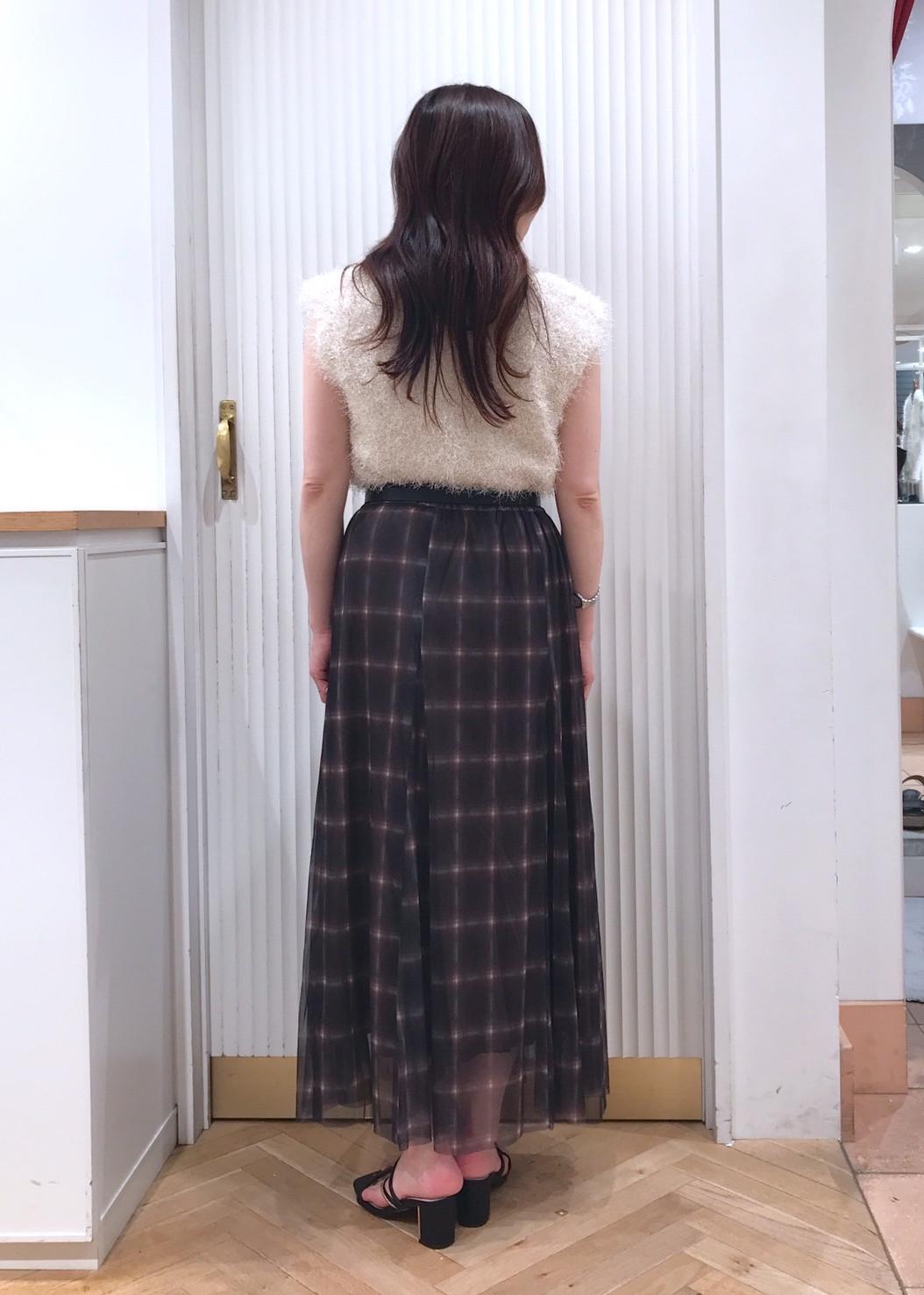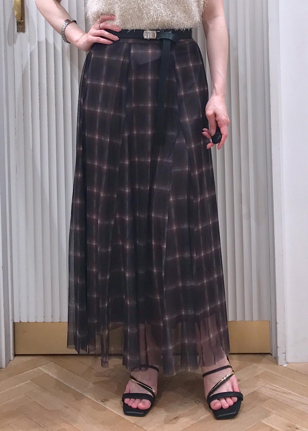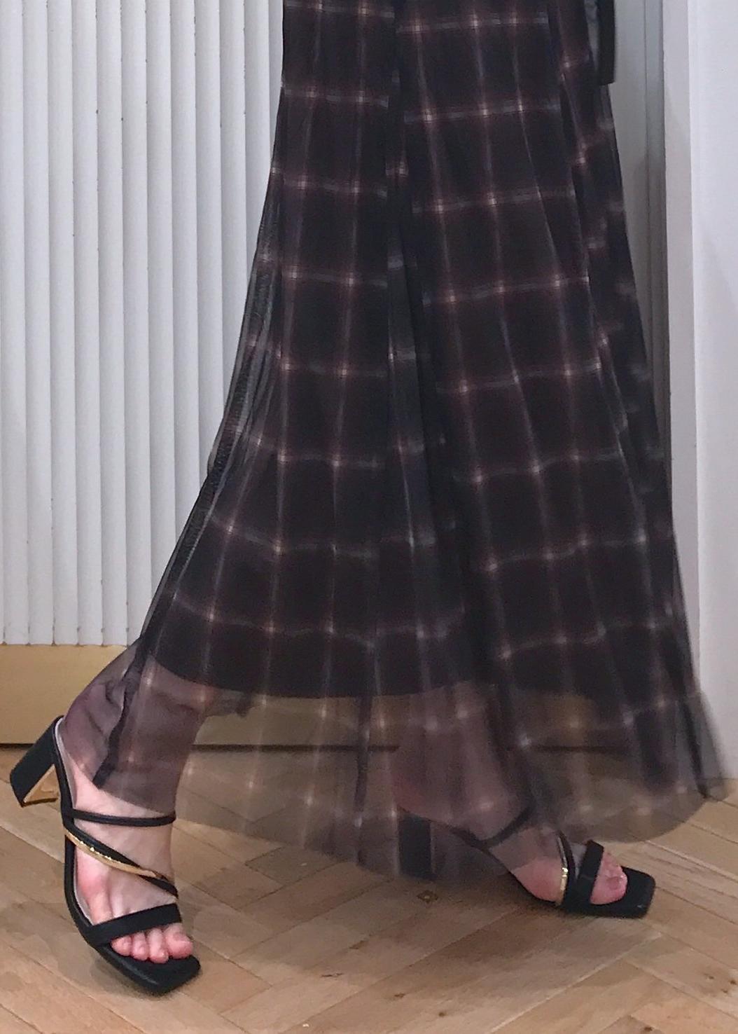 VIS【洗える】チュールプリントチェックスカートダークブラウン系 / F¥4,612レビュー着丈は足首辺りまでの長さです。