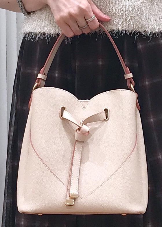 短いストラップはコートを着た状態でも肘に掛けられるくらいの長さです。 -