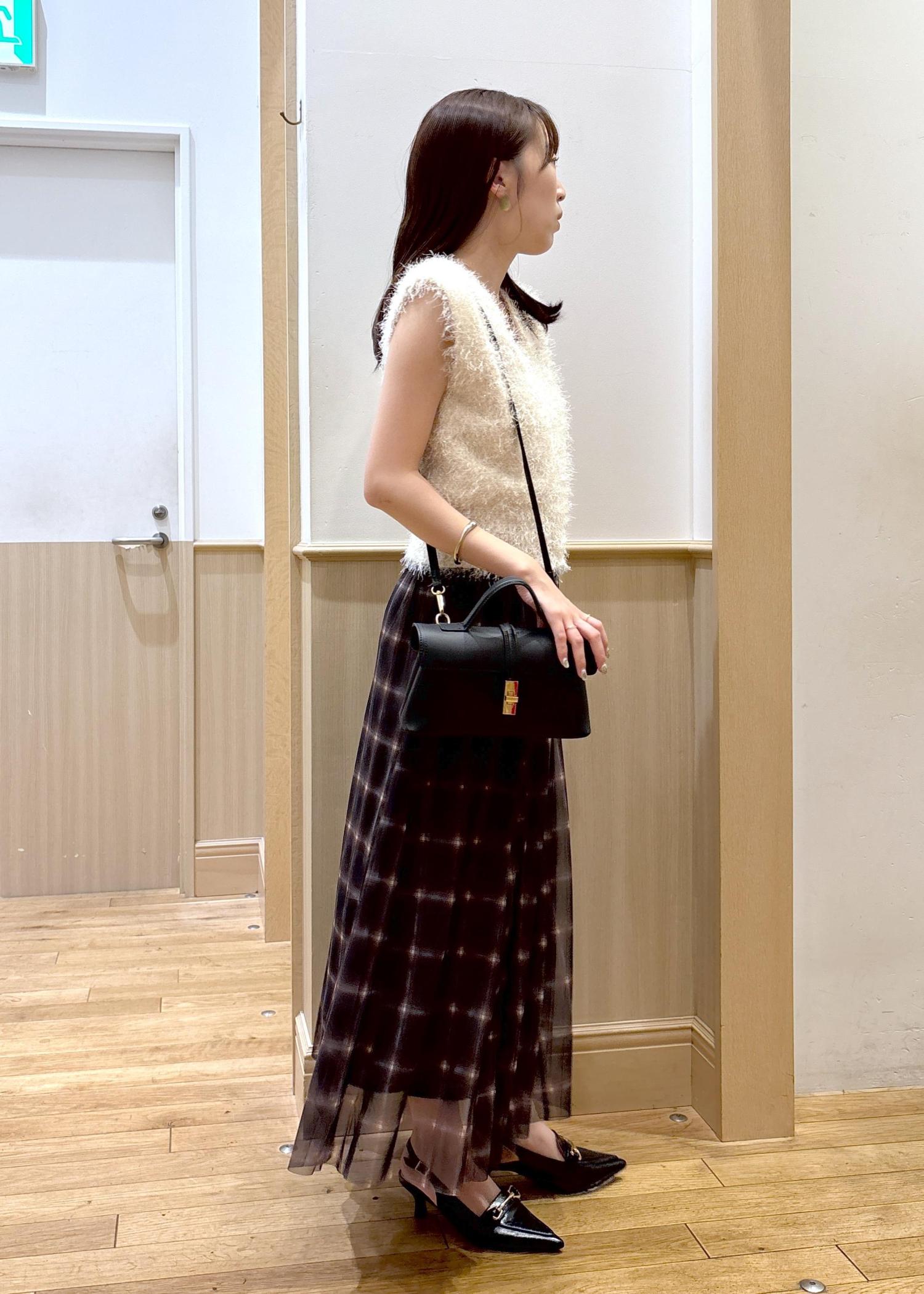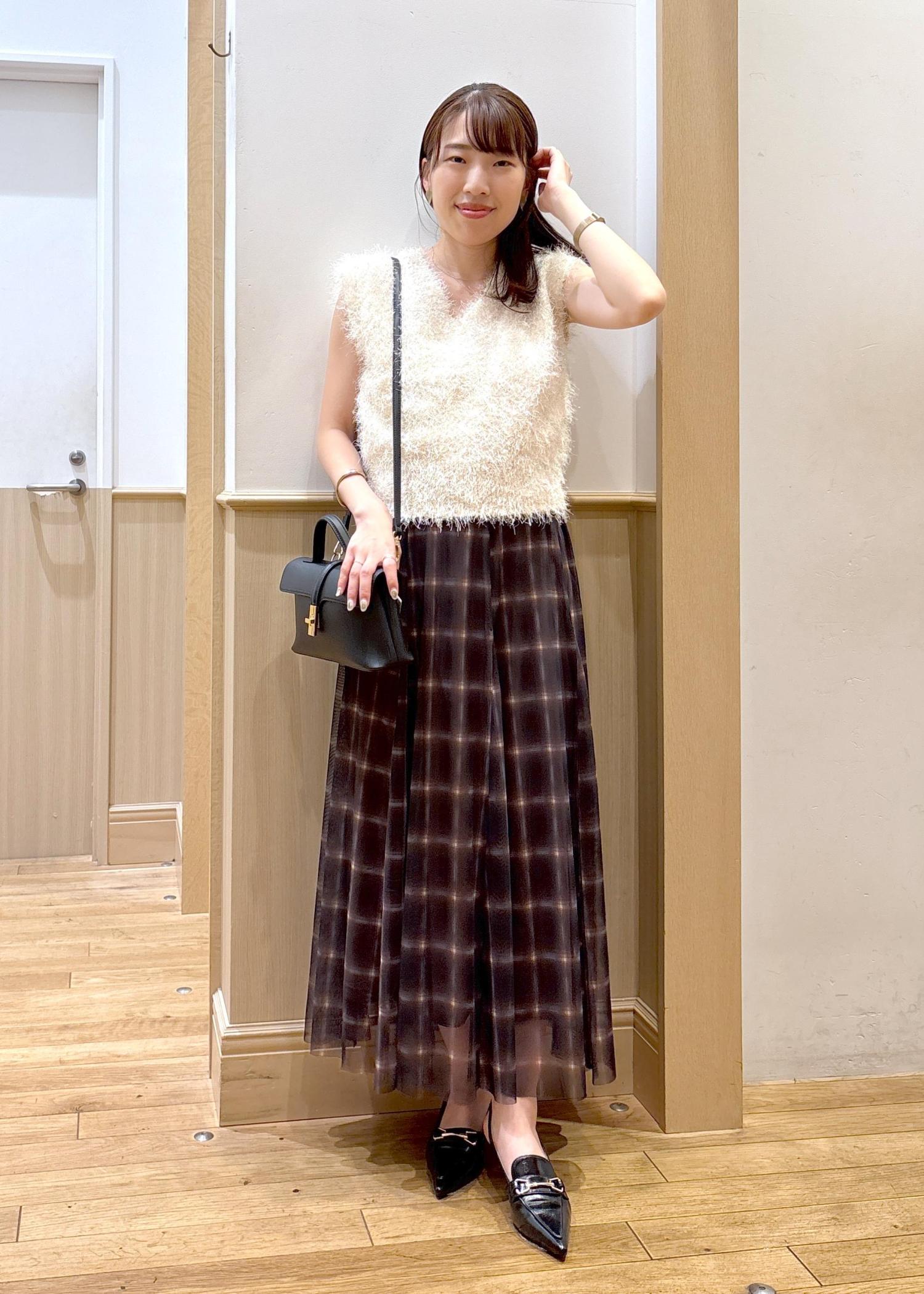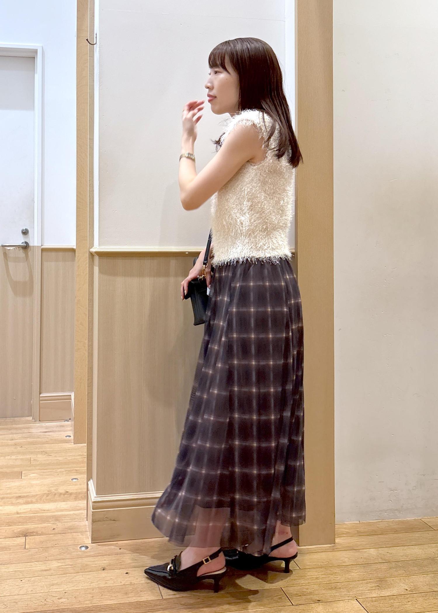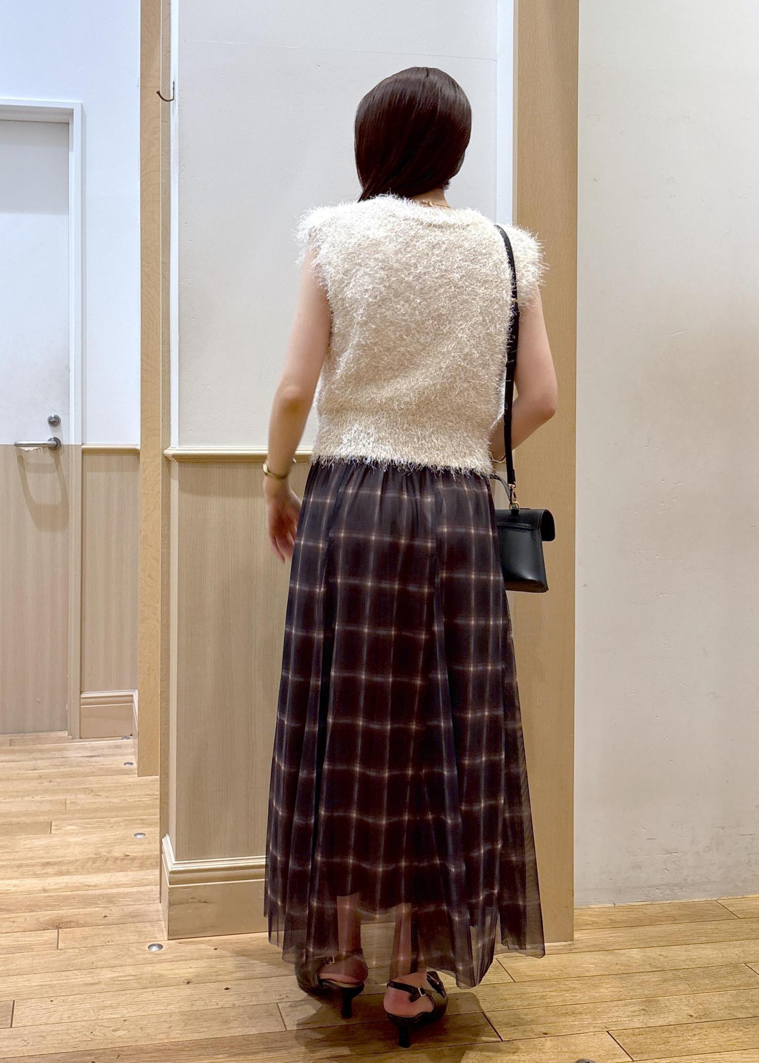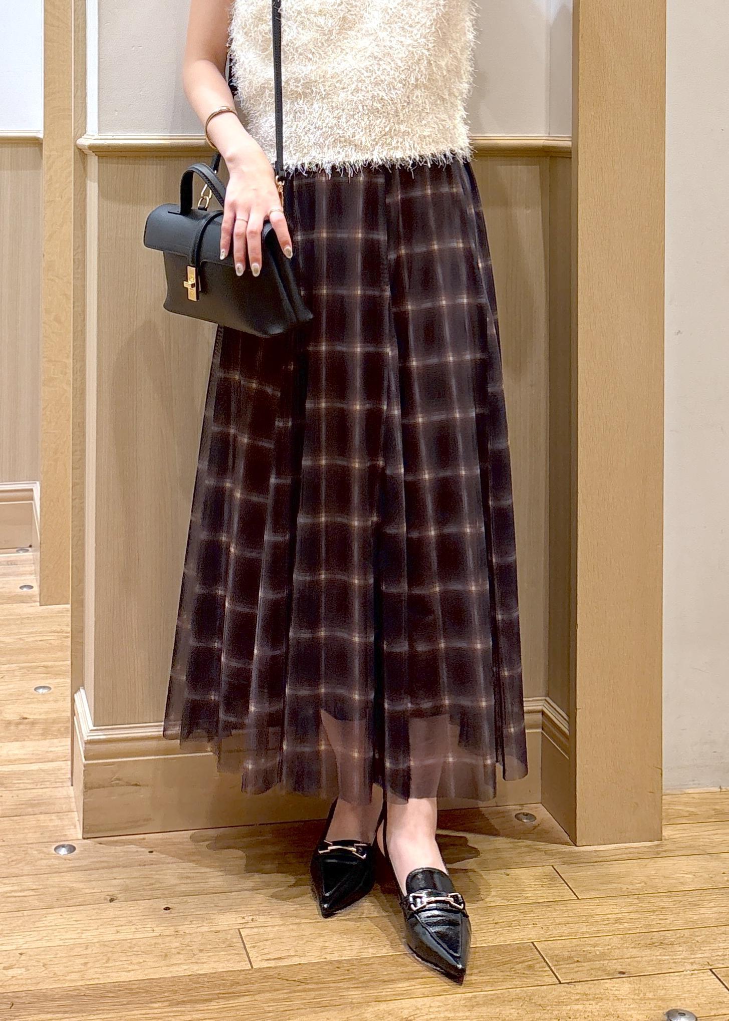 VIS【洗える】チュールプリントチェックスカートダークブラウン系 / F¥3,953レビュー季節感が増すチェック柄スカート!