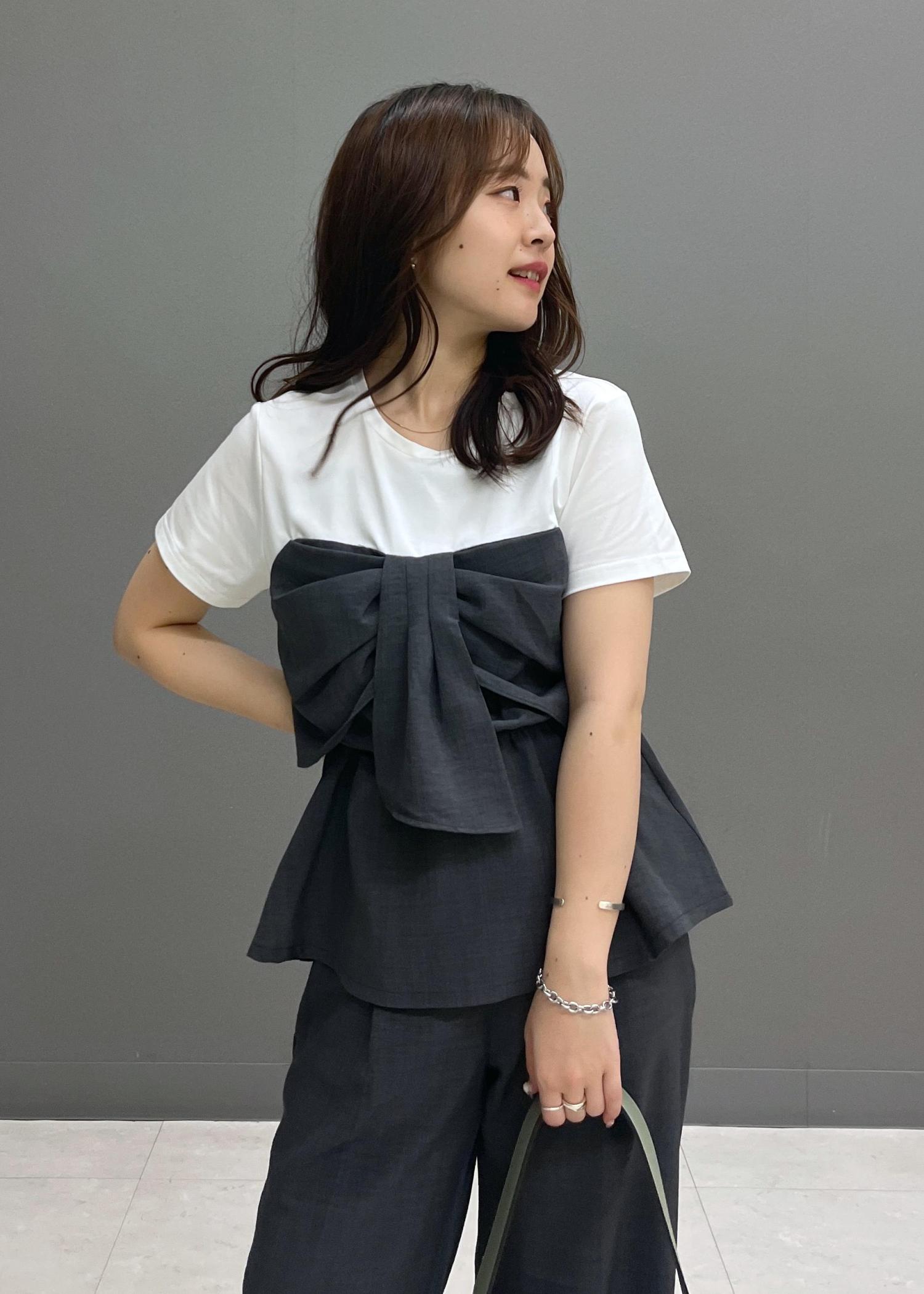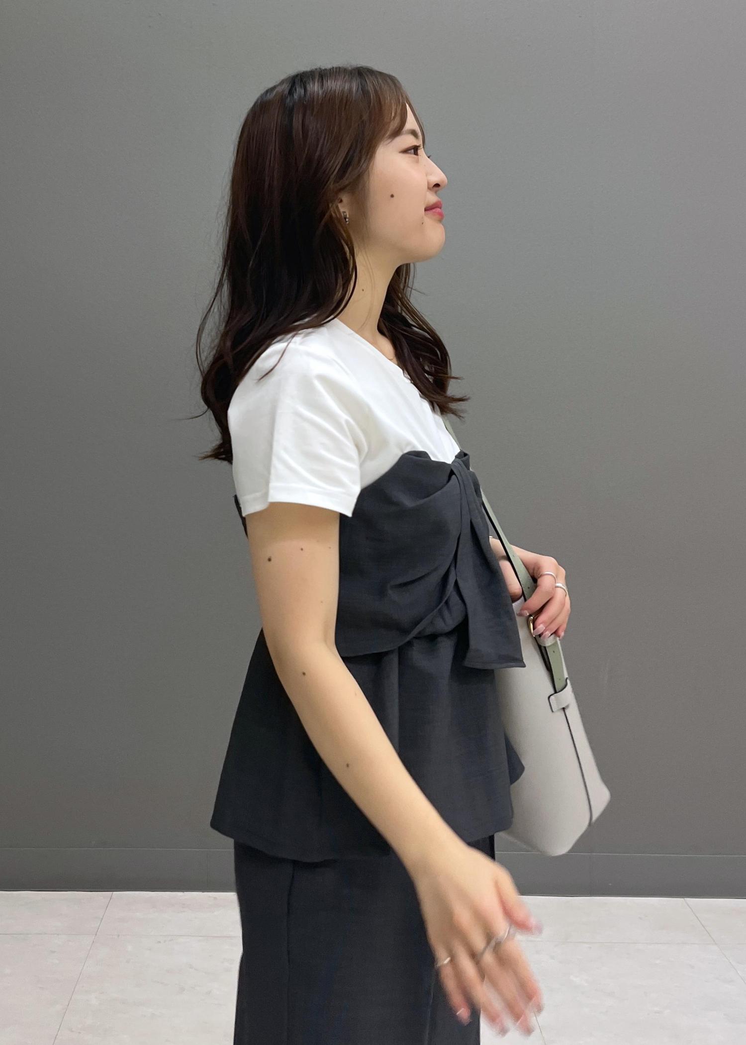 【新色追加】【美easy】ねじりリボンTシャツドッキングプルオーバー【接触冷感/洗える】